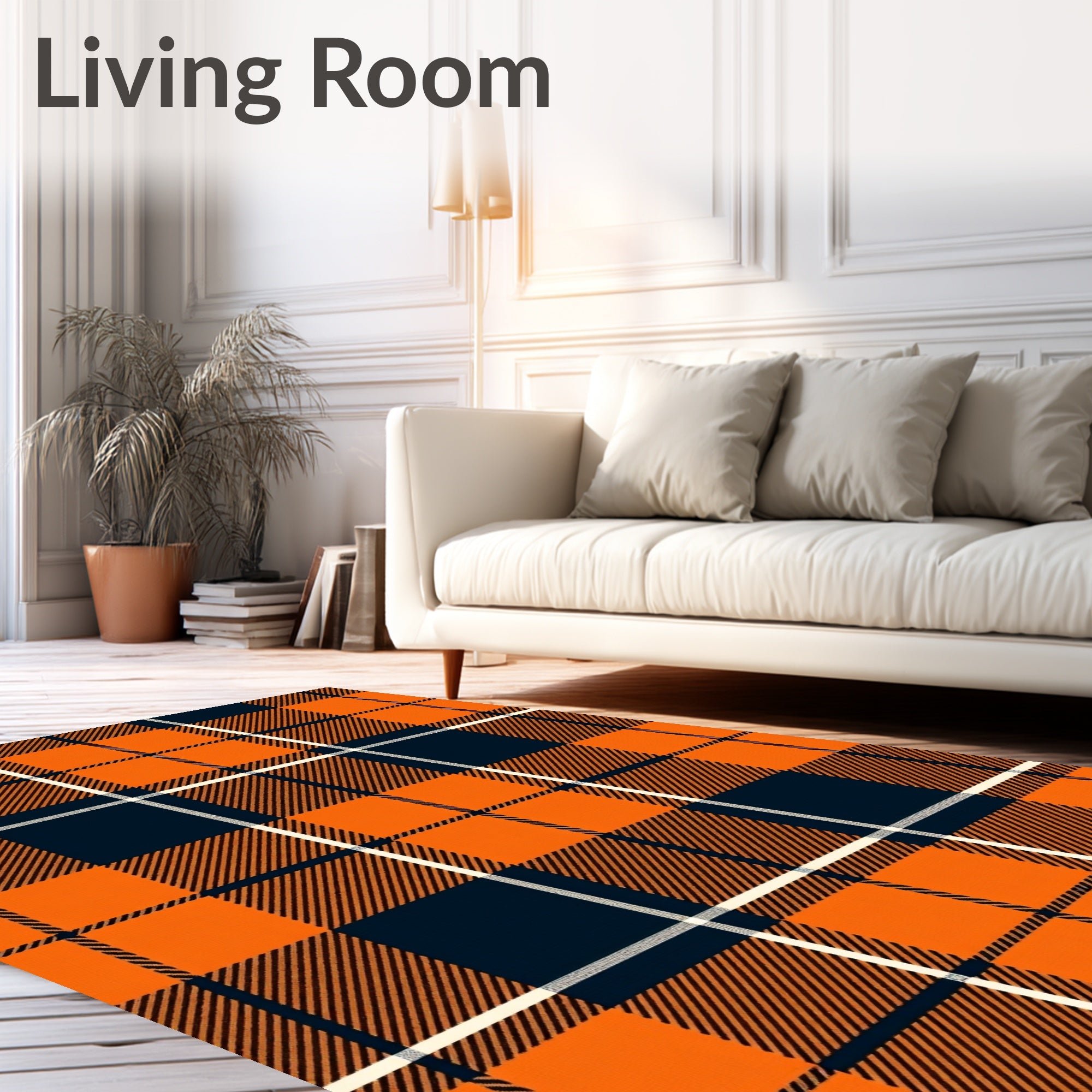 Ultra Soft Area Rug, Non Slip, Stain Resistant, Washable Area Rugs for Living Room, Bedroom, Countryside Tartan Rustic Decorative(Orange) Overview: