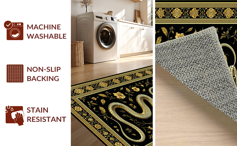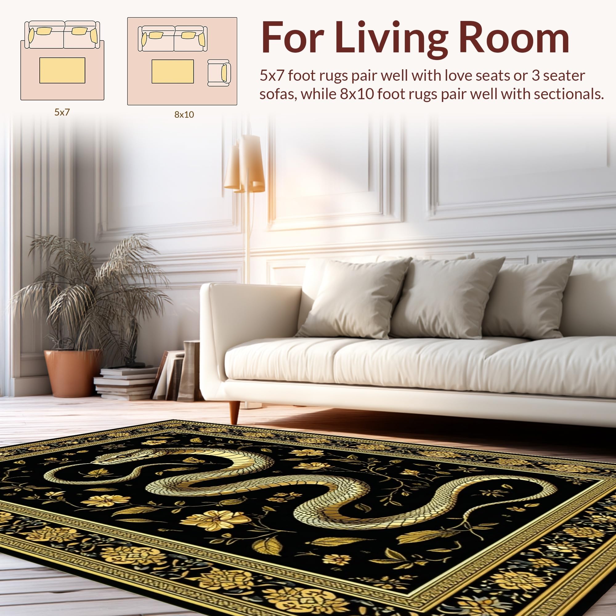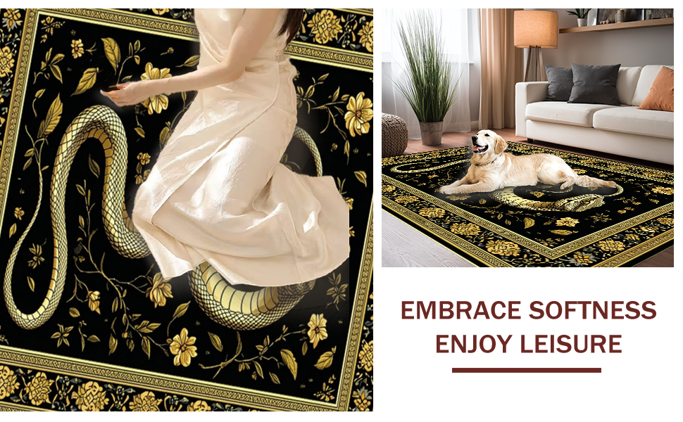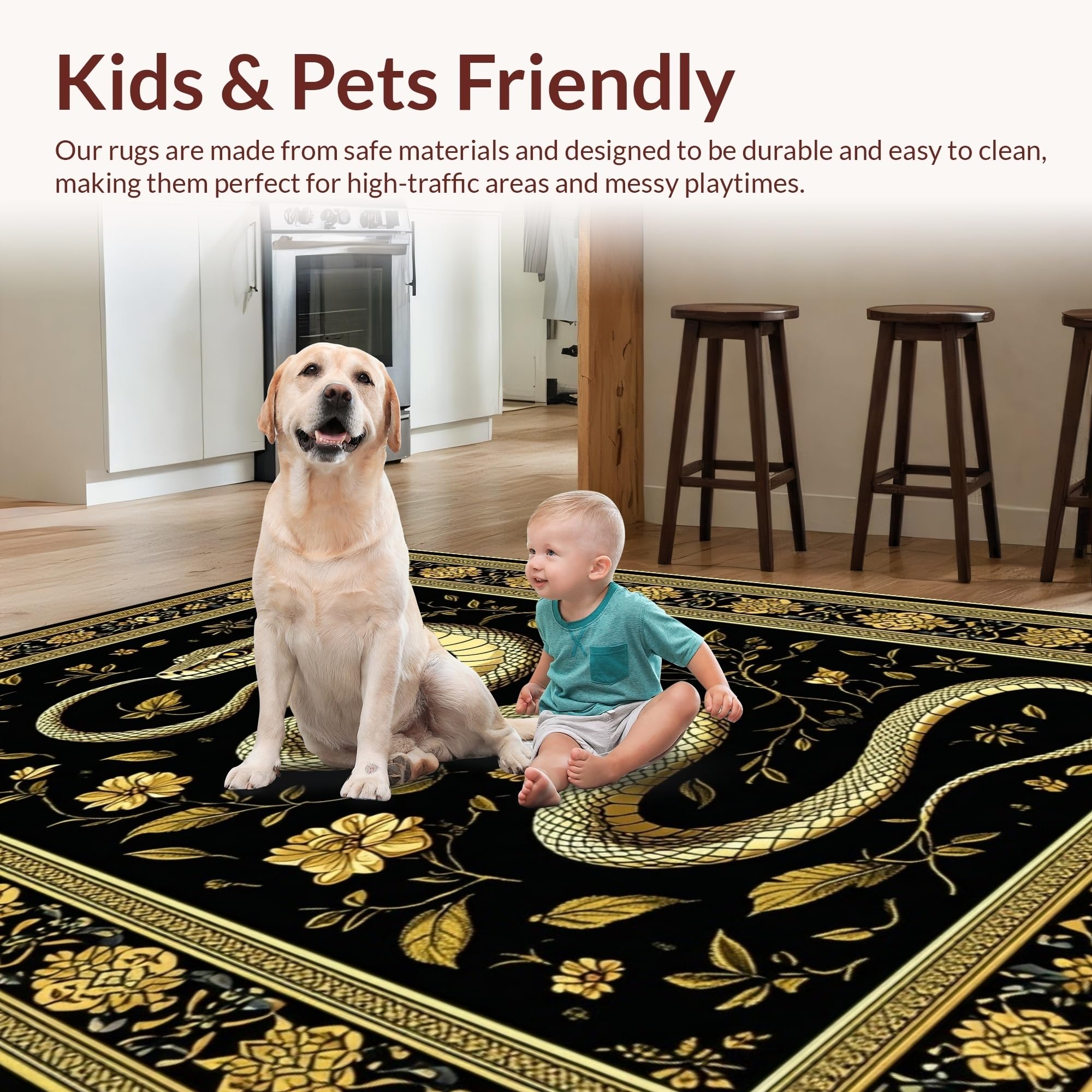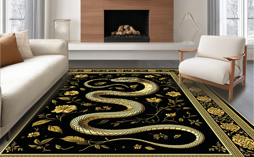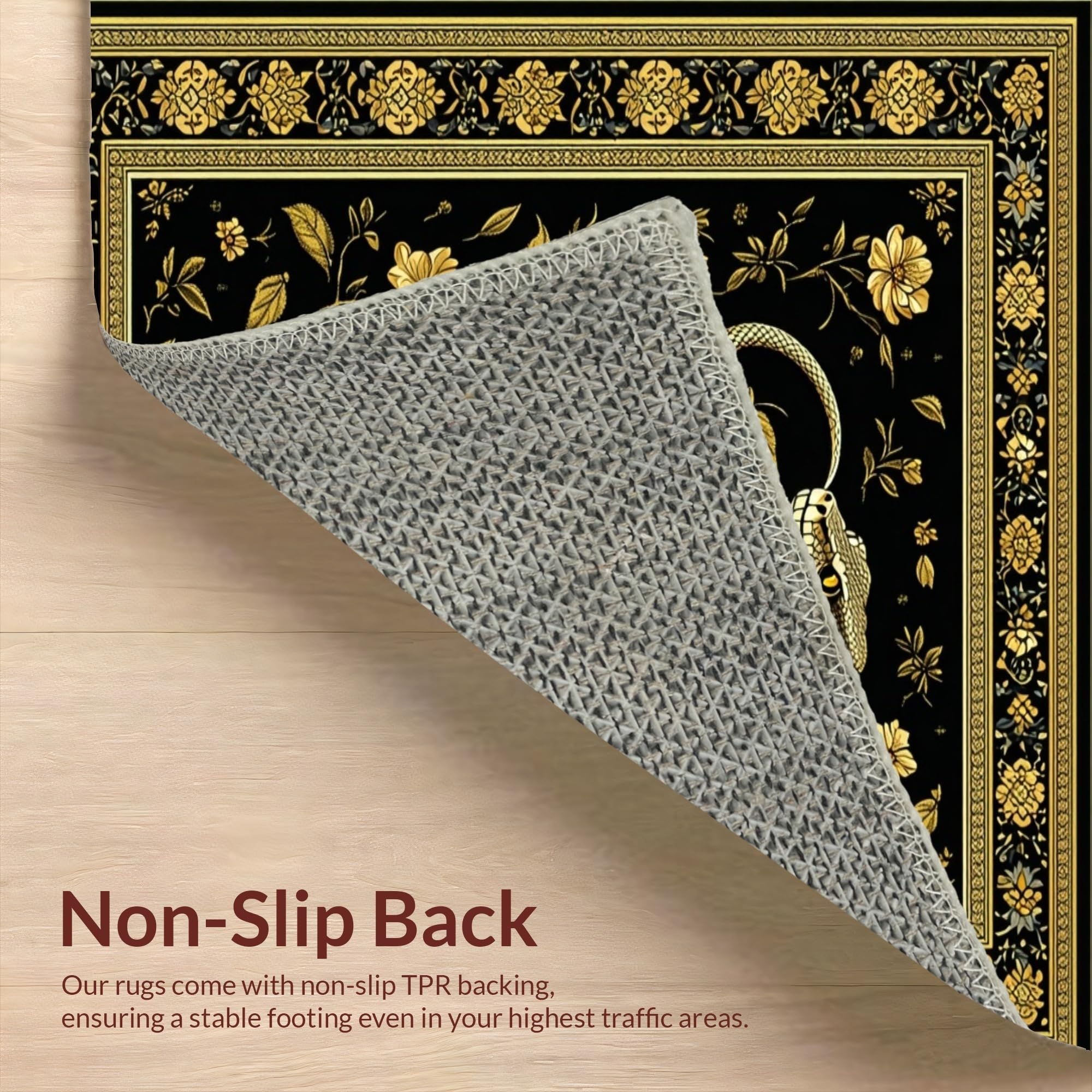 Ultra Soft Area Rug, Non Slip, Stain Resistant, Washable Area Rugs for Living Room, Bedroom, Cozy Antique Creature Emblems(Black) Overview: