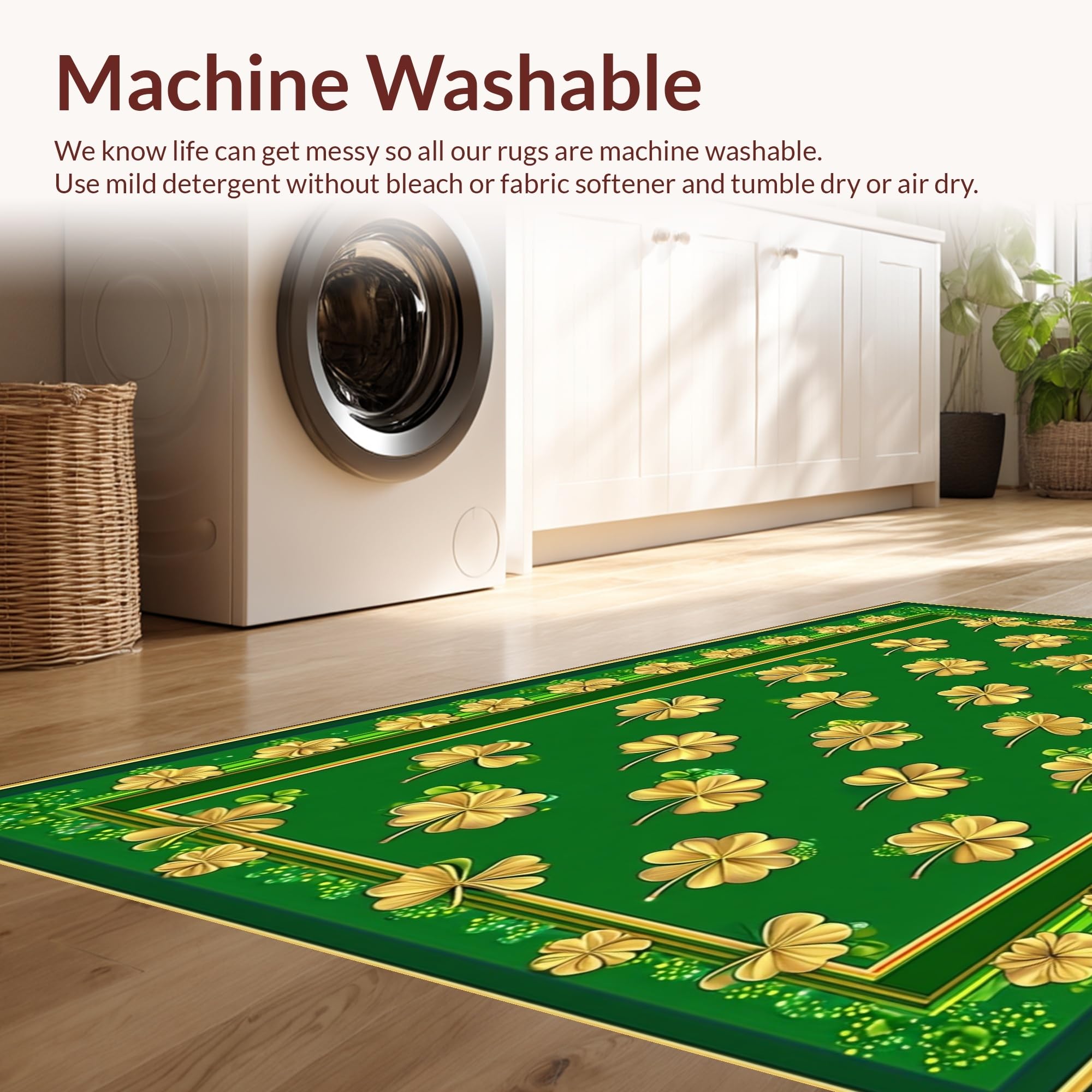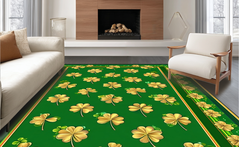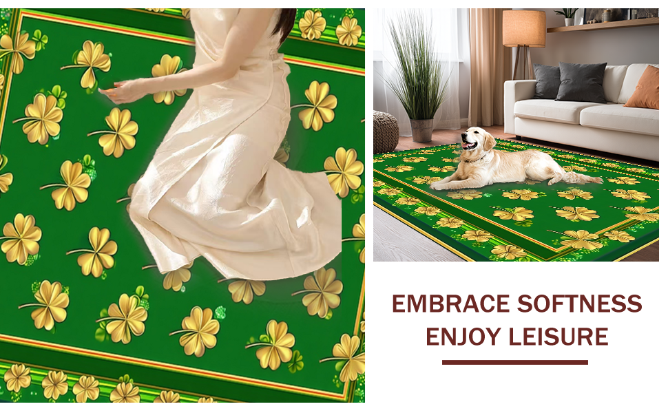Ultra Soft Area Rug, Non Slip, Stain Resistant, Washable Area Rugs for Living Room, Bedroom, Cozy Clover Field Inspiration(Green) Overview: