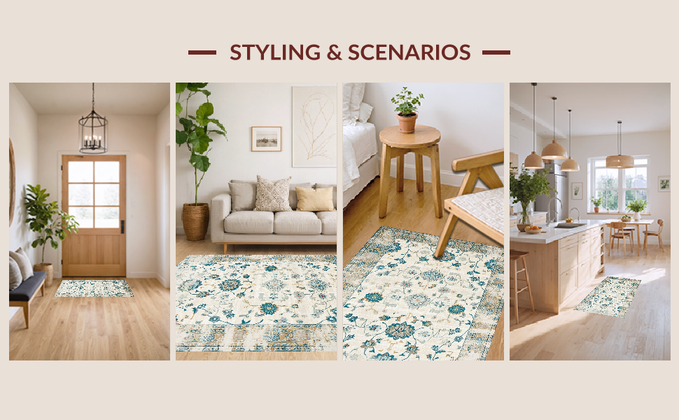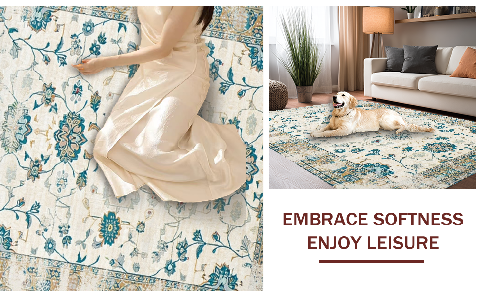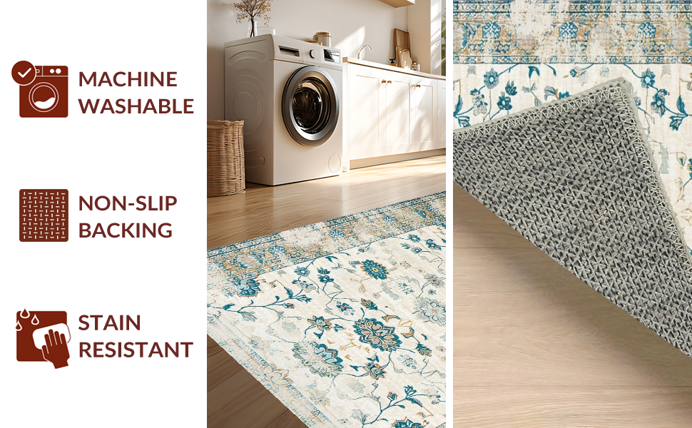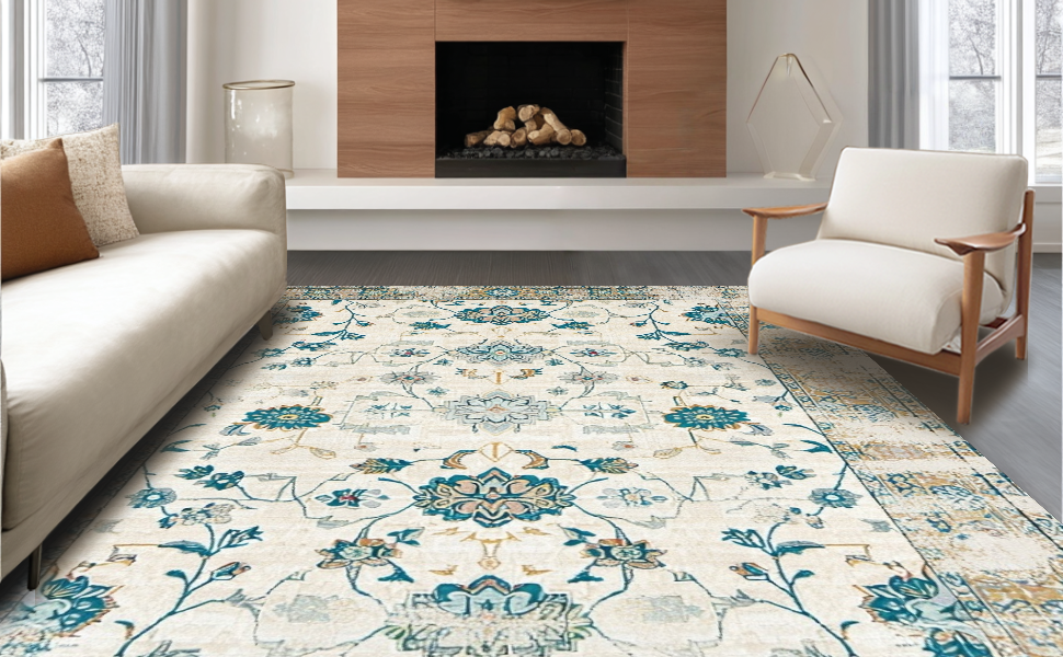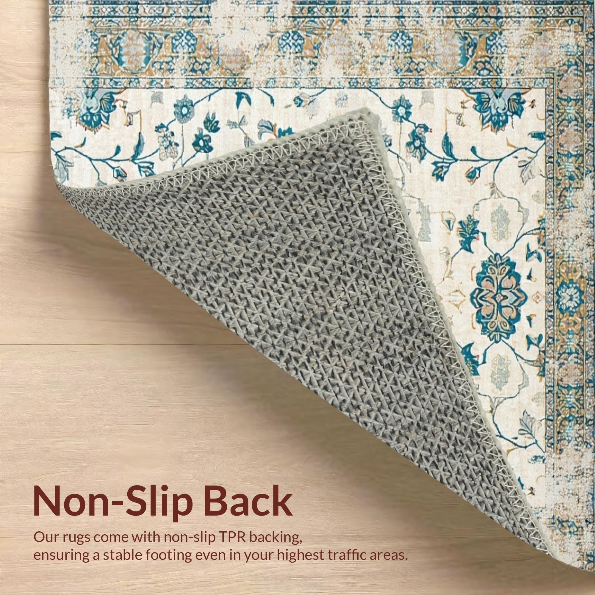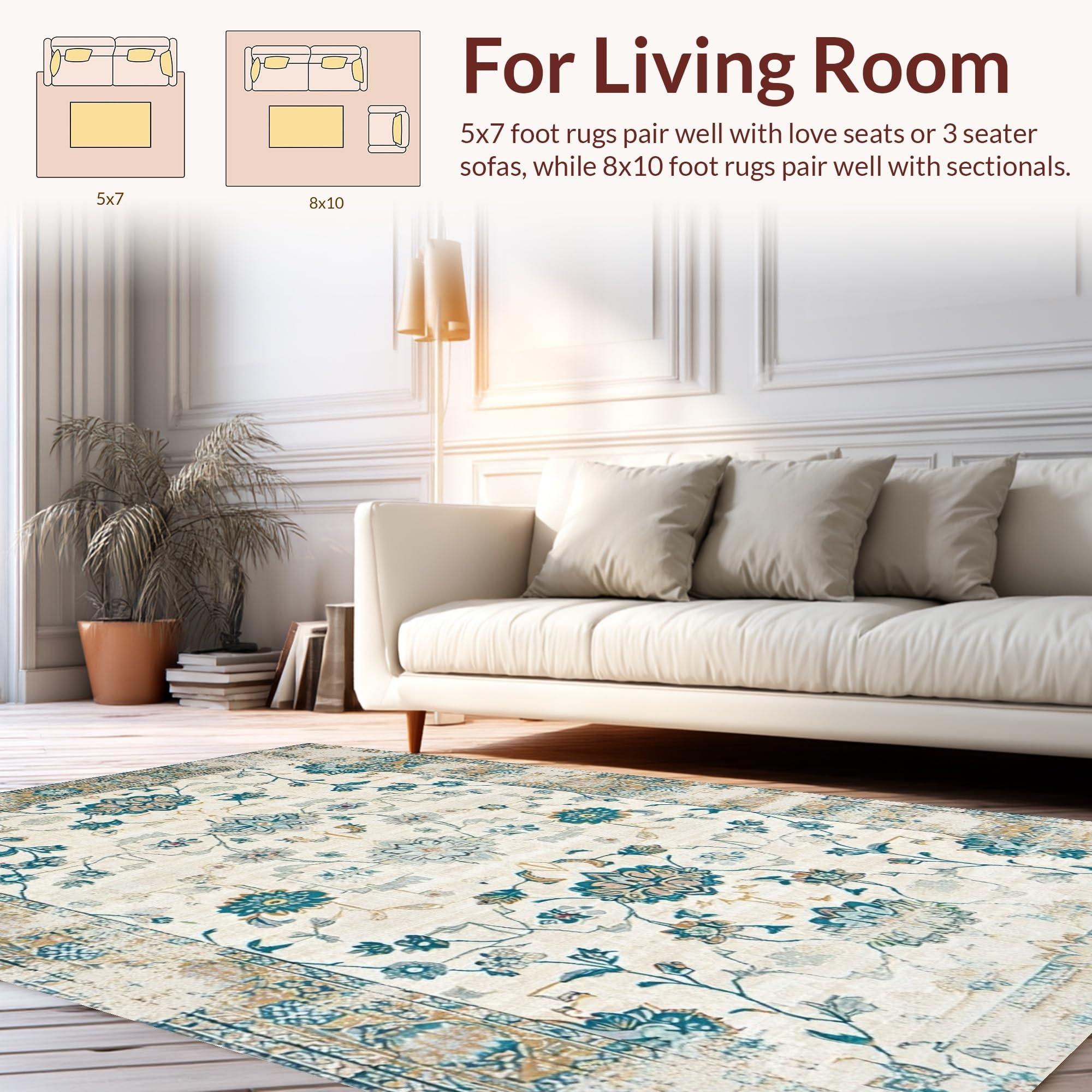 Ultra Soft Area Rug, Non Slip, Stain Resistant, Washable Area Rugs for Living Room, Bedroom, Cozy Distressed Floral Motif(Beige) Overview: