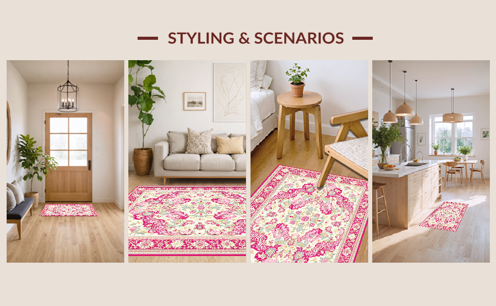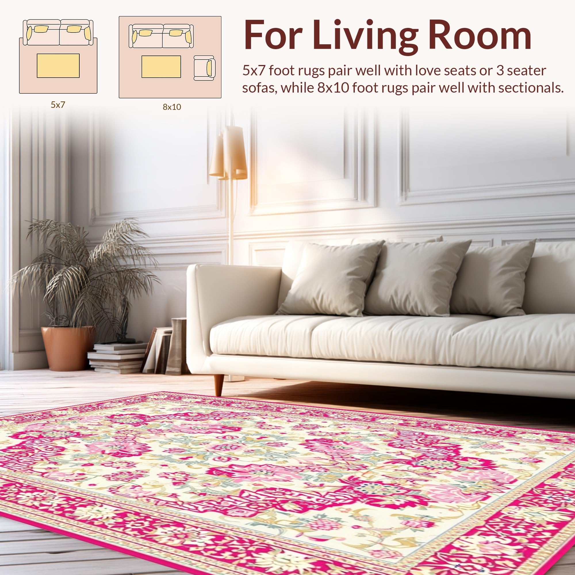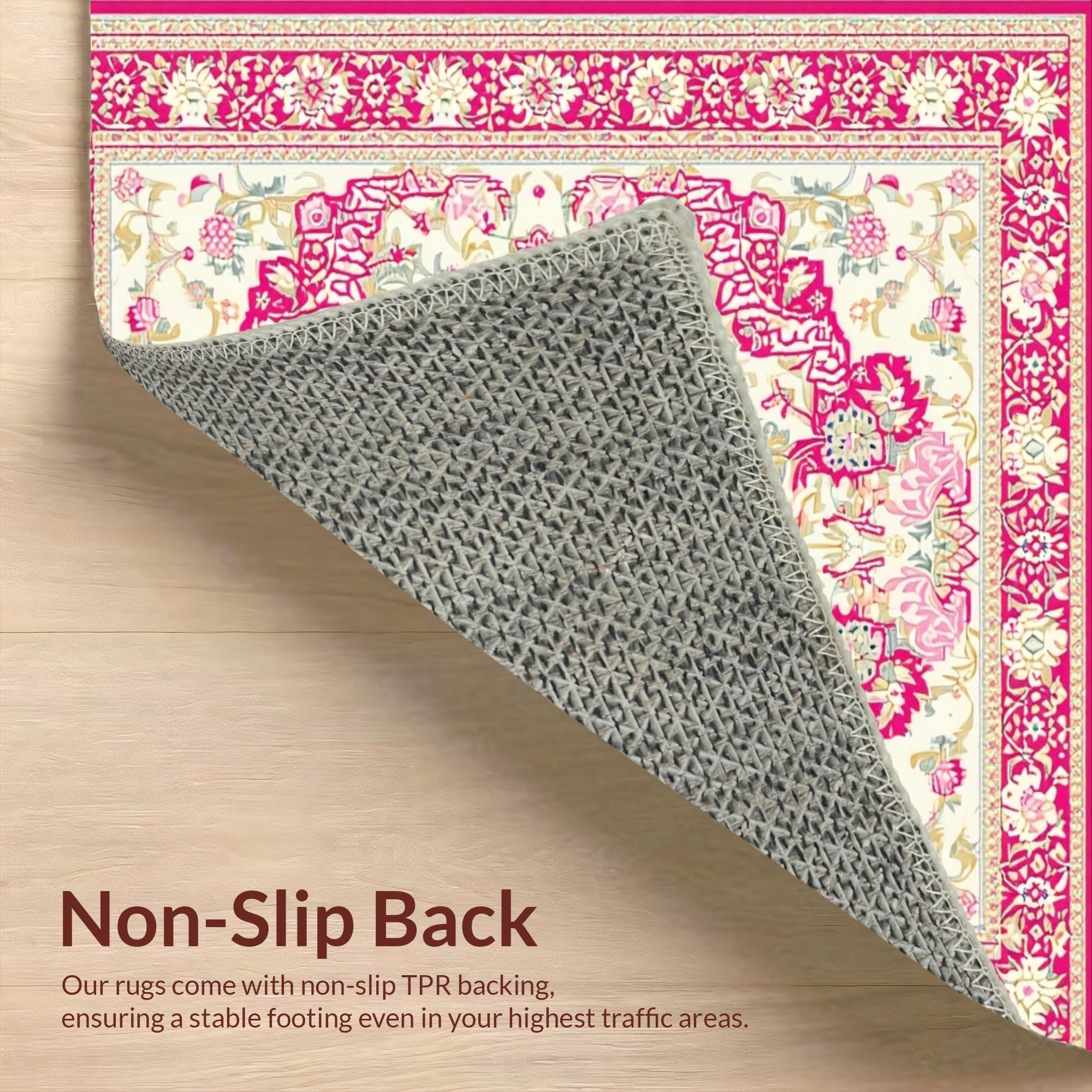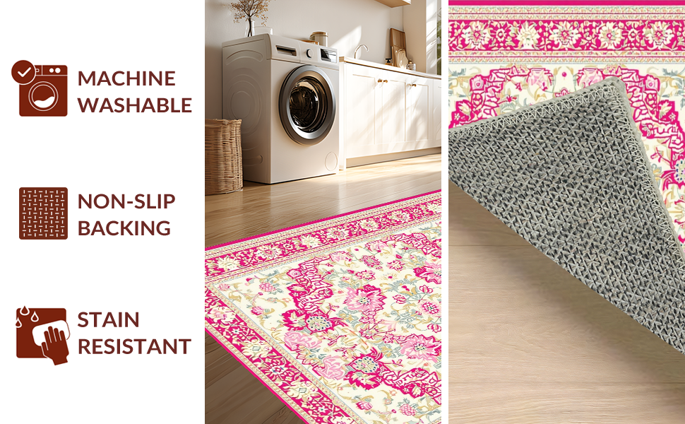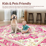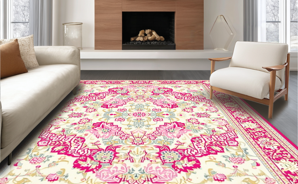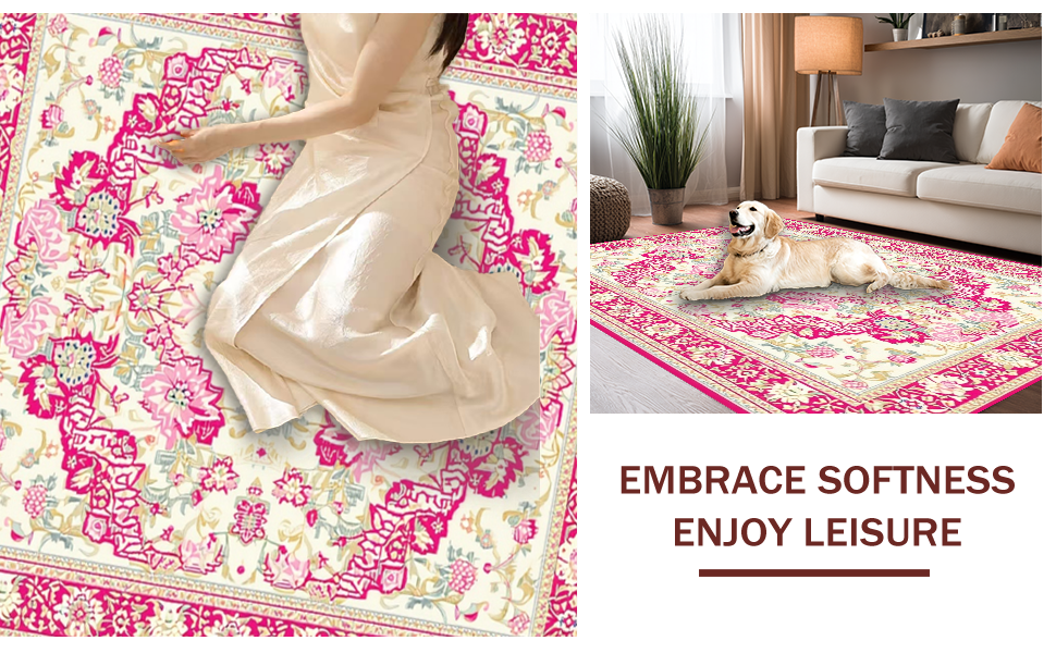 Ultra Soft Area Rug, Non Slip, Stain Resistant, Washable Area Rugs for Living Room, Bedroom, Cozy Distressed Graphic Elements(Pink) Overview: