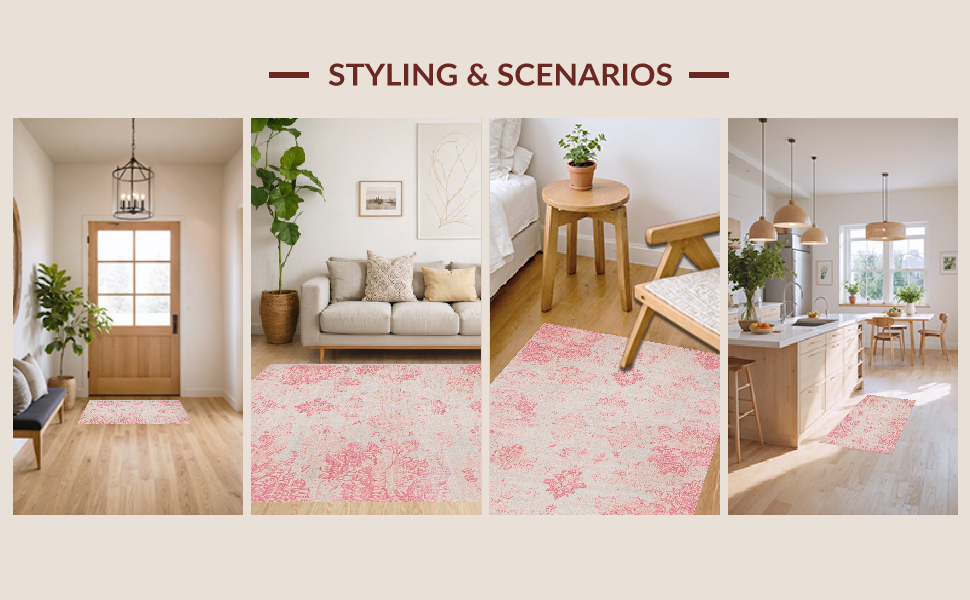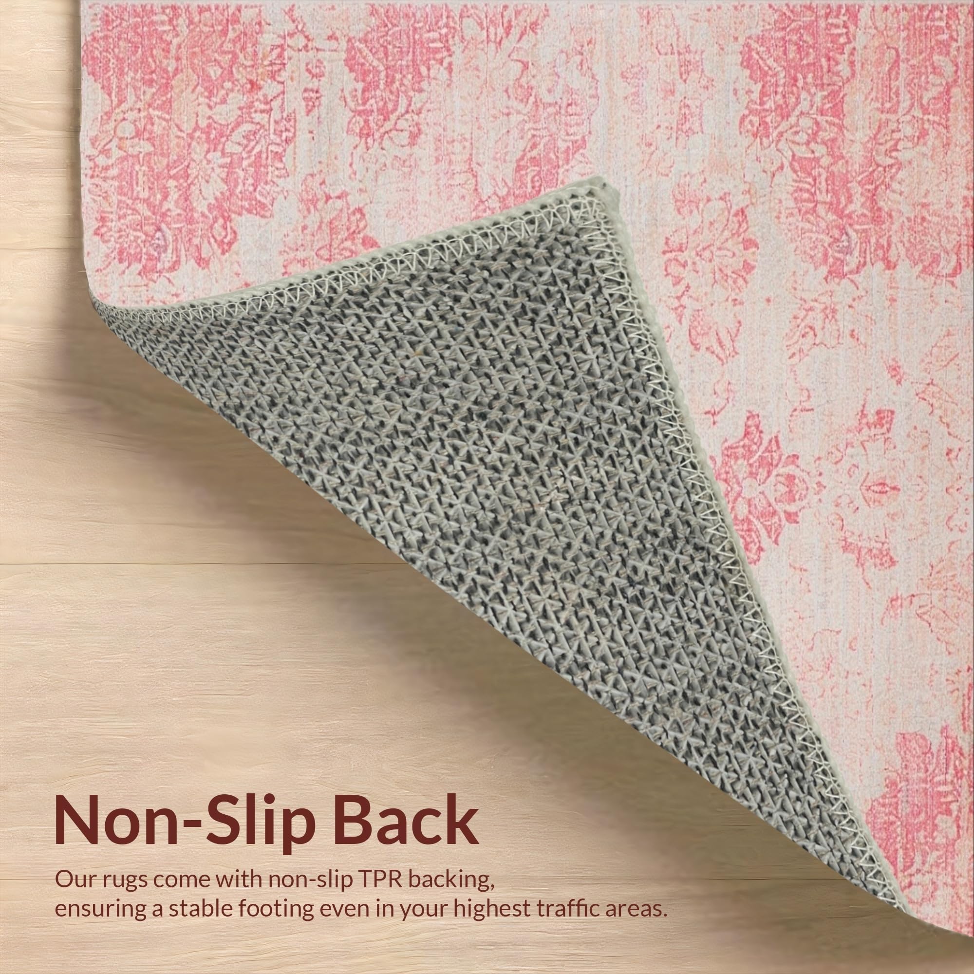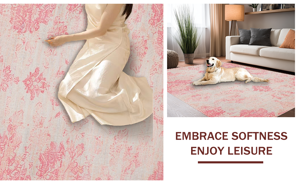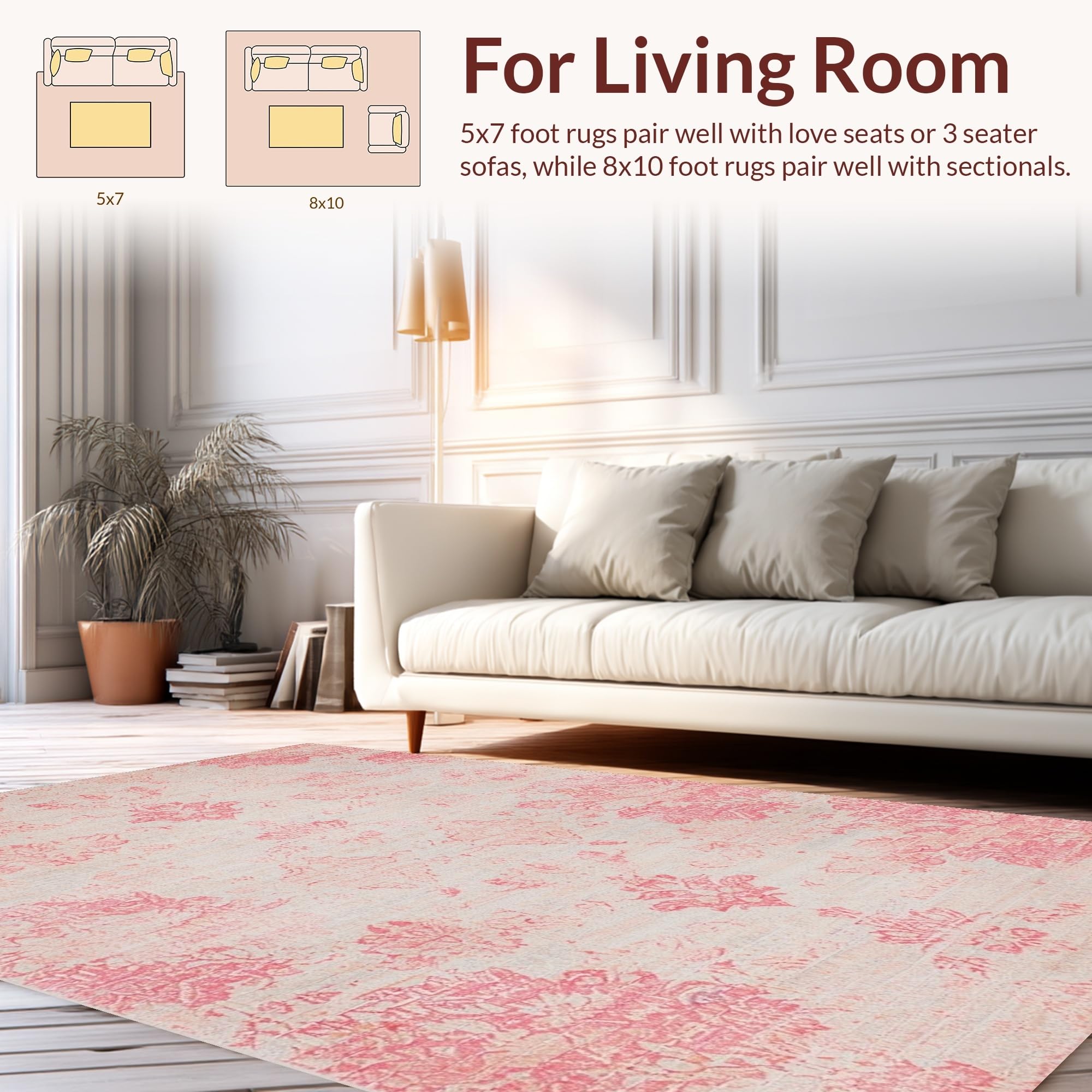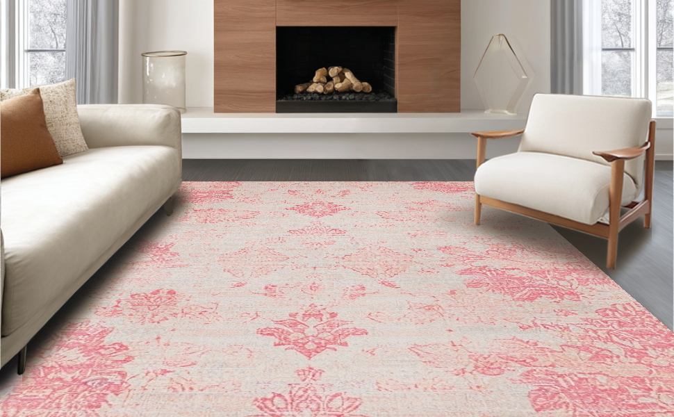 Ultra Soft Area Rug, Non Slip, Stain Resistant, Washable Area Rugs for Living Room, Bedroom, Cozy Earthy Floral Touch(Pink) Overview: