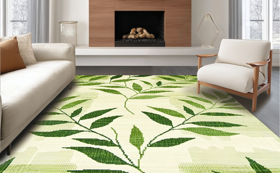 Ultra Soft Area Rug, Non Slip, Stain Resistant, Washable Area Rugs for Living Room, Bedroom, Cozy Earthy Gradient Pattern(Green) Overview: