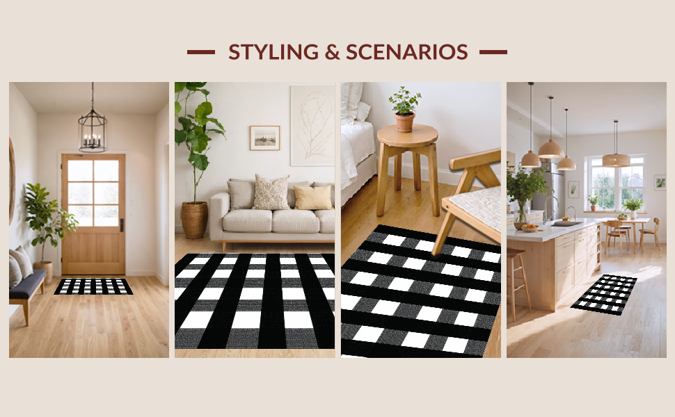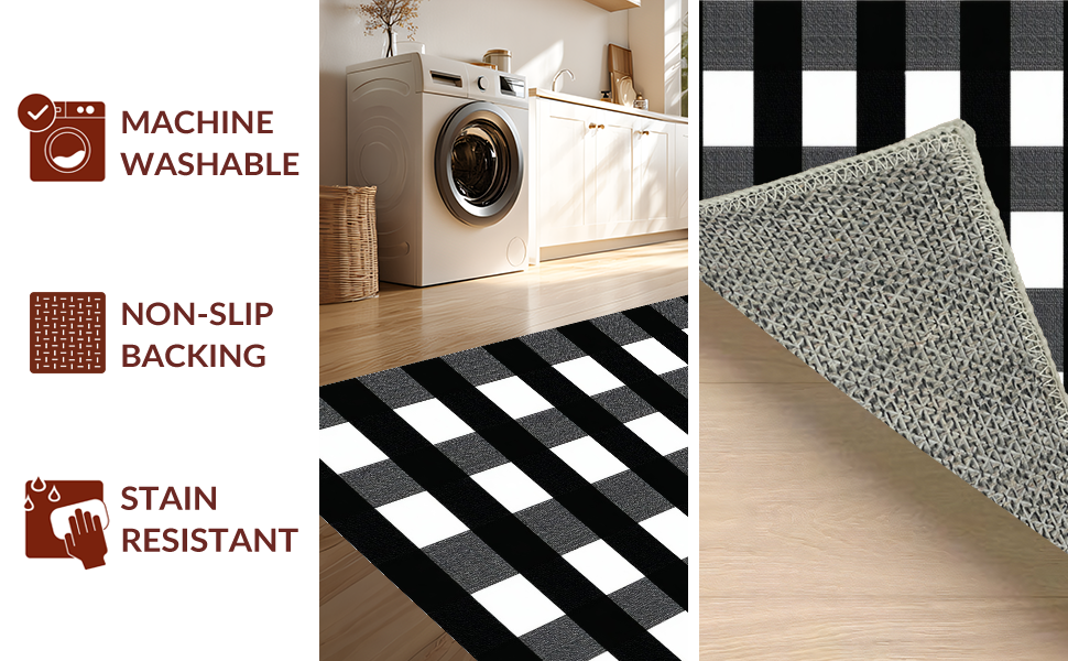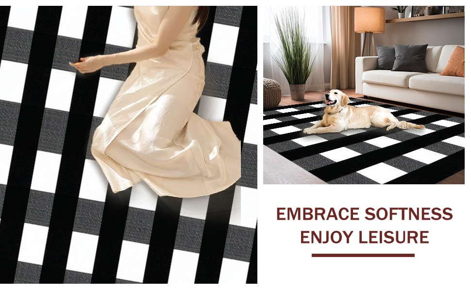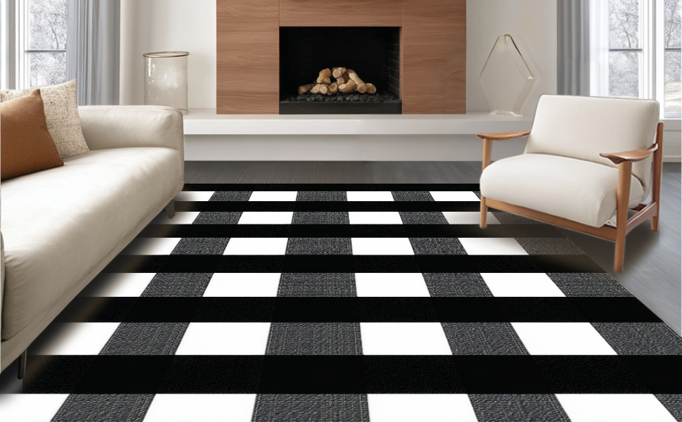 Ultra Soft Area Rug, Non Slip, Stain Resistant, Washable Area Rugs for Living Room, Bedroom, Cozy Earthy Plaid Motif(Black) Overview: