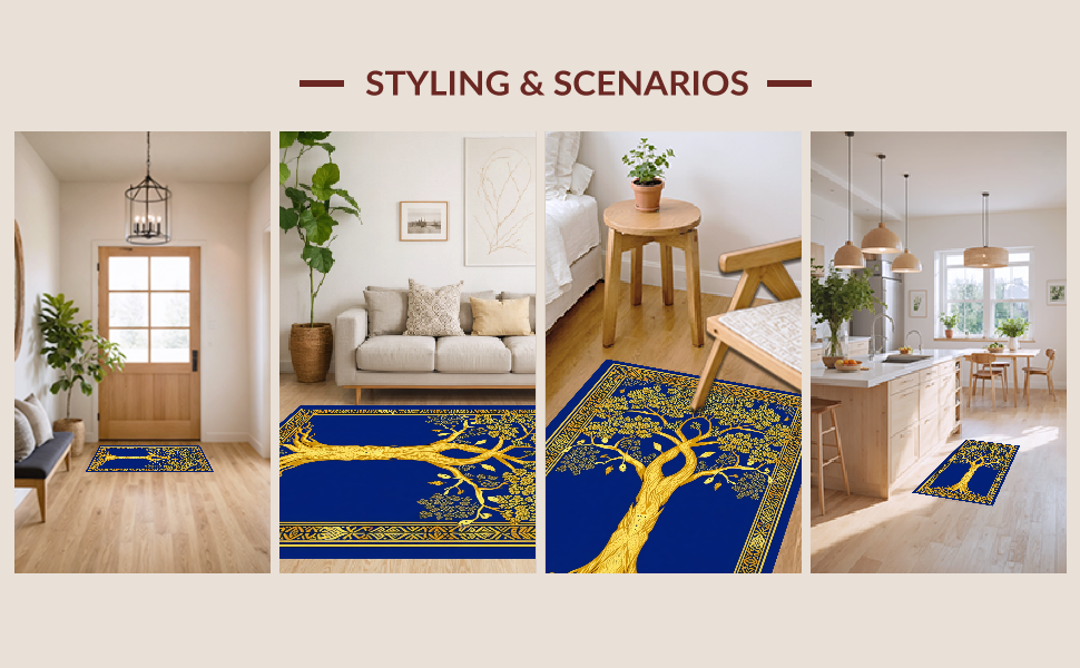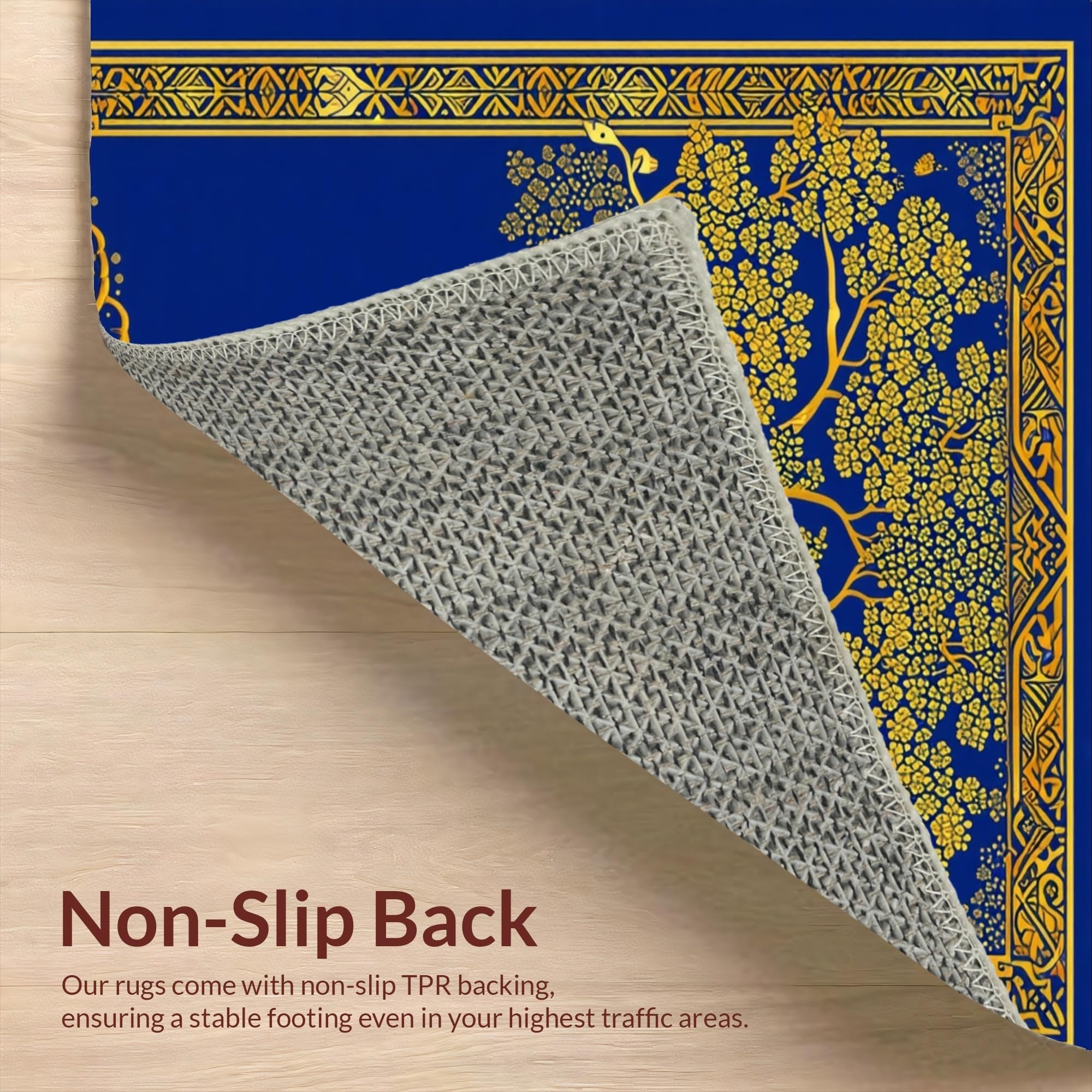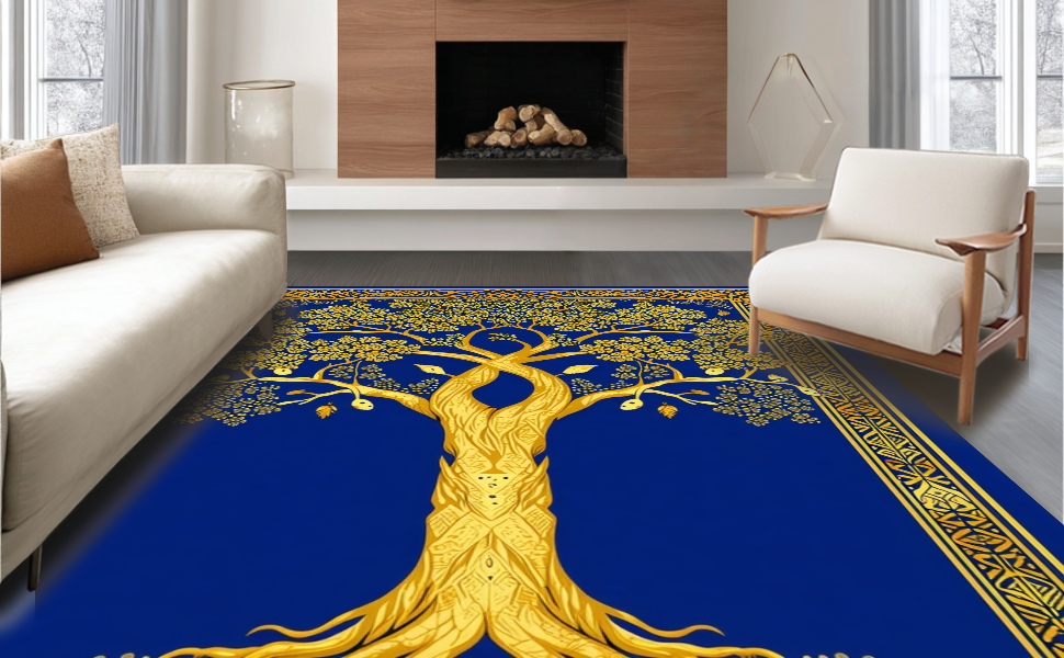Ultra Soft Area Rug, Non Slip, Stain Resistant, Washable Area Rugs for Living Room, Bedroom, Cozy Earthy Tone Medallion(Blue) Overview:
