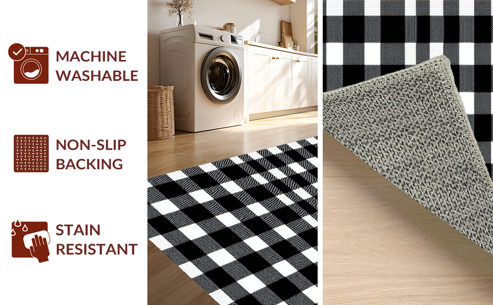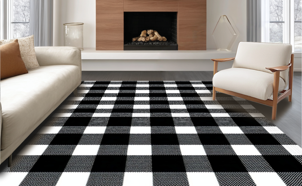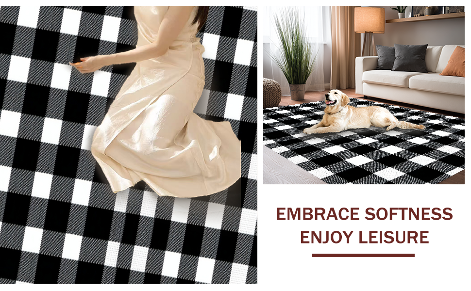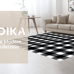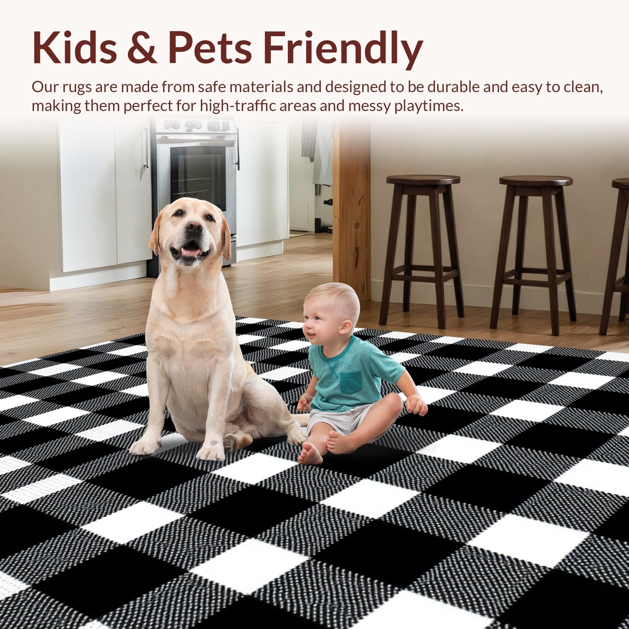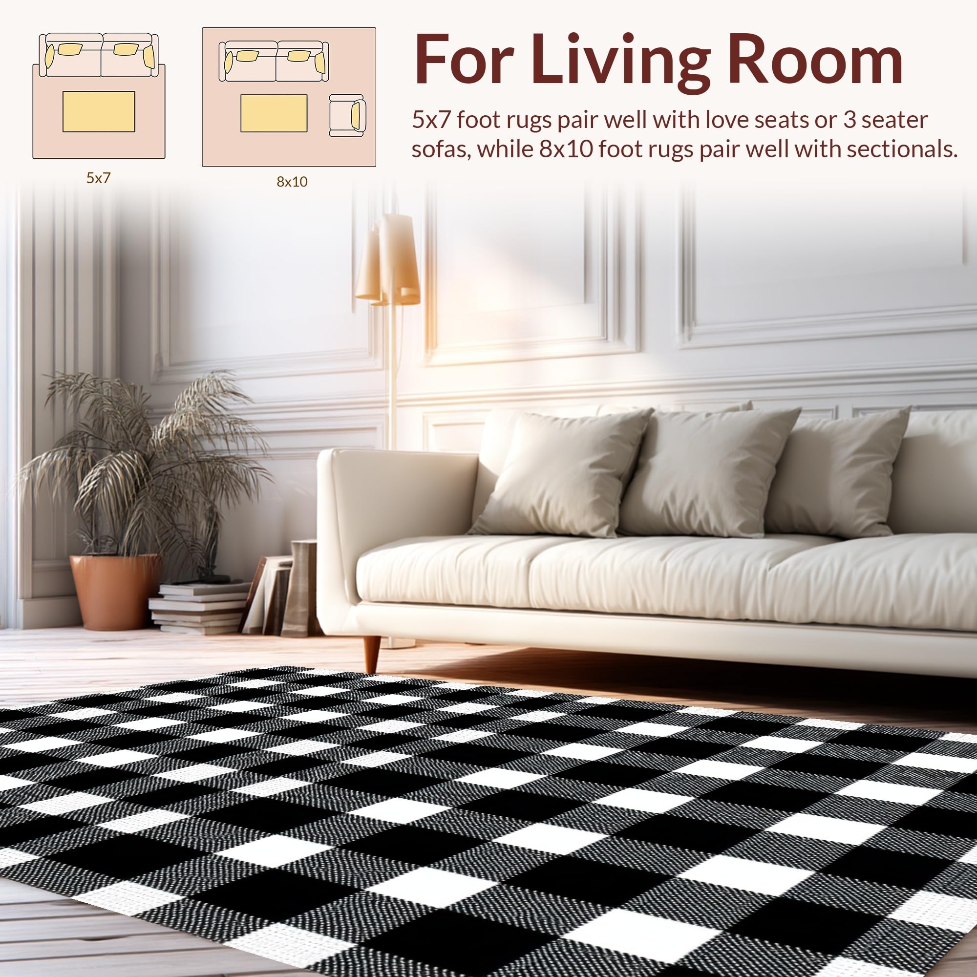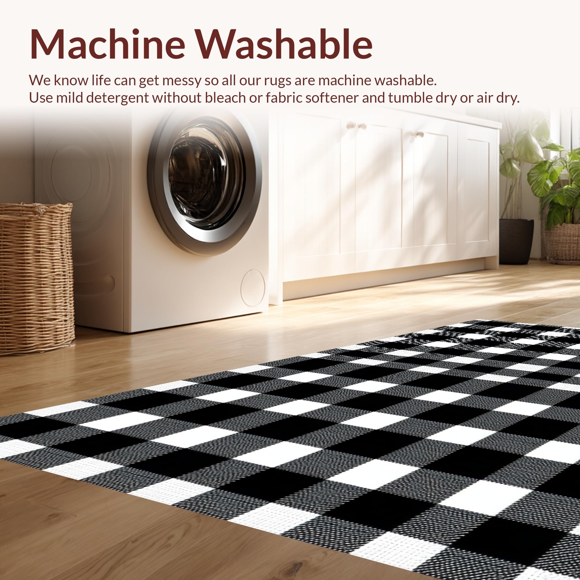 Ultra Soft Area Rug, Non Slip, Stain Resistant, Washable Area Rugs for Living Room, Bedroom, Cozy Earthy Tones Checked Visual(Black) Overview: