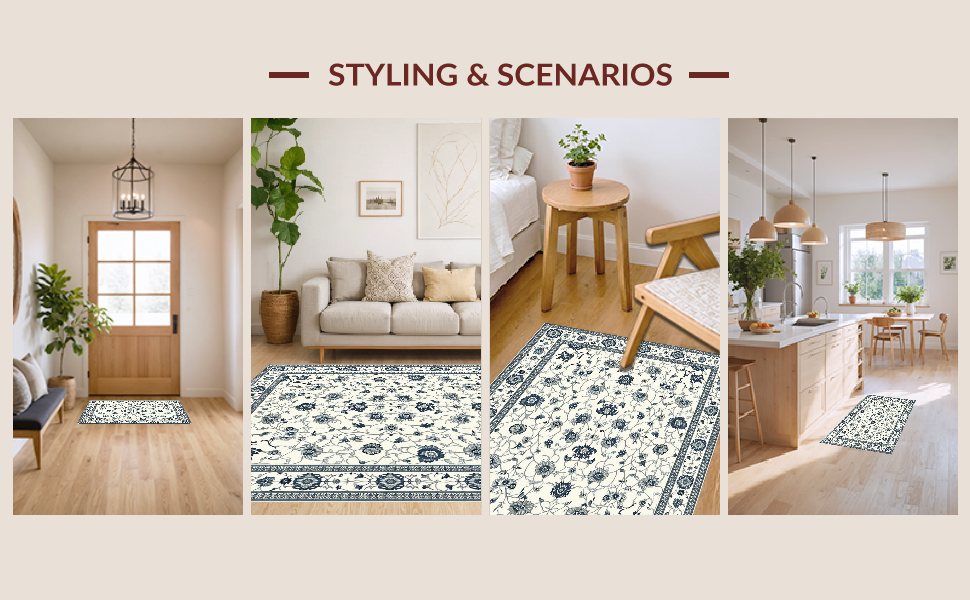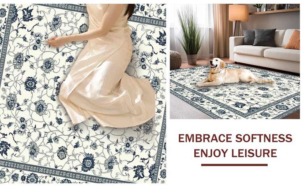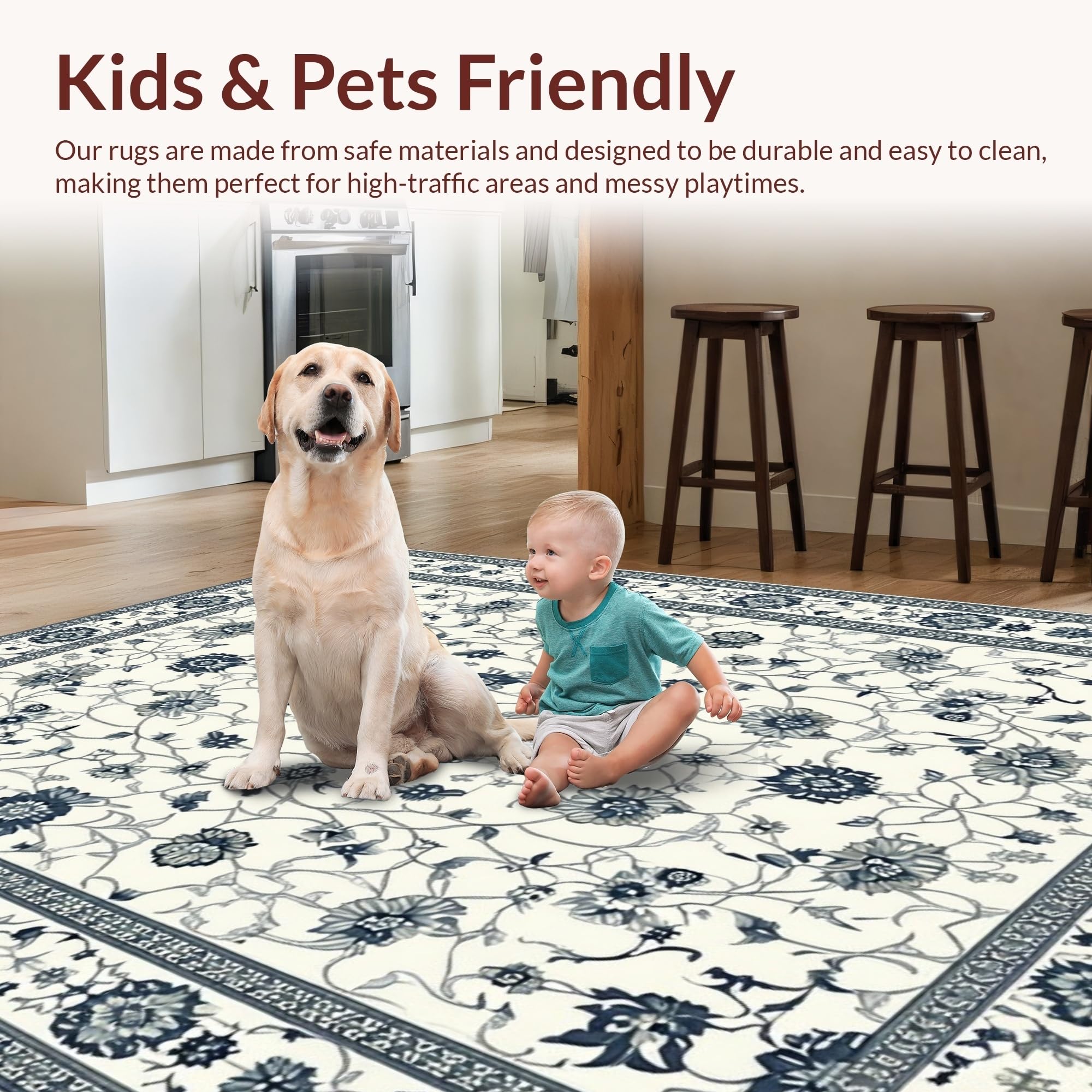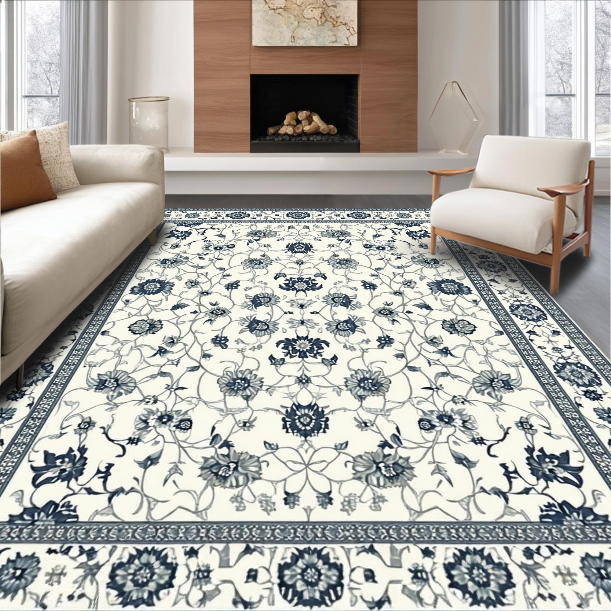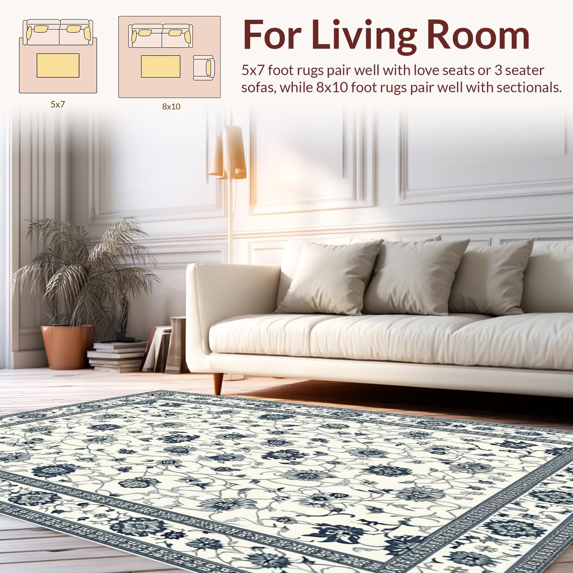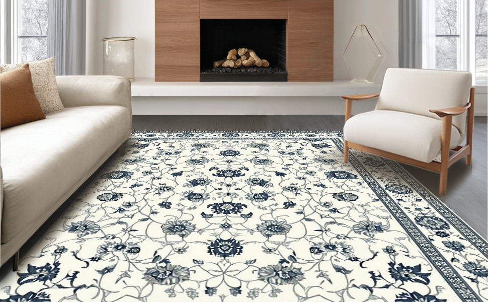 Ultra Soft Area Rug, Non Slip, Stain Resistant, Washable Area Rugs for Living Room, Bedroom, Cozy Earthy Tones Vintage Look(Ivory) Overview: