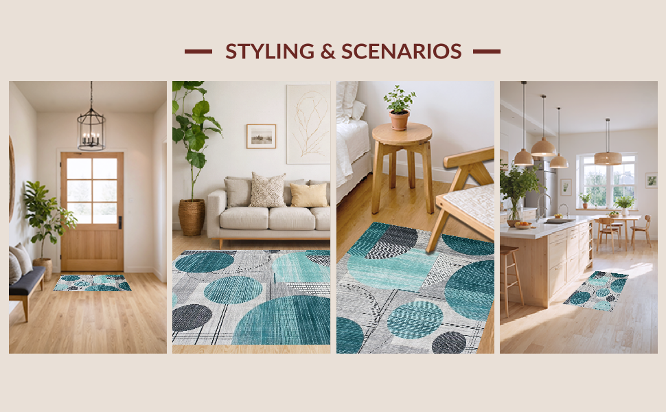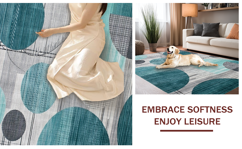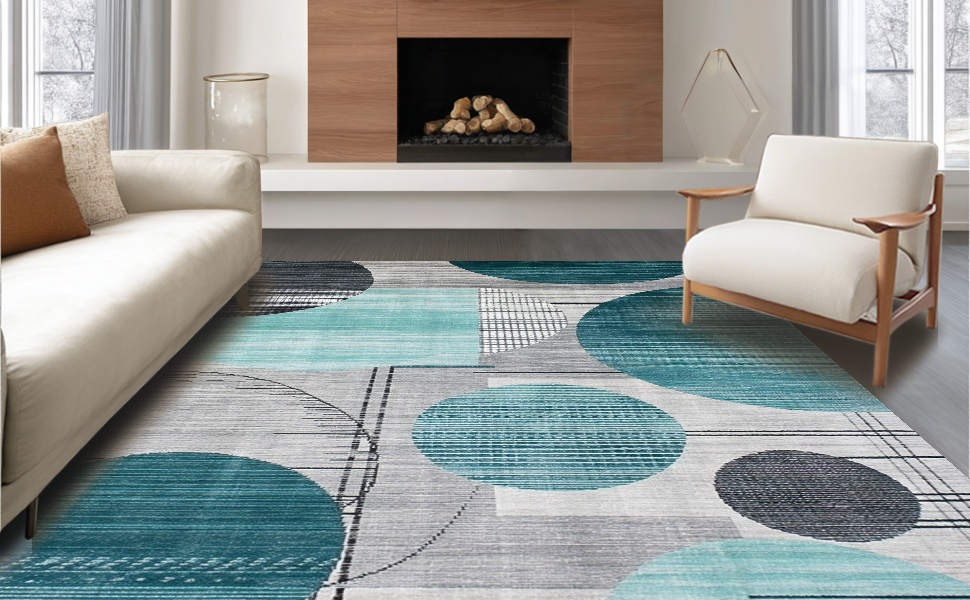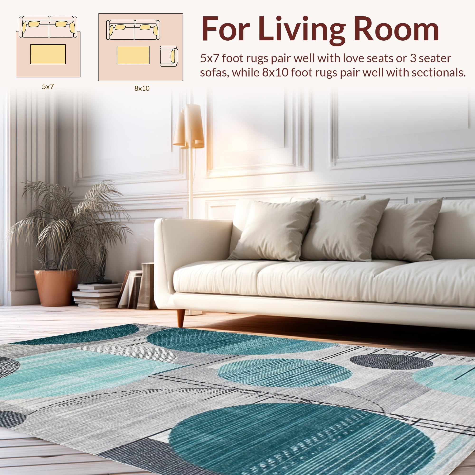 Ultra Soft Area Rug, Non Slip, Stain Resistant, Washable Area Rugs for Living Room, Bedroom, Cozy Earthy Tones with Circular Themes(Gray) Overview: