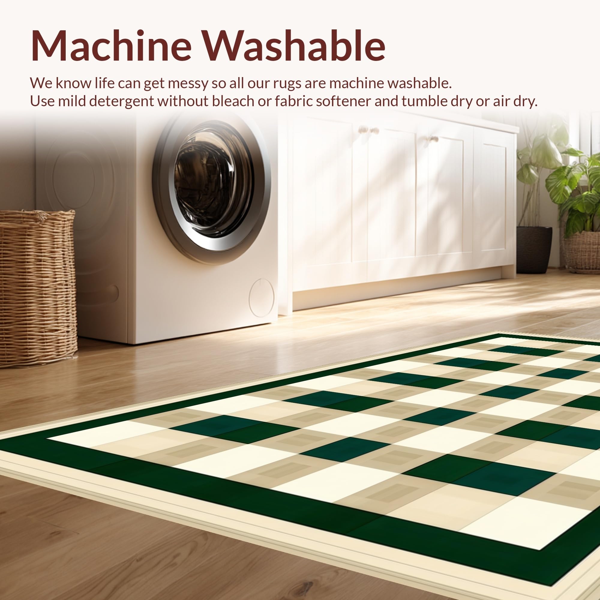 - Machine Washable: Our rugs can be easily thrown in the wash machine.