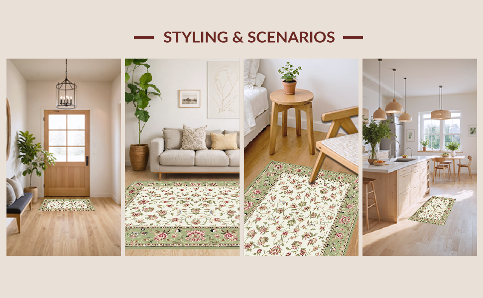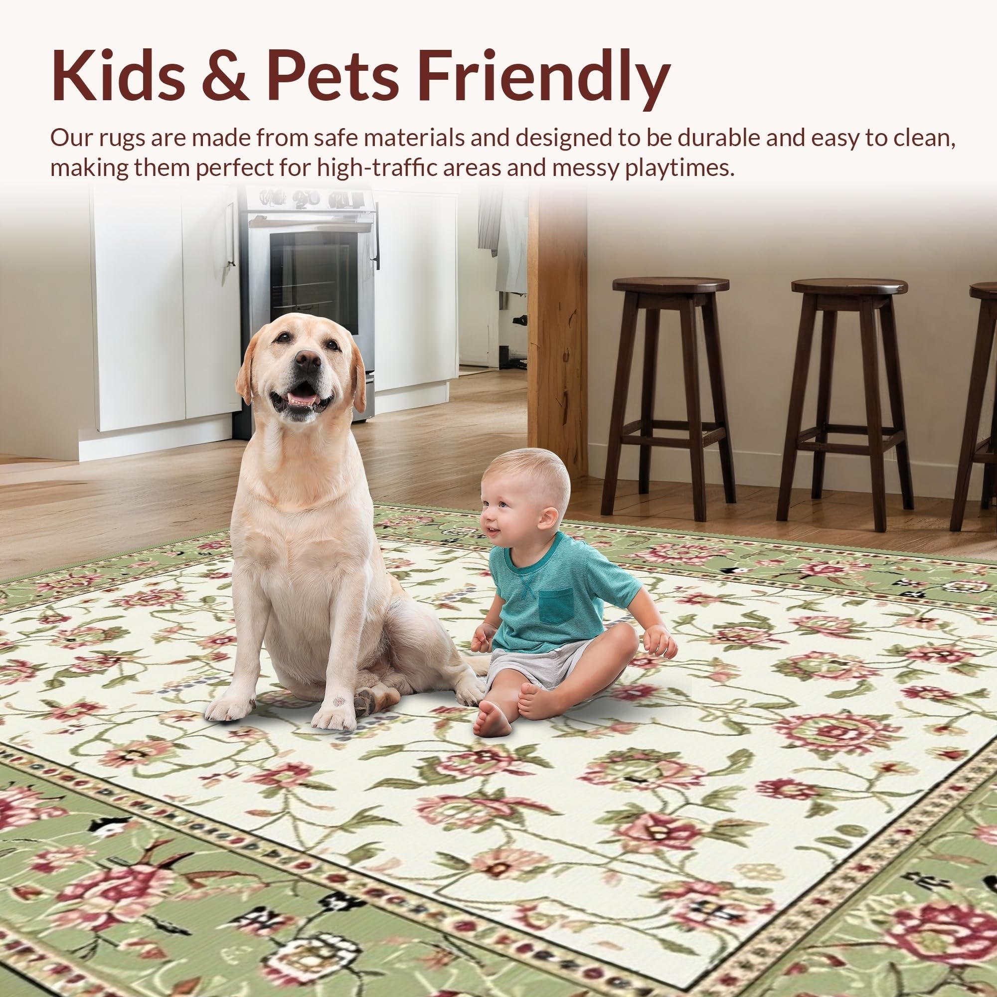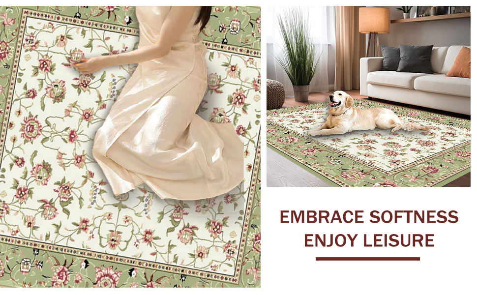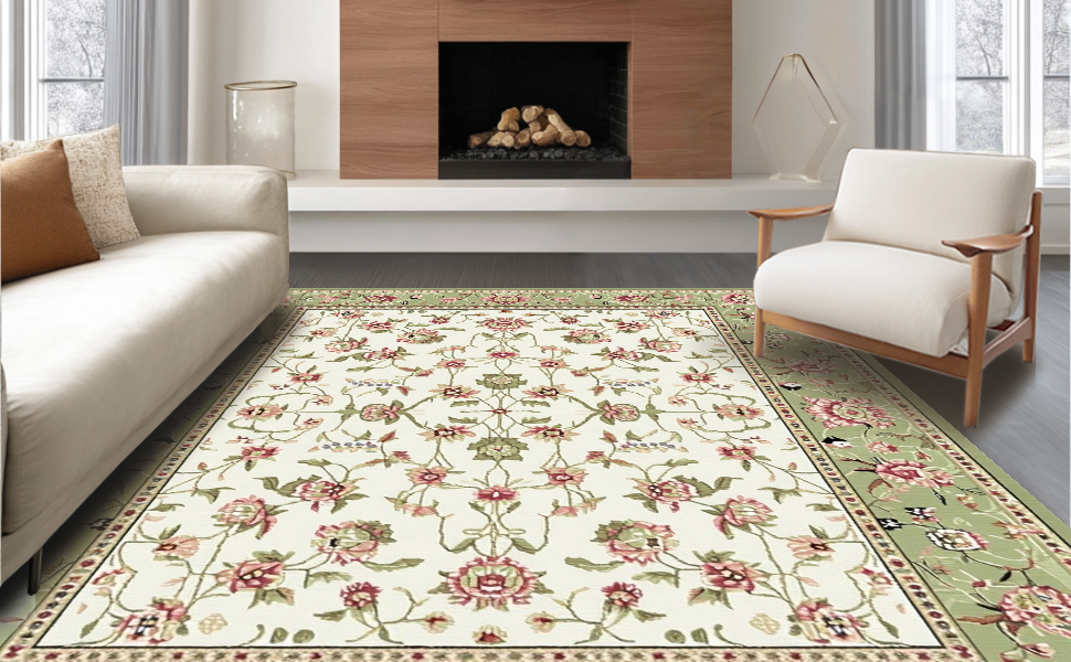 Ultra Soft Area Rug, Non Slip, Stain Resistant, Washable Area Rugs for Living Room, Bedroom, Cozy Garden-Inspired Visual Harmony(Ivory) Overview: