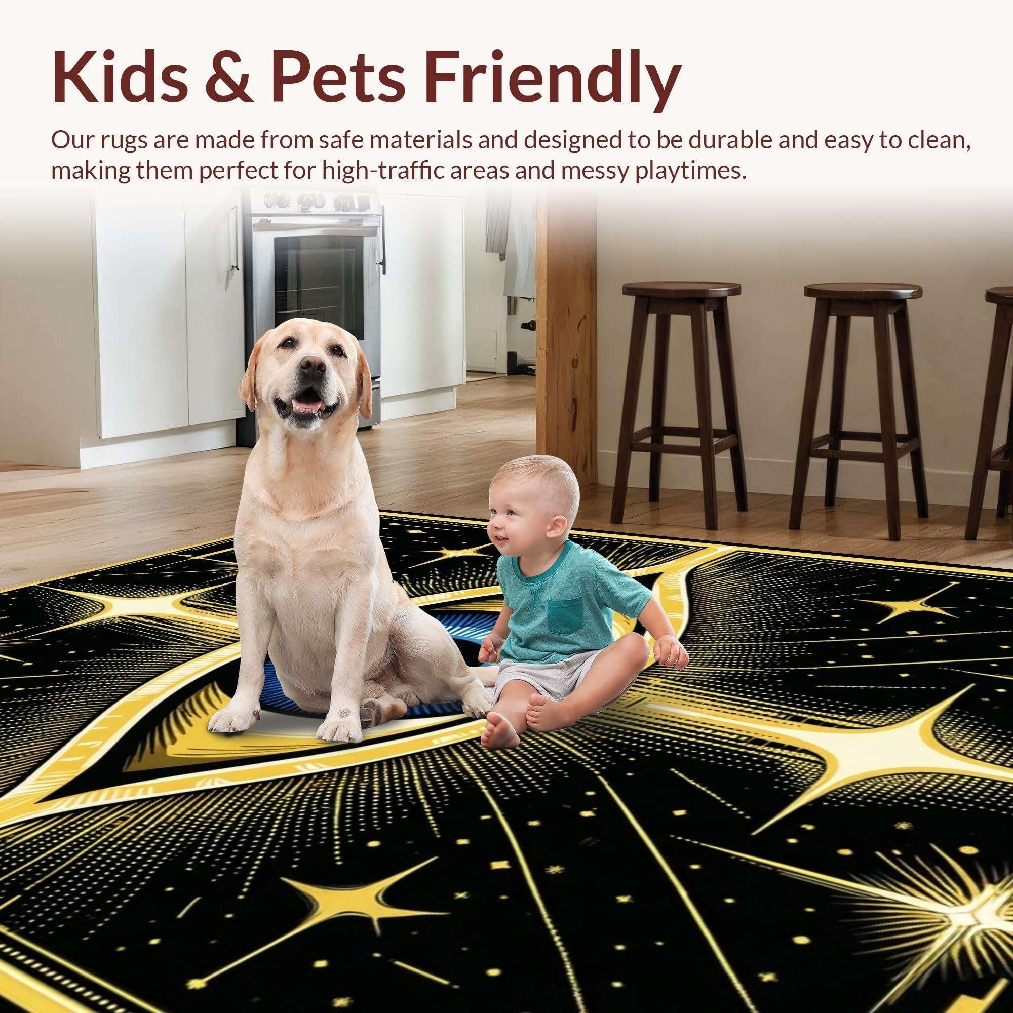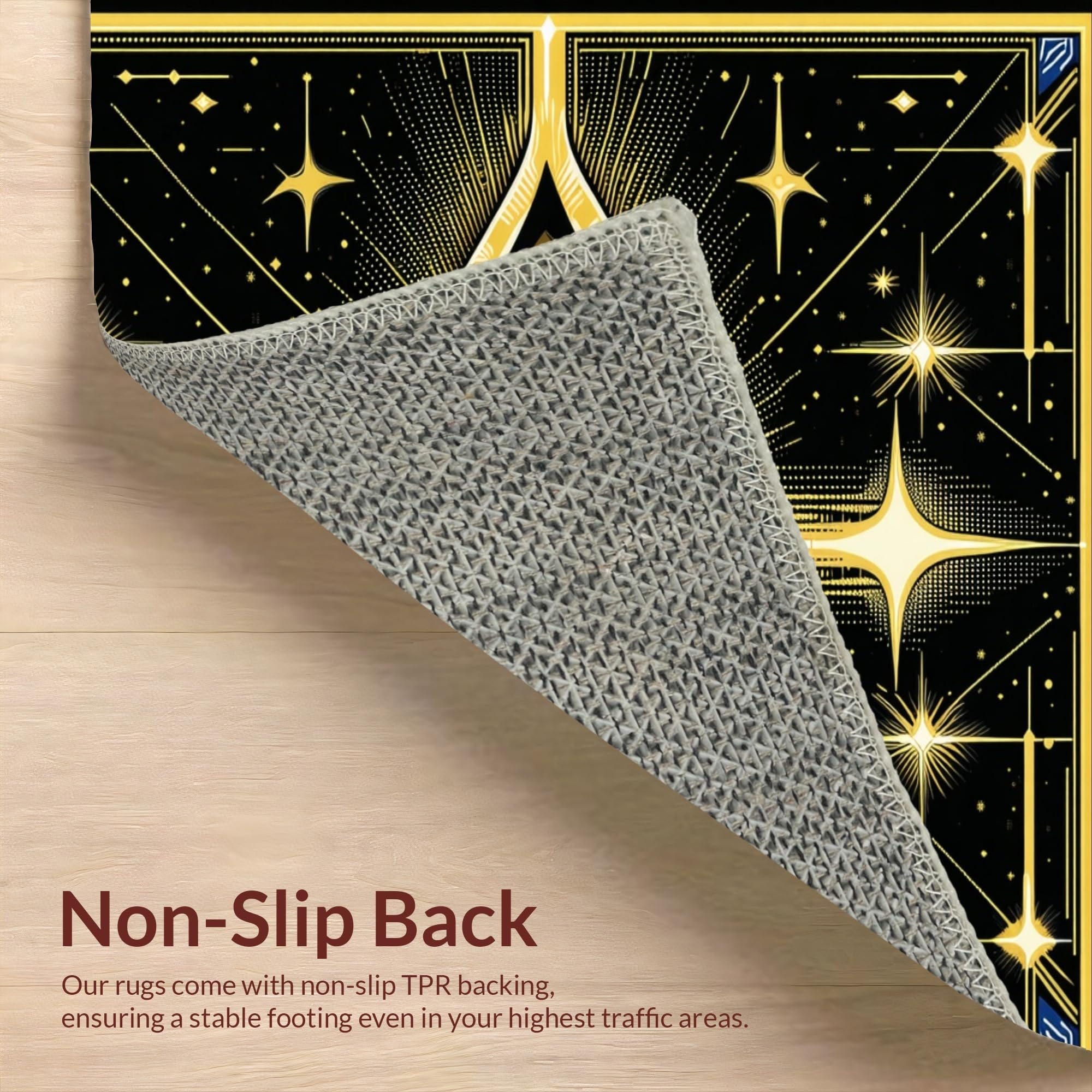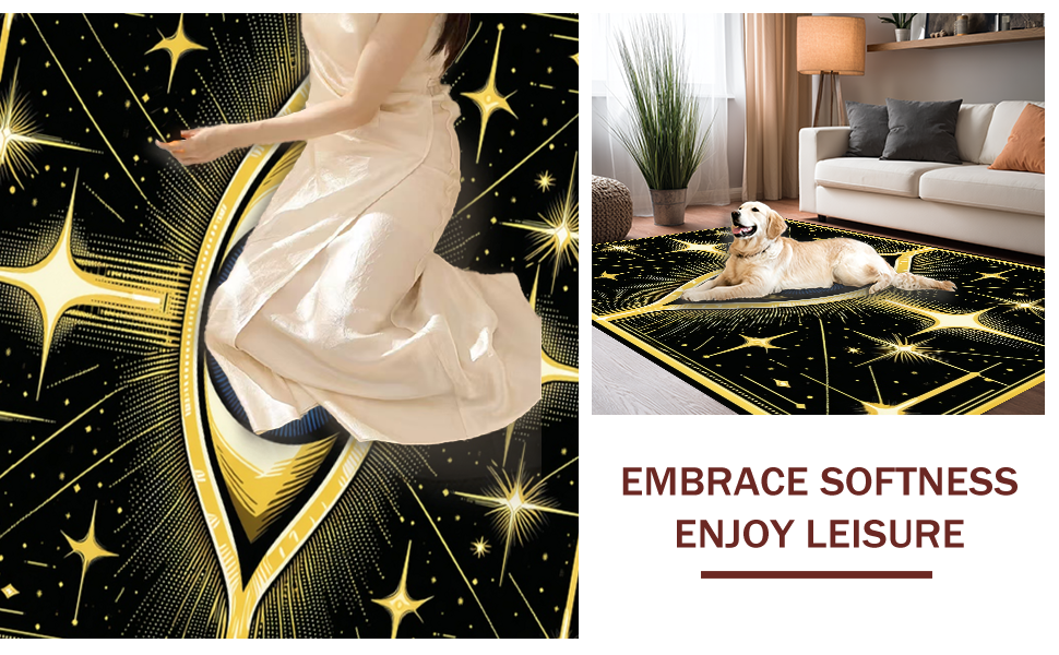 Ultra Soft Area Rug, Non Slip, Stain Resistant, Washable Area Rugs for Living Room, Bedroom, Cozy Geometric Ethnic Aesthetic(Black) Overview: