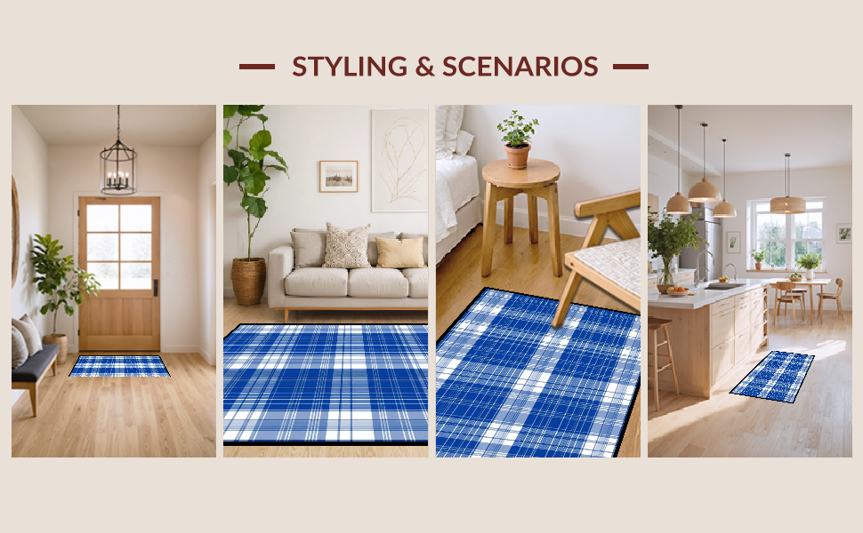 Ultra Soft Area Rug, Non Slip, Stain Resistant, Washable Area Rugs for Living Room, Bedroom, Cozy Gingham Patterned Delight(Blue) Overview:
