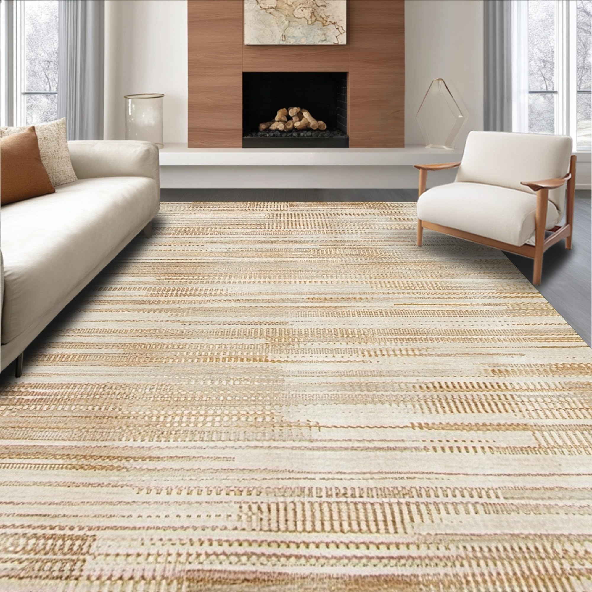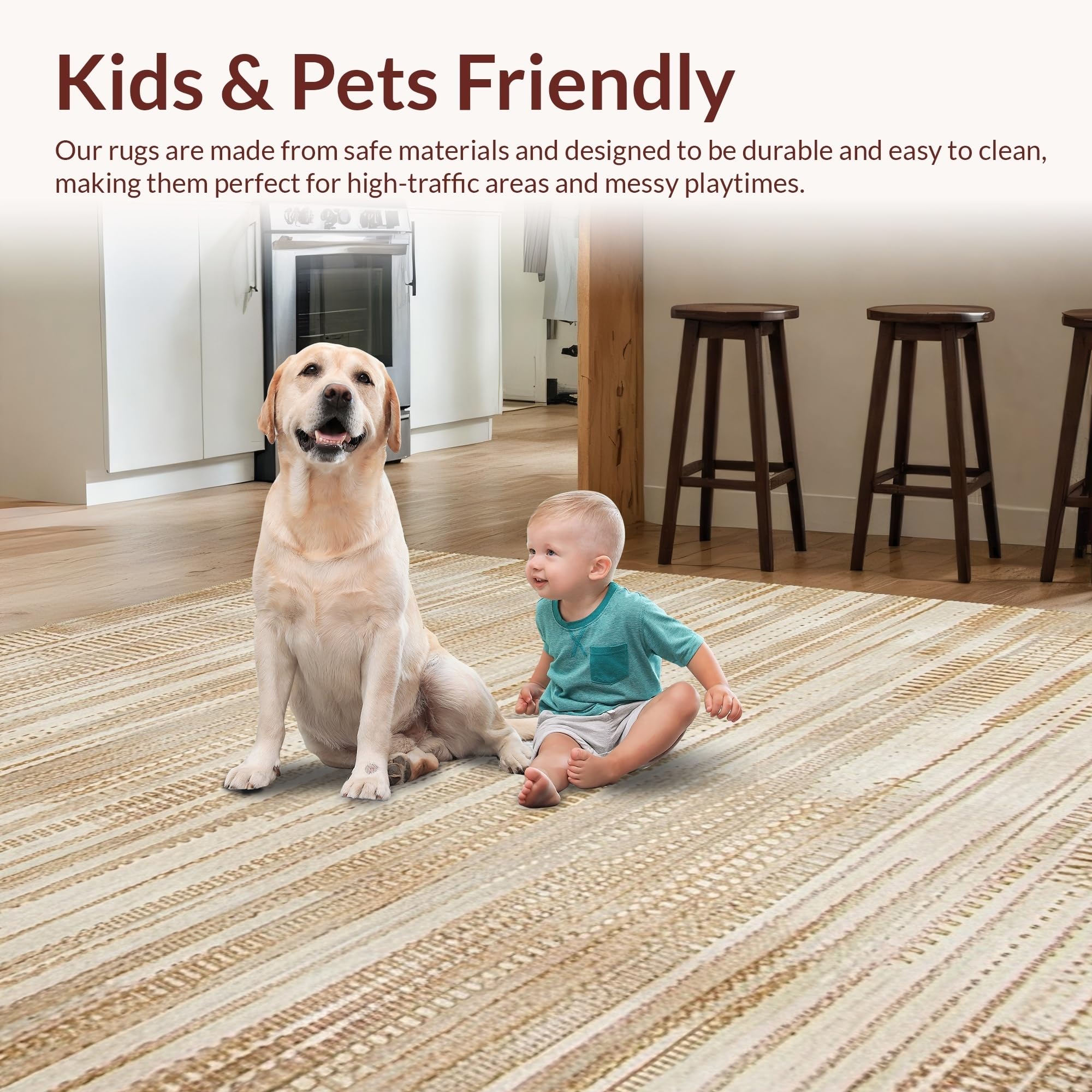 Ultra Soft Area Rug, Non Slip, Stain Resistant, Washable Area Rugs for Living Room, Bedroom, Cozy Handcrafted Oval Motif(Beige) Overview: