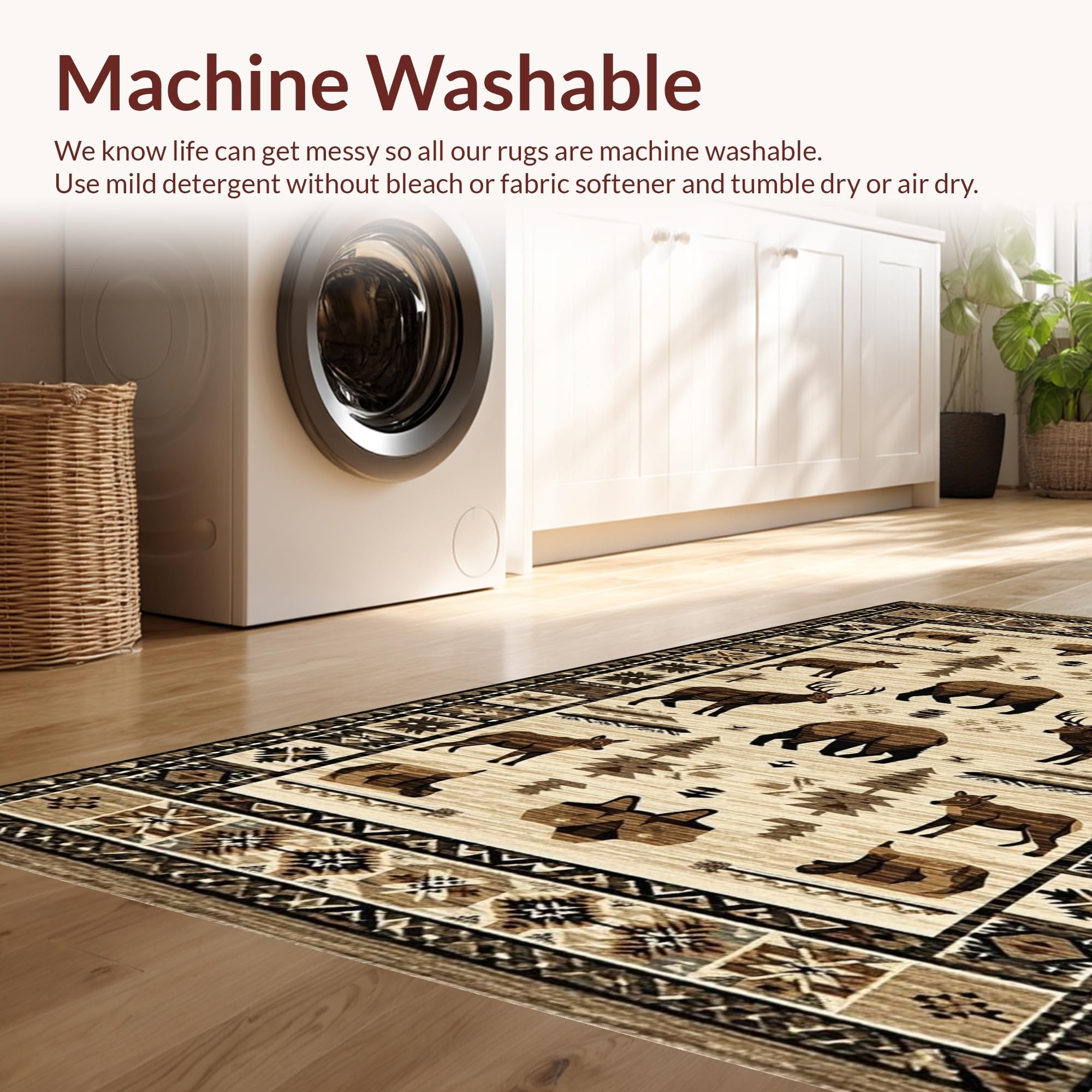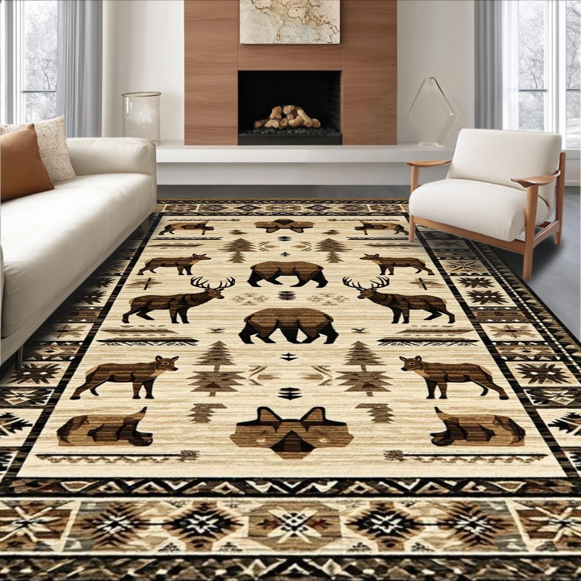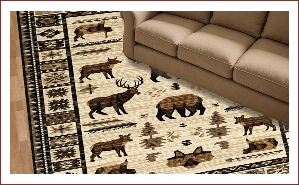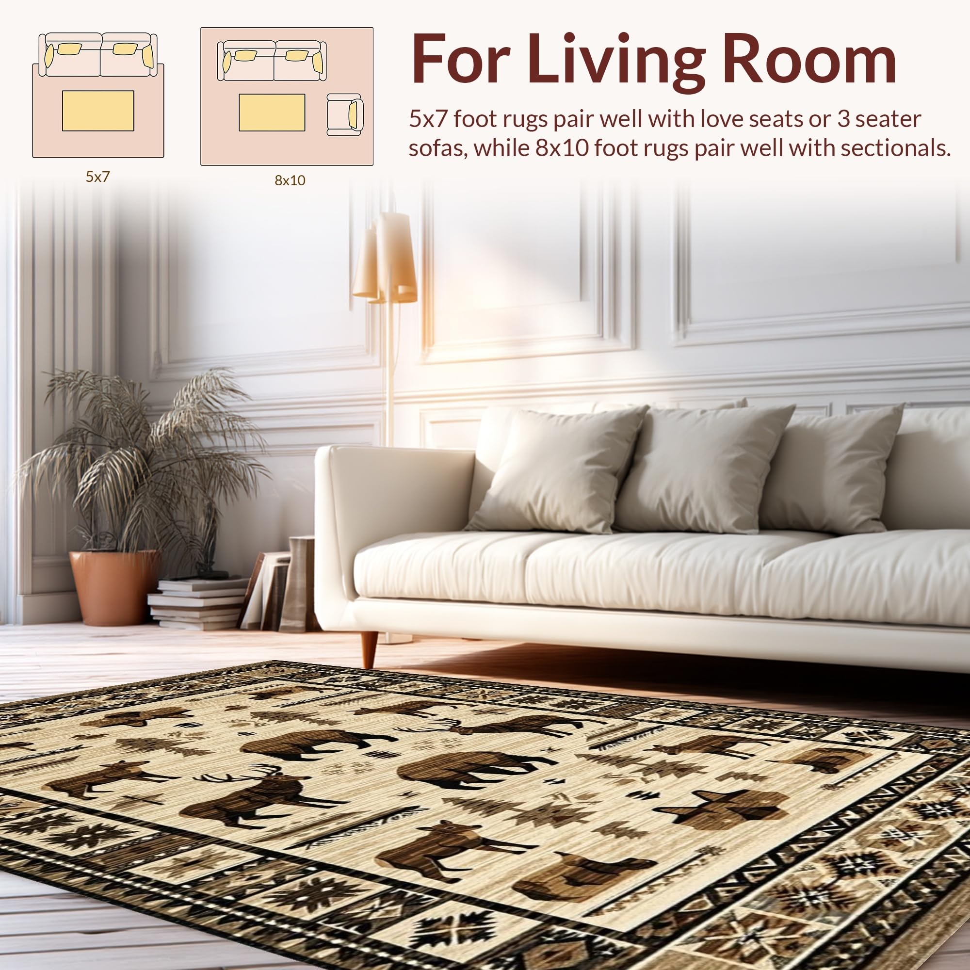 Ultra Soft Area Rug, Non Slip, Stain Resistant, Washable Area Rugs for Living Room, Bedroom, Cozy Lodge-Inspired Nature Theme(Beige) Overview: