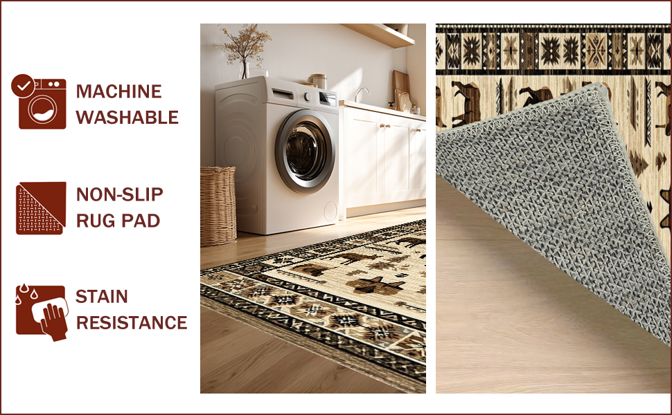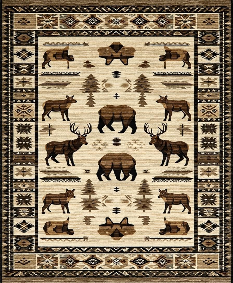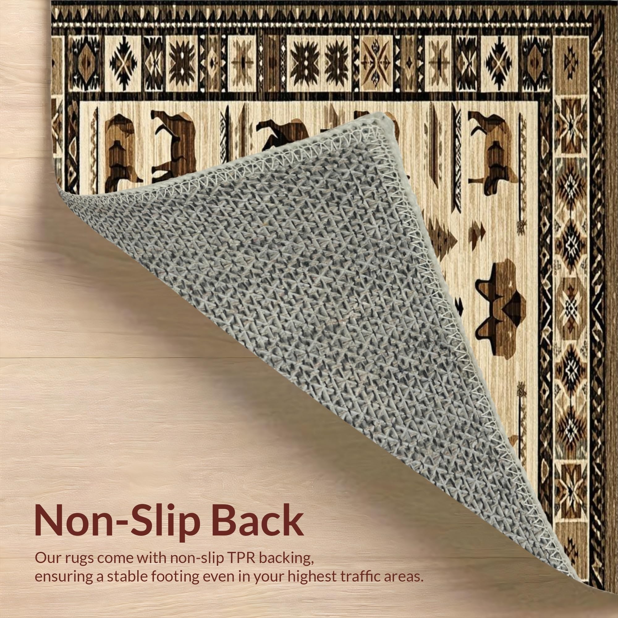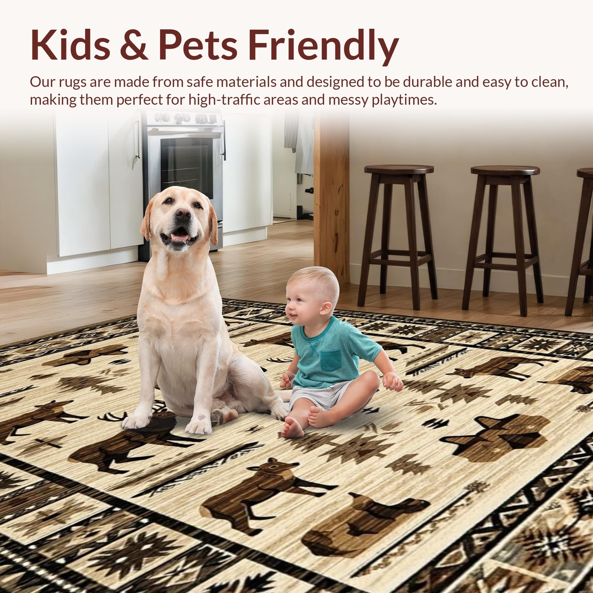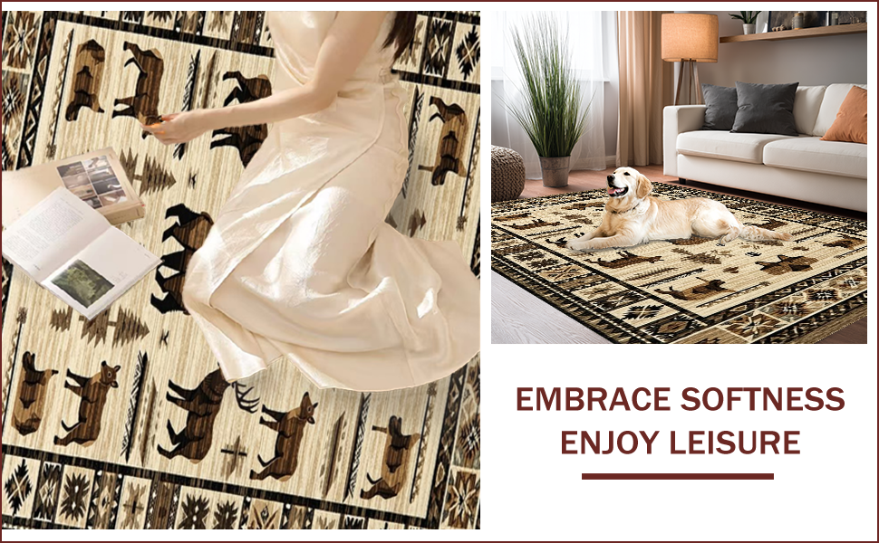 Ultra Soft Area Rug, Non Slip, Stain Resistant, Washable Area Rugs for Living Room, Bedroom, Cozy Lodge-Inspired Nature Theme(Beige) Overview: