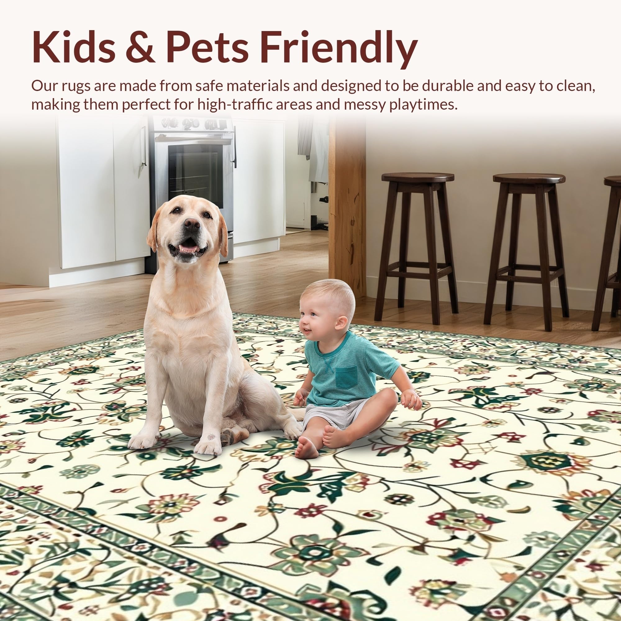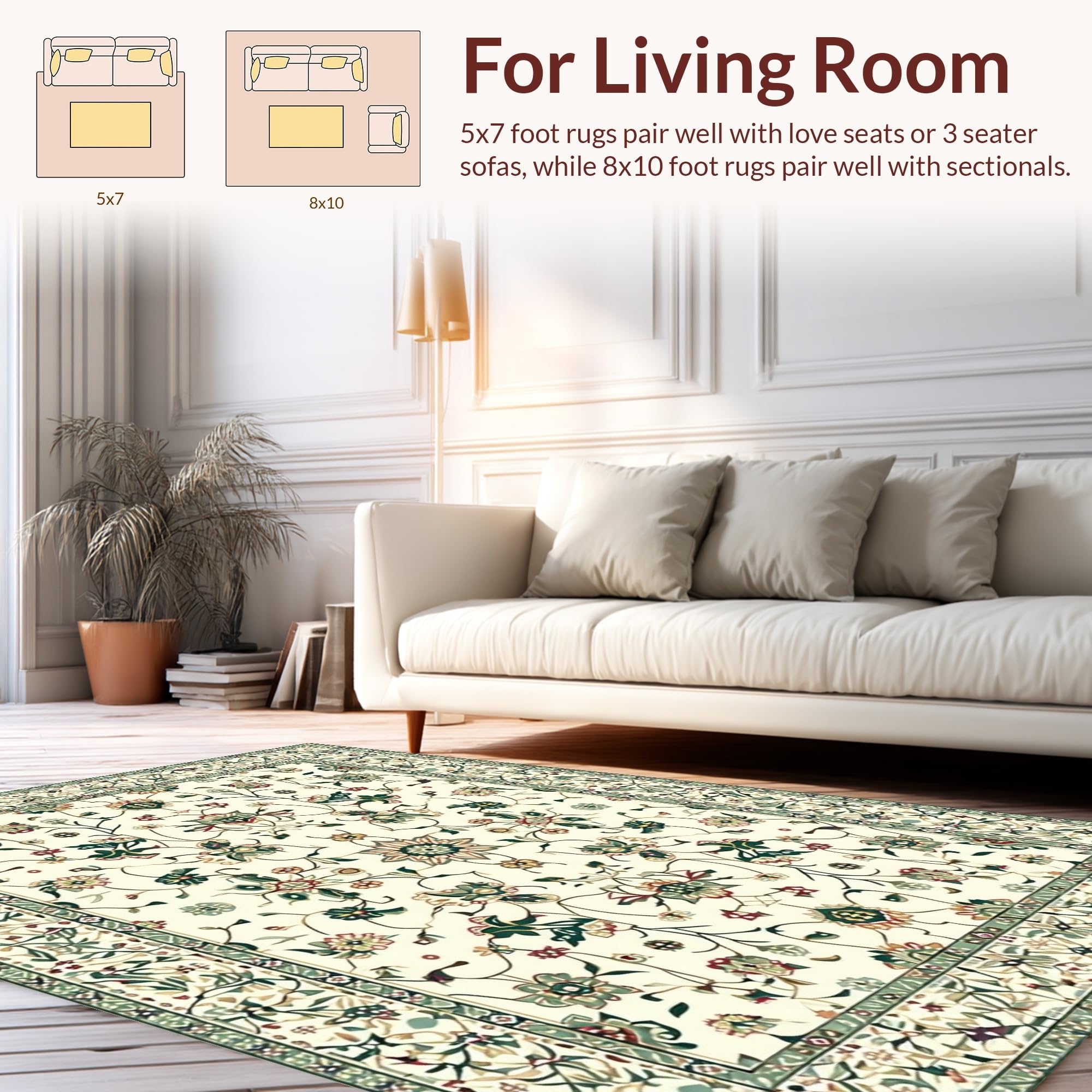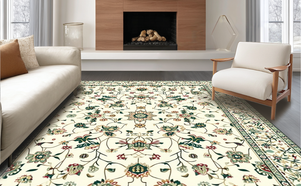 Ultra Soft Area Rug, Non Slip, Stain Resistant, Washable Area Rugs for Living Room, Bedroom, Cozy Muted Trellis Arrangement(Ivory) Overview: