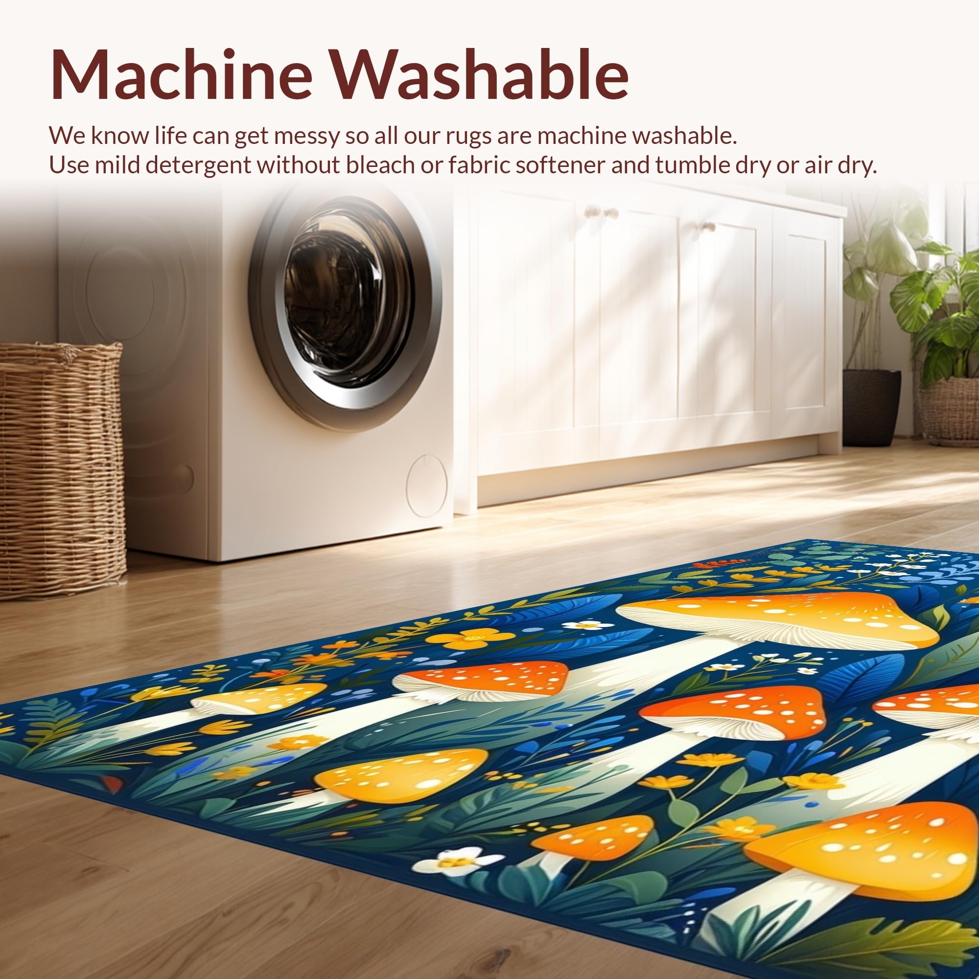 - Machine Washable: Our rugs can be easily thrown in the wash machine.