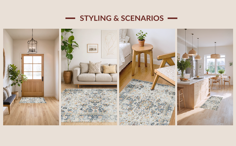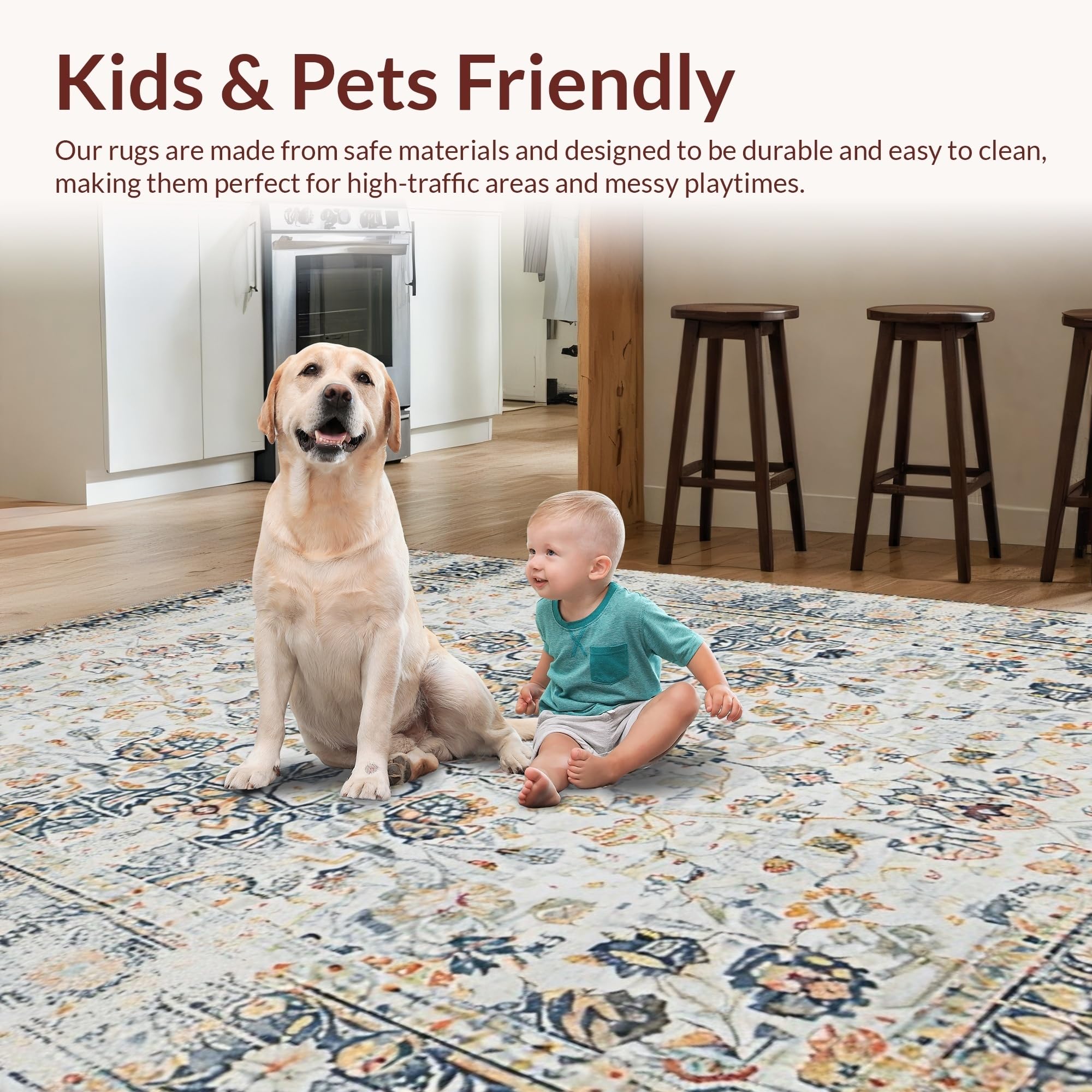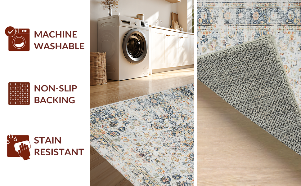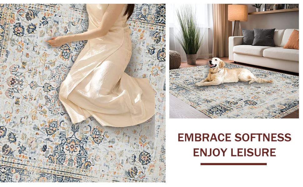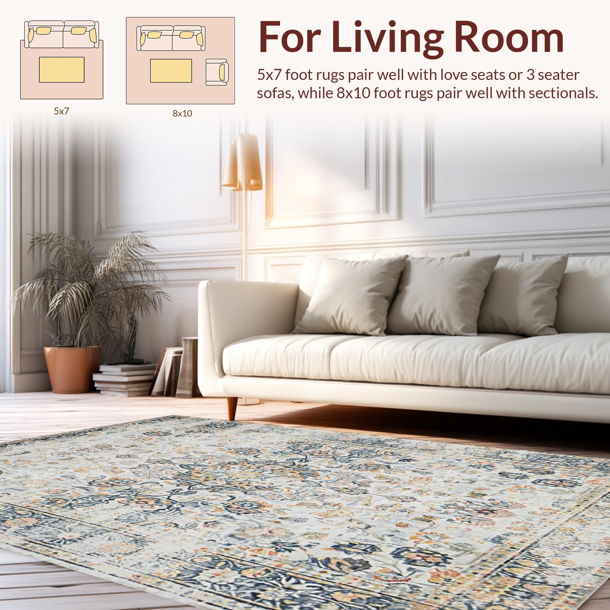 Ultra Soft Area Rug, Non Slip, Stain Resistant, Washable Area Rugs for Living Room, Bedroom, Cozy Neutral Vintage Blossom(Ivory) Overview: