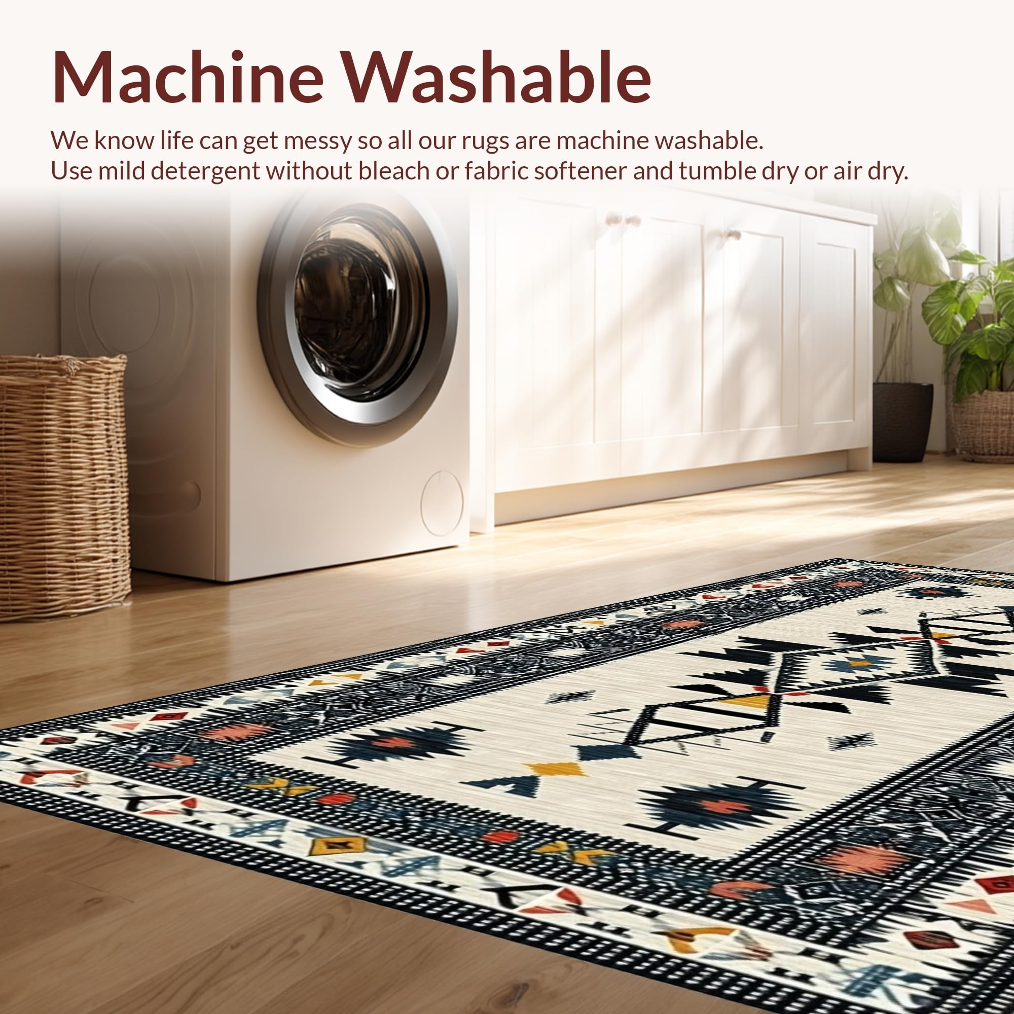 - Machine Washable: Our rugs can be easily thrown in the wash machine.
