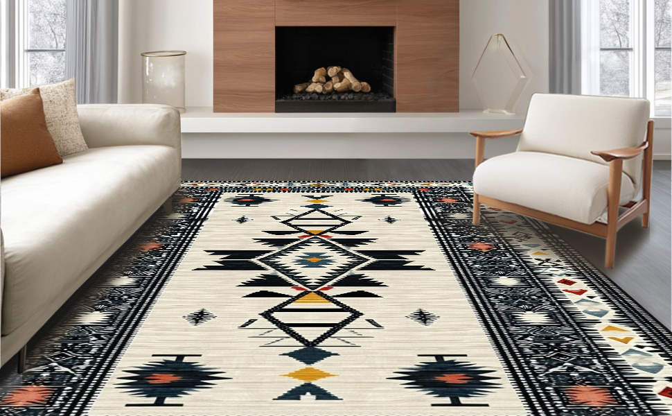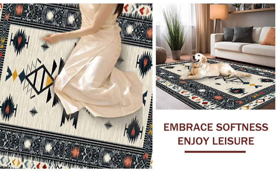 Ultra Soft Area Rug, Non Slip, Stain Resistant, Washable Area Rugs for Living Room, Bedroom, Cozy Neutral Wave Elements(Beige) Overview: