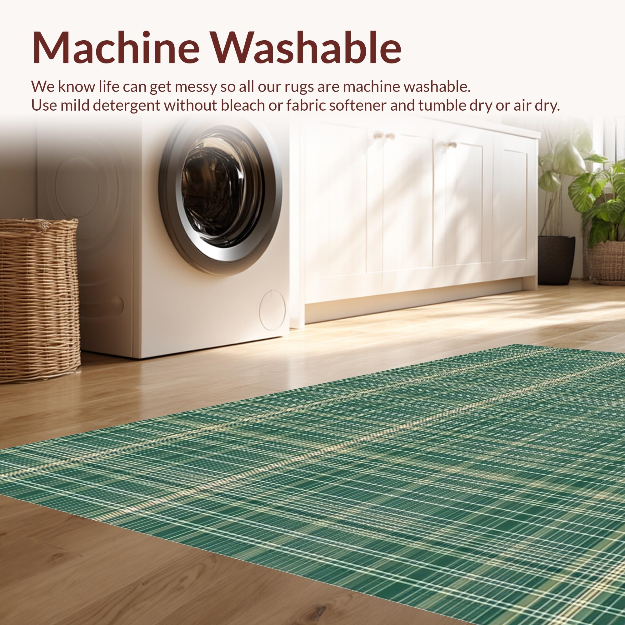 - Machine Washable: Our rugs can be easily thrown in the wash machine.