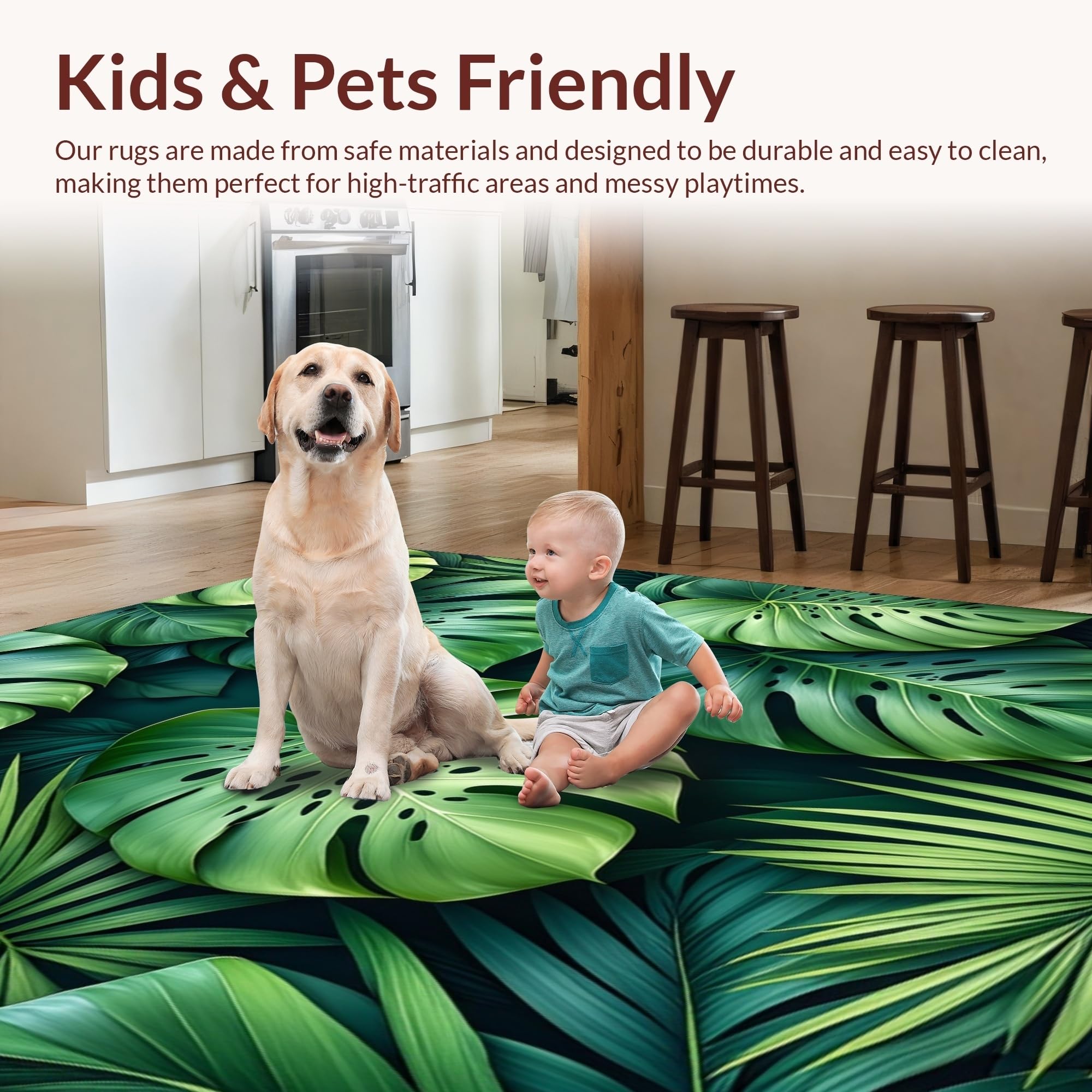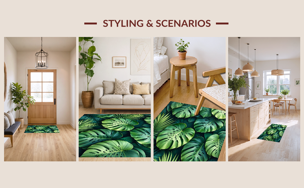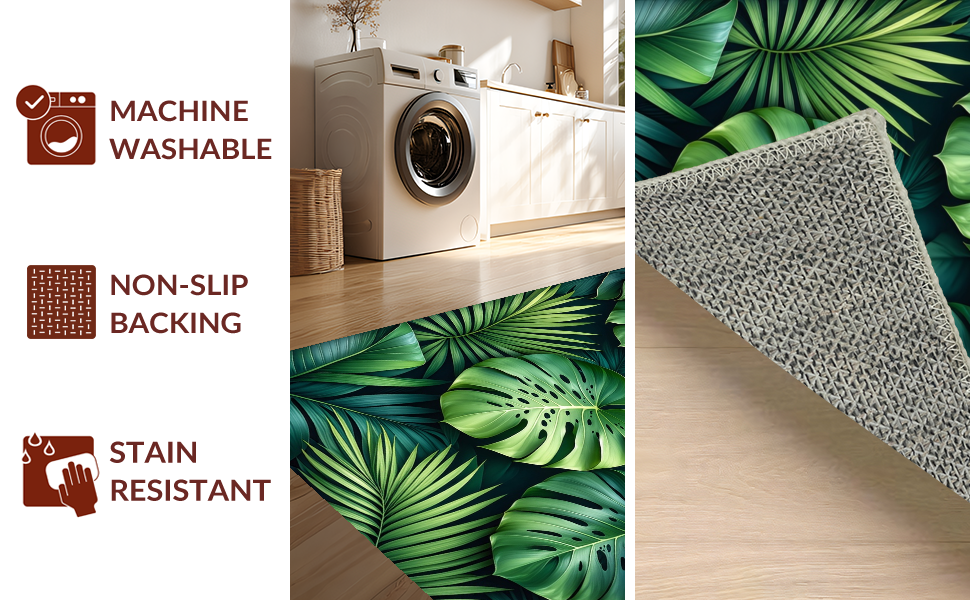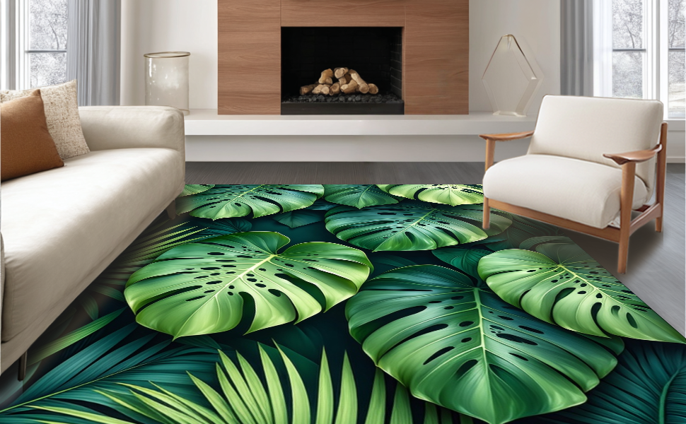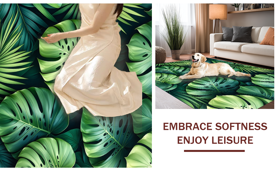 Ultra Soft Area Rug, Non Slip, Stain Resistant, Washable Area Rugs for Living Room, Bedroom, Cozy Organic Leaf Arrangement(Green) Overview: