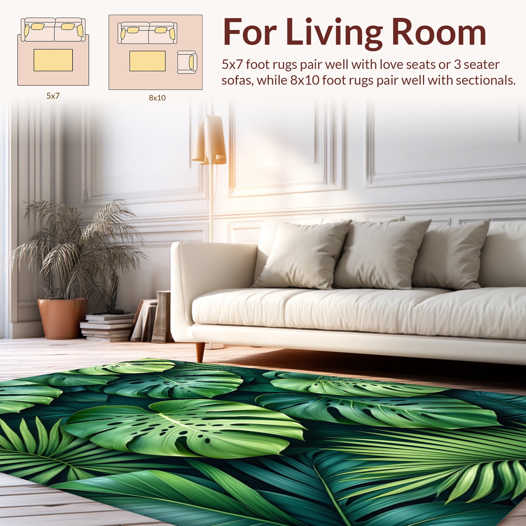 Flatwoven High Traffic Area Rug, Leaf Arrangement, Non Slip, Stain Resistant, Washable Area Rugs for Living Room, Bedroom (Green) Overview: