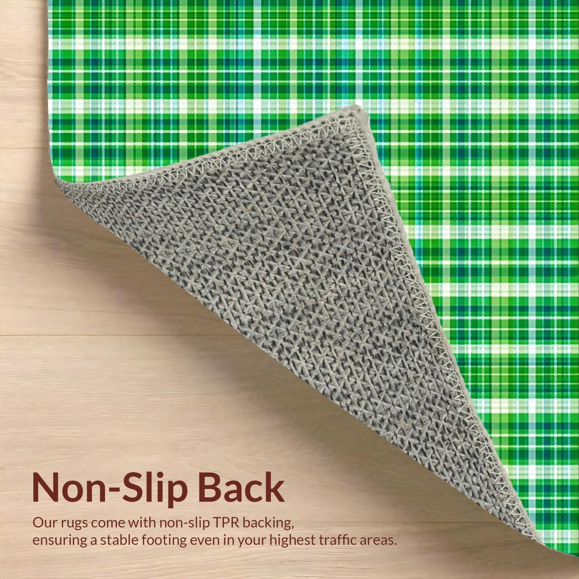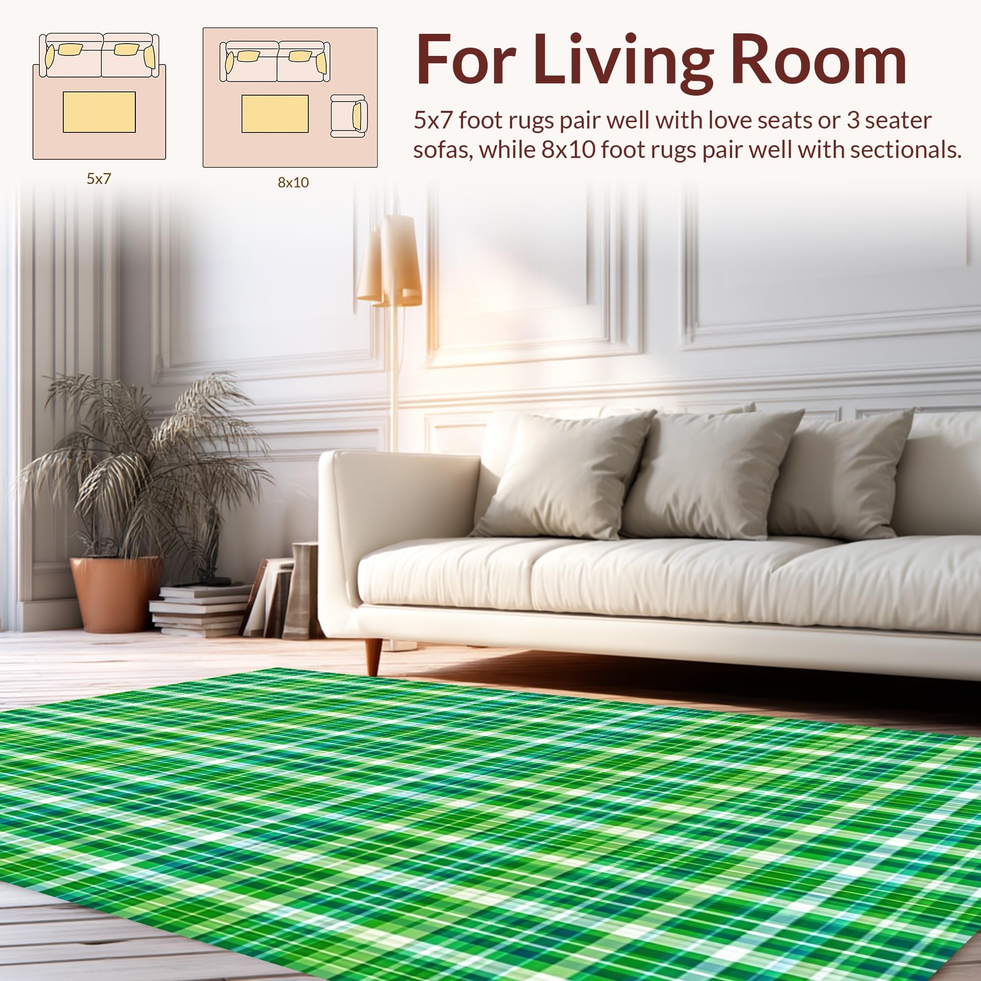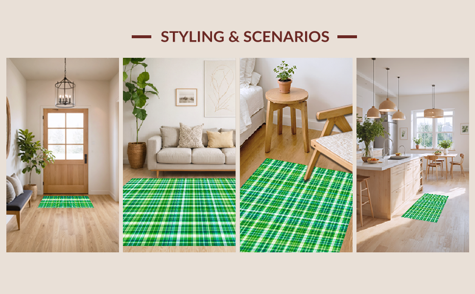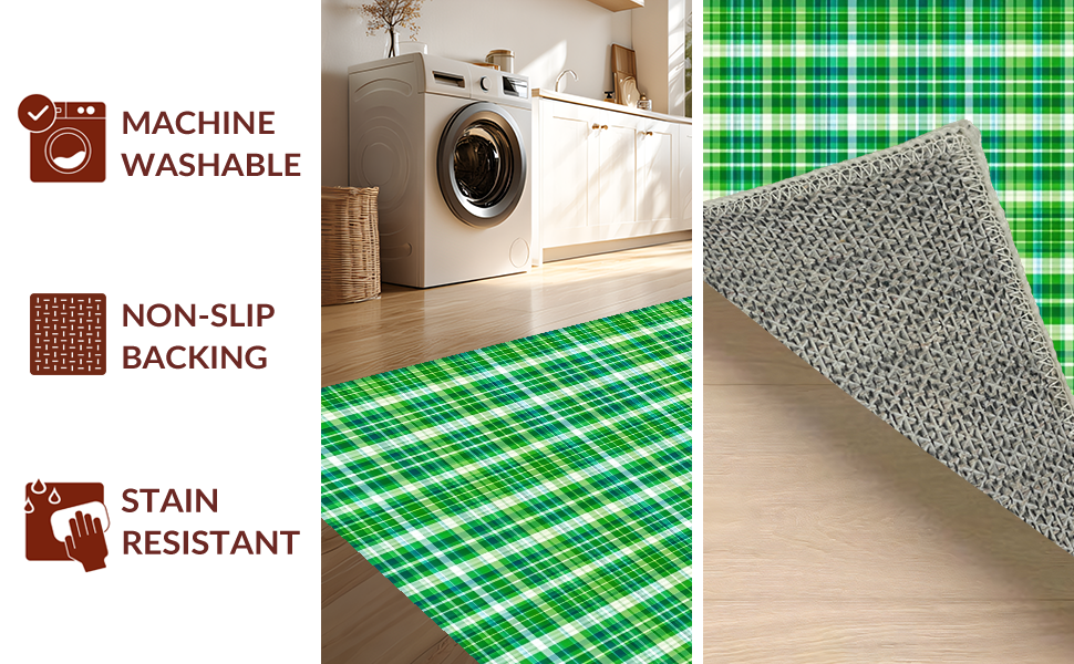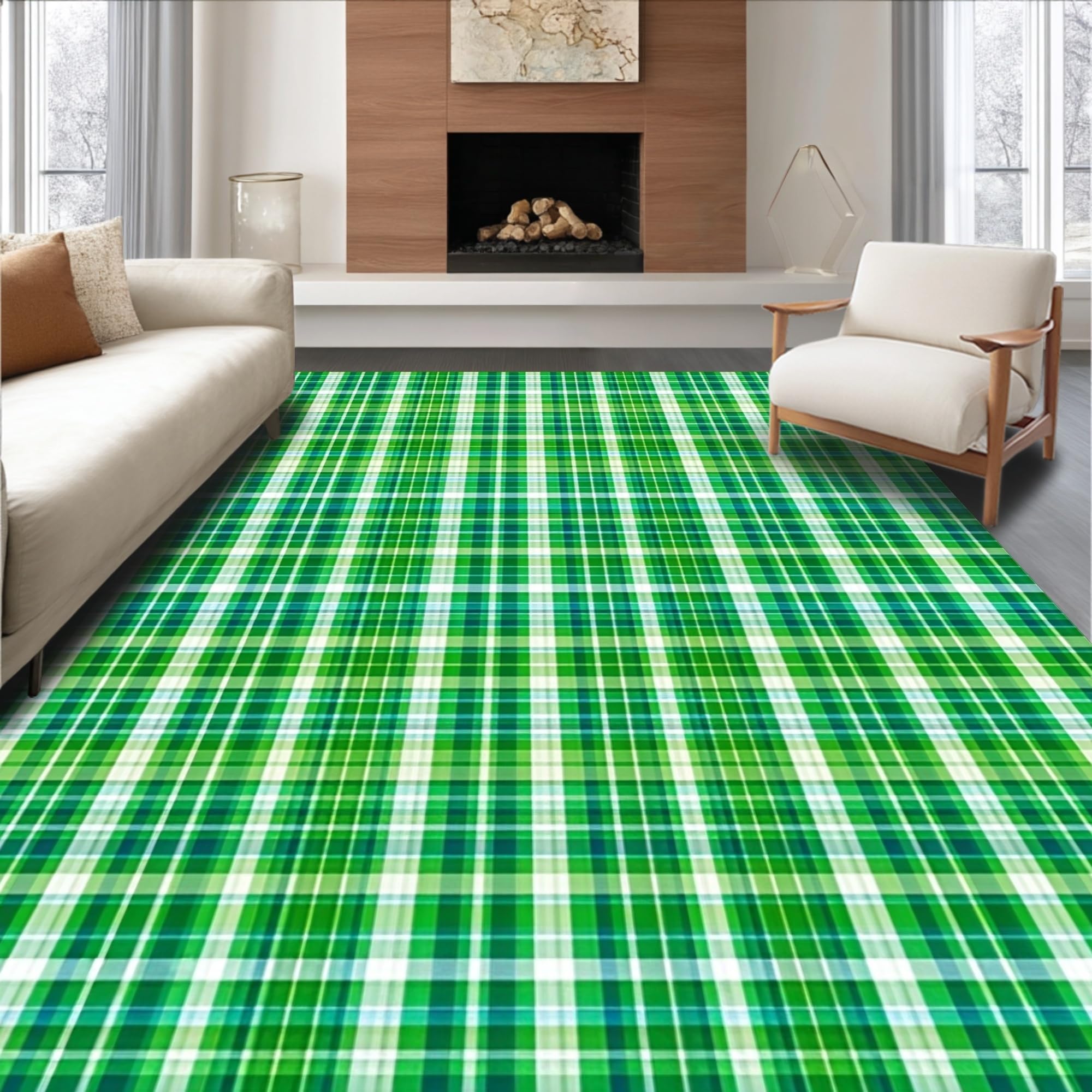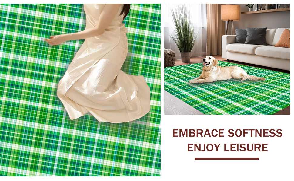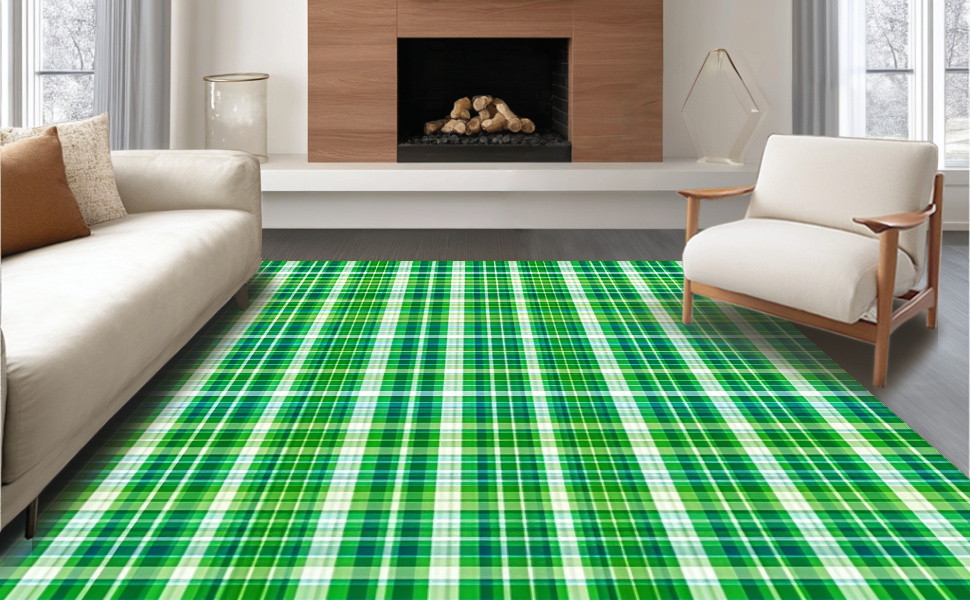 Ultra Soft Area Rug, Non Slip, Stain Resistant, Washable Area Rugs for Living Room, Bedroom, Cozy Outdoor Plaid Texture(Green) Overview: