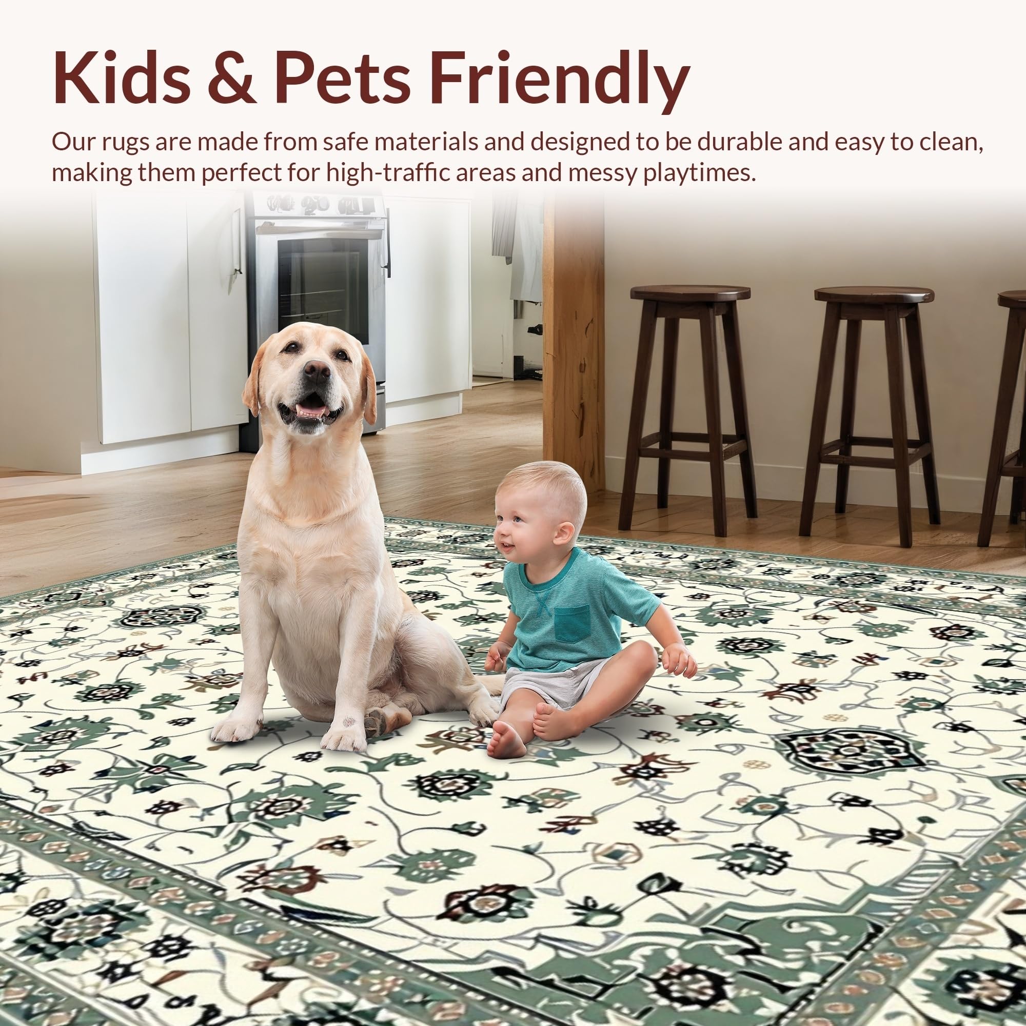 Ultra Soft Area Rug, Non Slip, Stain Resistant, Washable Area Rugs for Living Room, Bedroom, Cozy Pastel Floral Arrangement(Ivory) Overview: