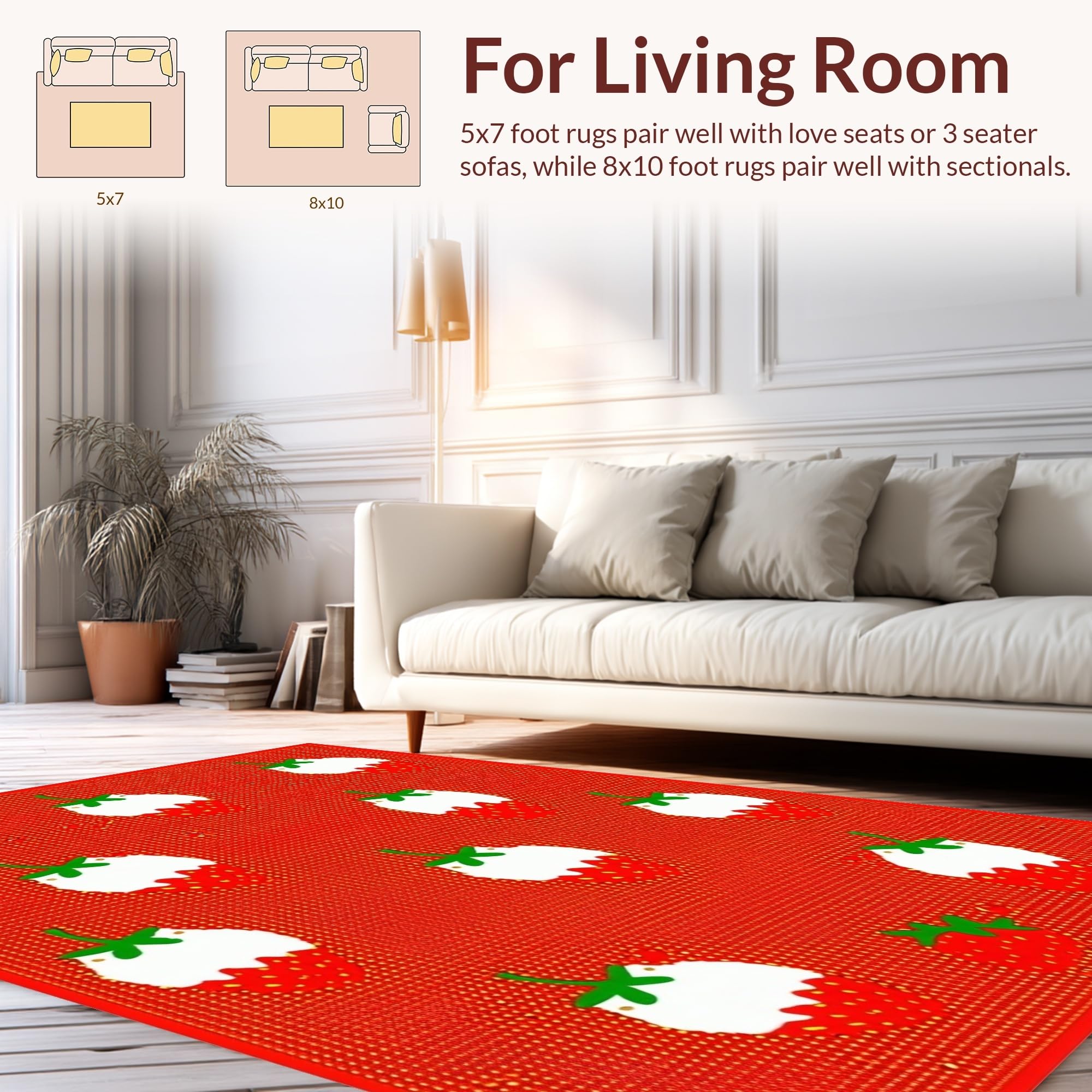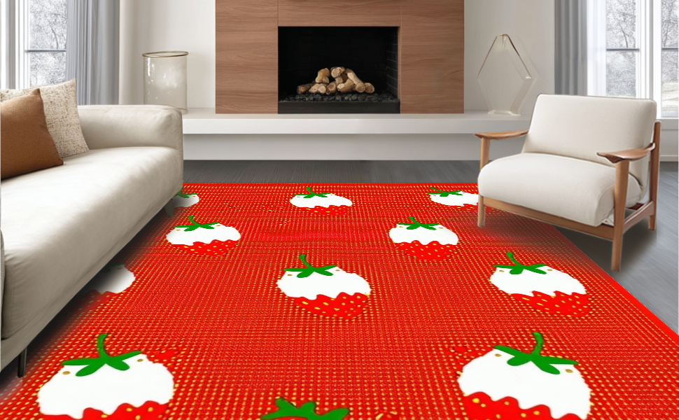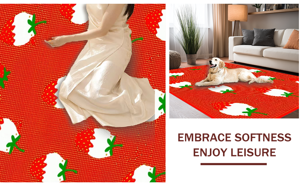 Ultra Soft Area Rug, Non Slip, Stain Resistant, Washable Area Rugs for Living Room, Bedroom, Cozy Playful Nature Imagery(Red) Overview: