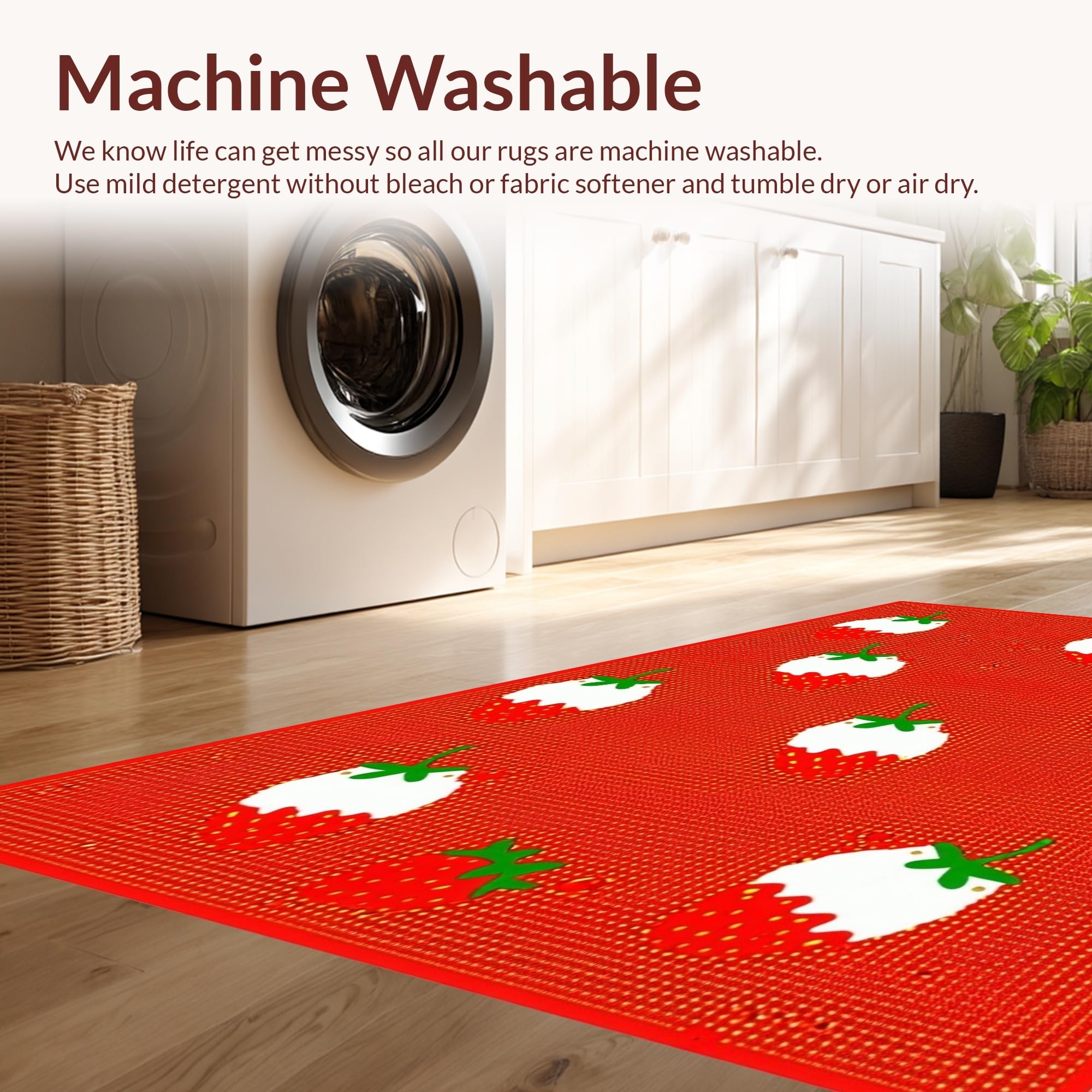 - Machine Washable: Our rugs can be easily thrown in the wash machine.