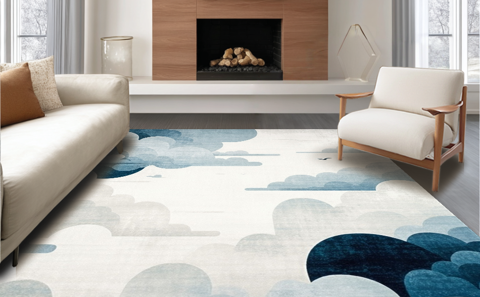 Ultra Soft Area Rug, Non Slip, Stain Resistant, Washable Area Rugs for Living Room, Bedroom, Cozy Plush Modern Organic Shape(Gray) Overview: