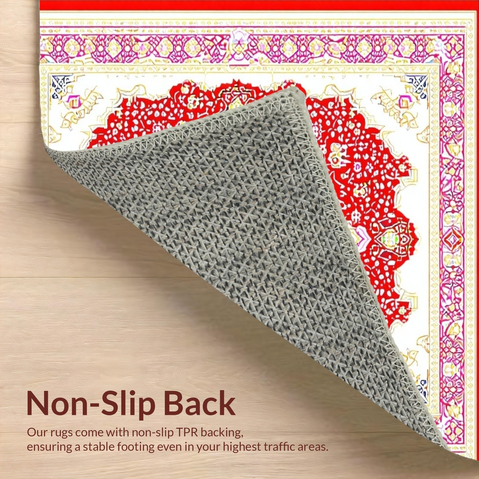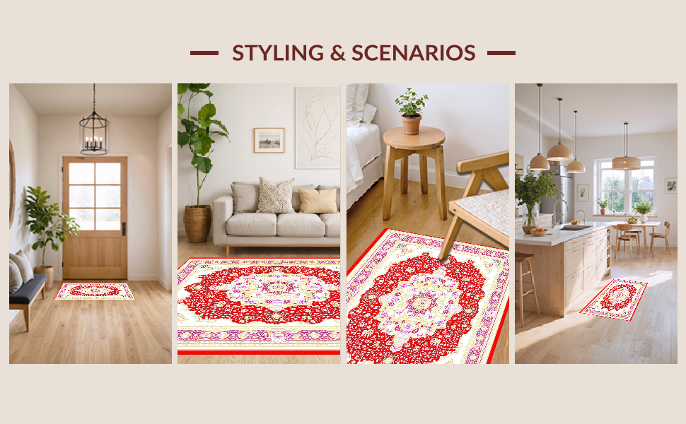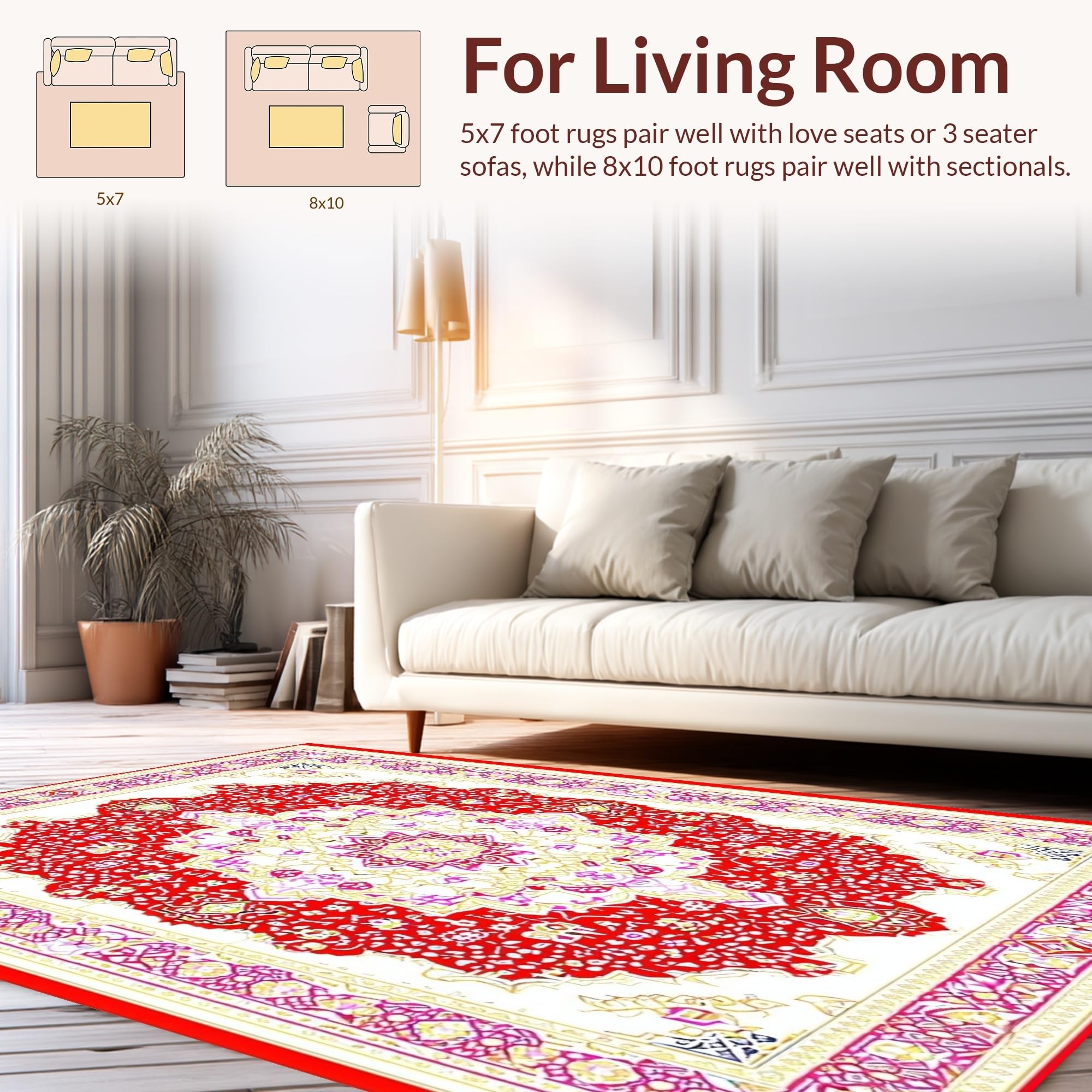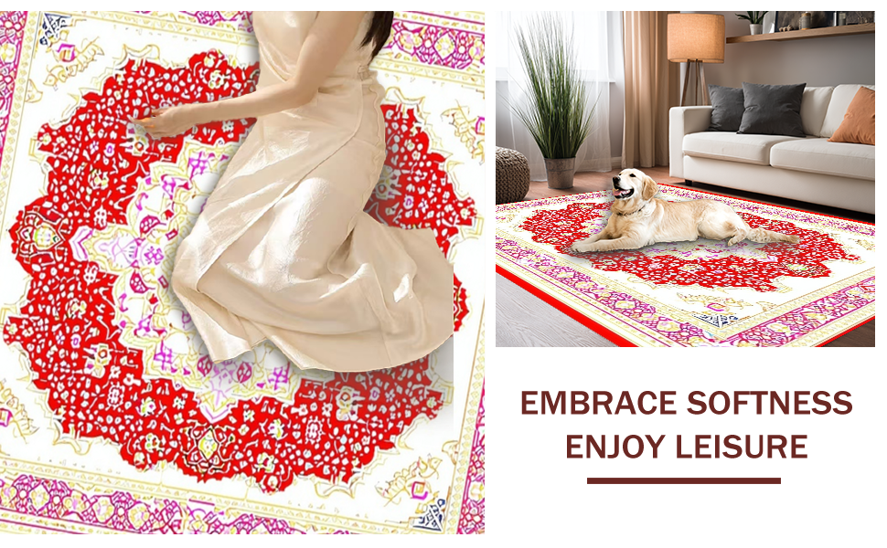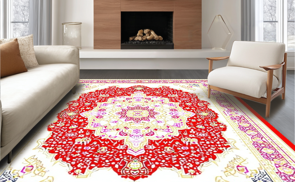 Ultra Soft Area Rug, Non Slip, Stain Resistant, Washable Area Rugs for Living Room, Bedroom, Cozy Red Pink Symmetrical Arrangement(Red) Overview: