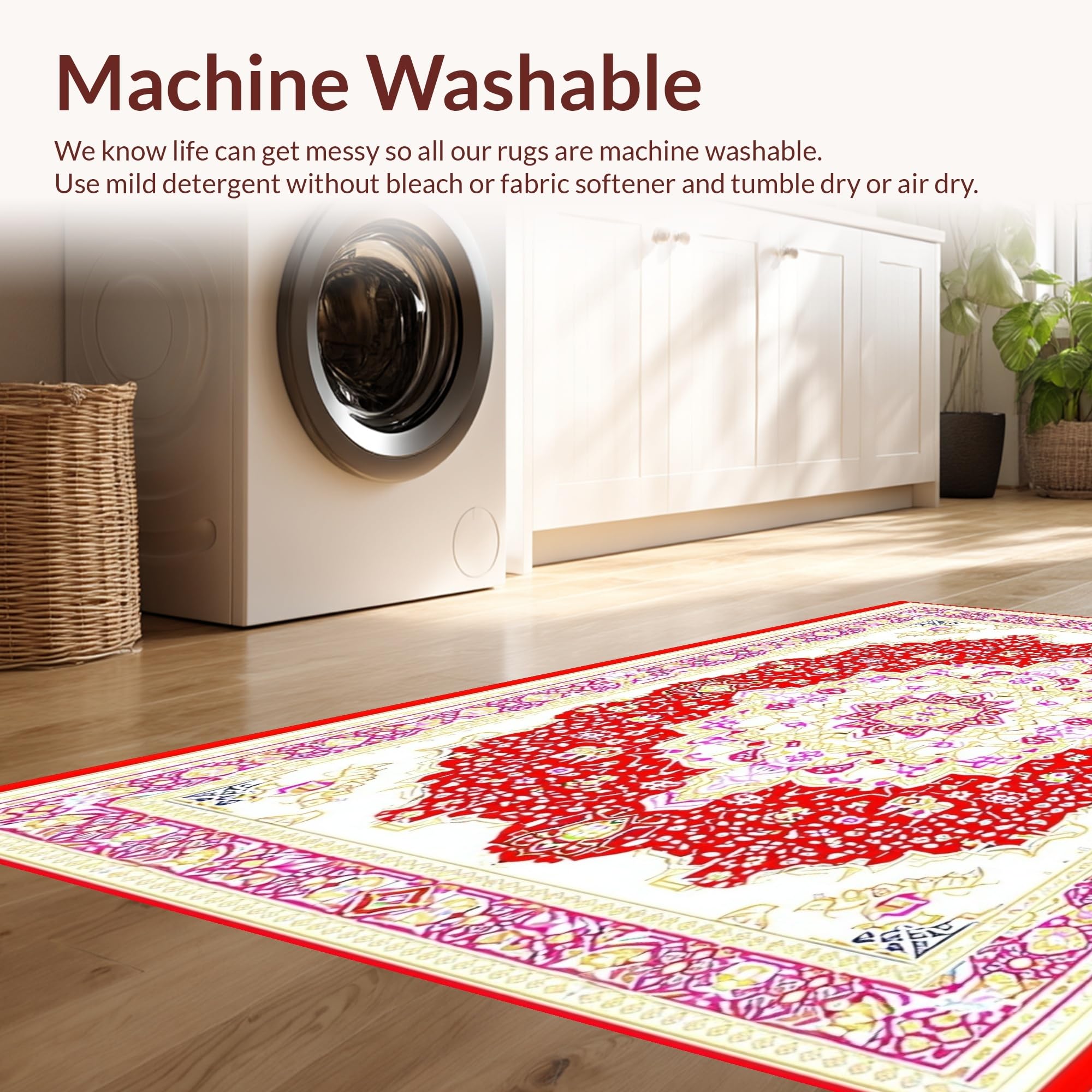 - Machine Washable: Our rugs can be easily thrown in the wash machine.