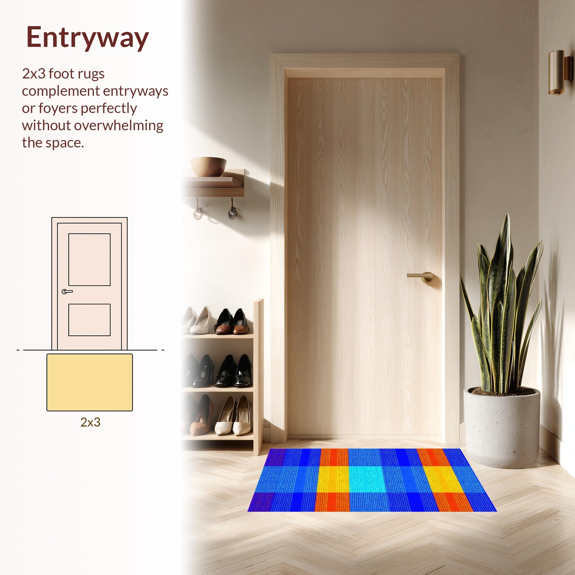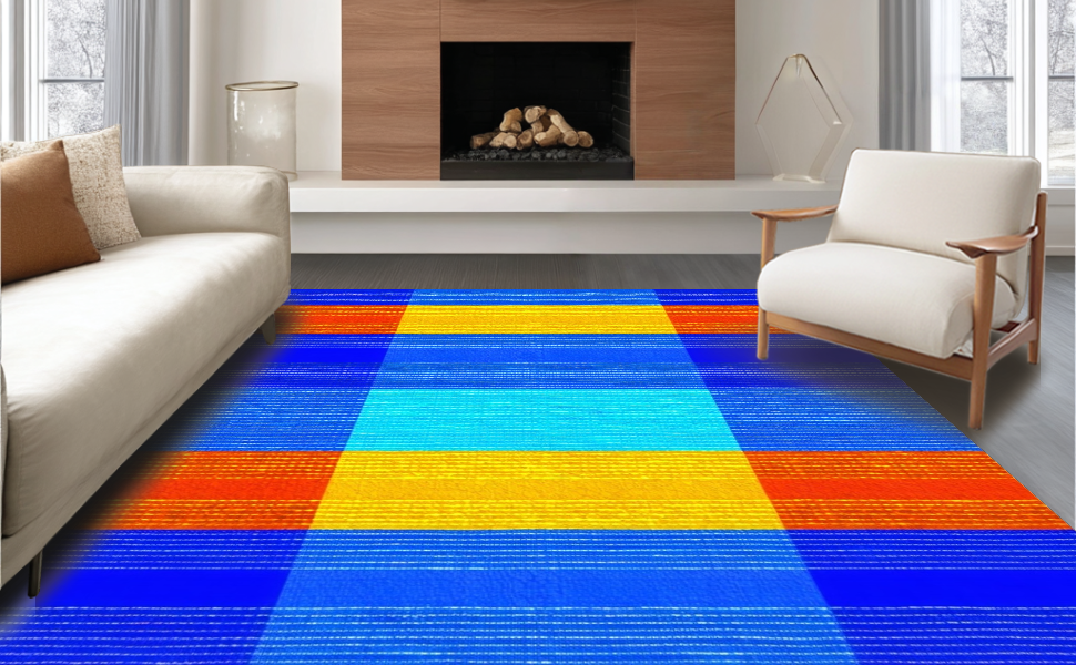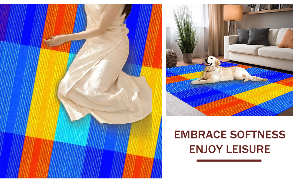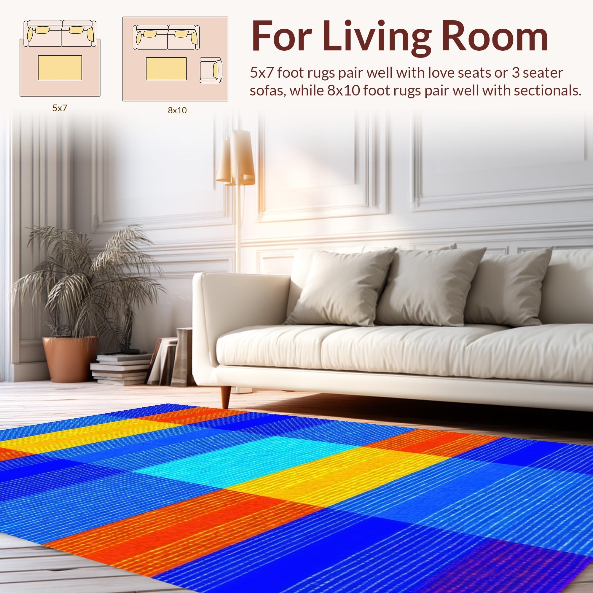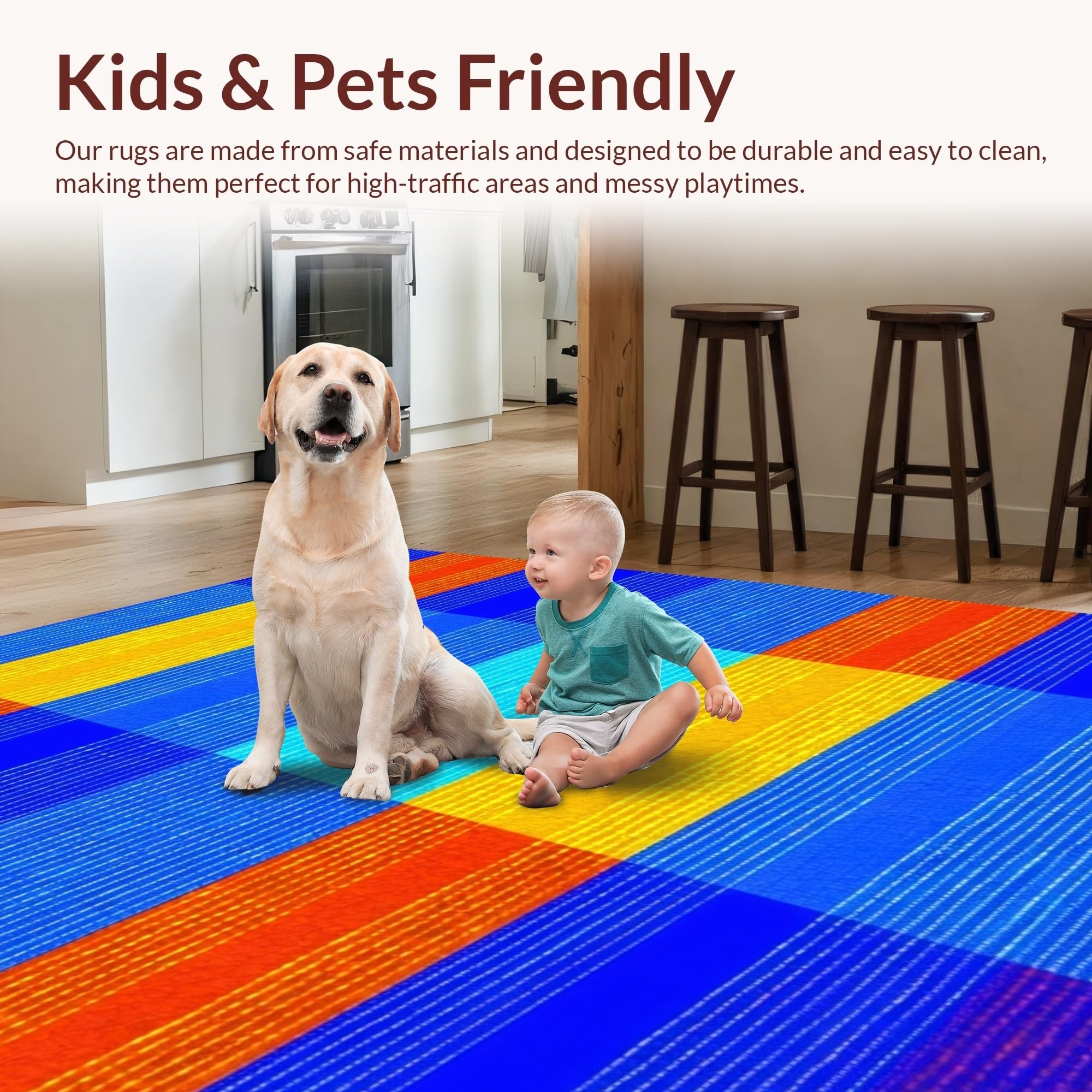 Ultra Soft Area Rug, Non Slip, Stain Resistant, Washable Area Rugs for Living Room, Bedroom, Cozy Retro Lattice Design(Blue) Overview: