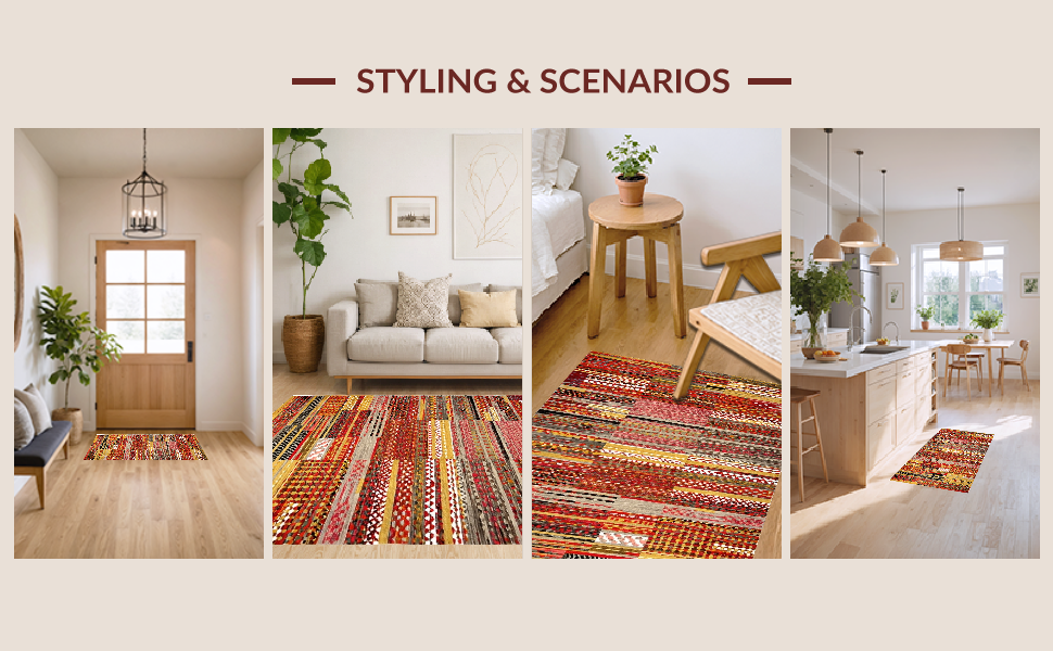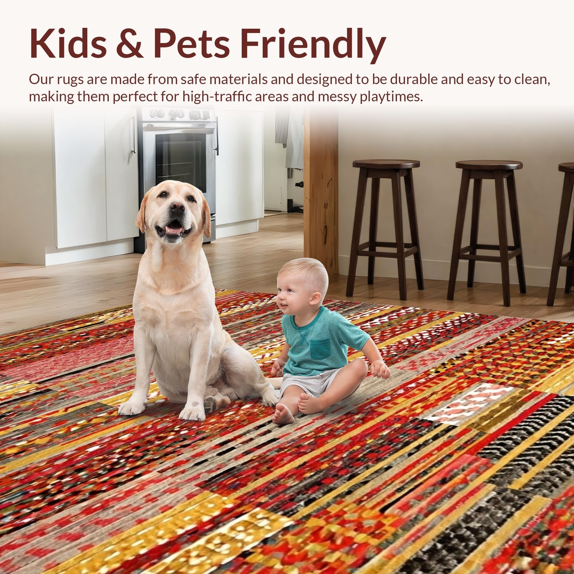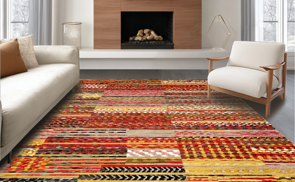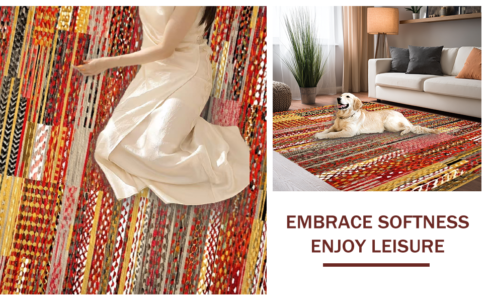 Ultra Soft Area Rug, Non Slip, Stain Resistant, Washable Area Rugs for Living Room, Bedroom, Cozy Reversible Farmhouse Charm(Red) Overview: