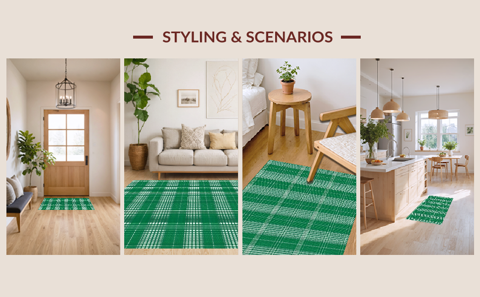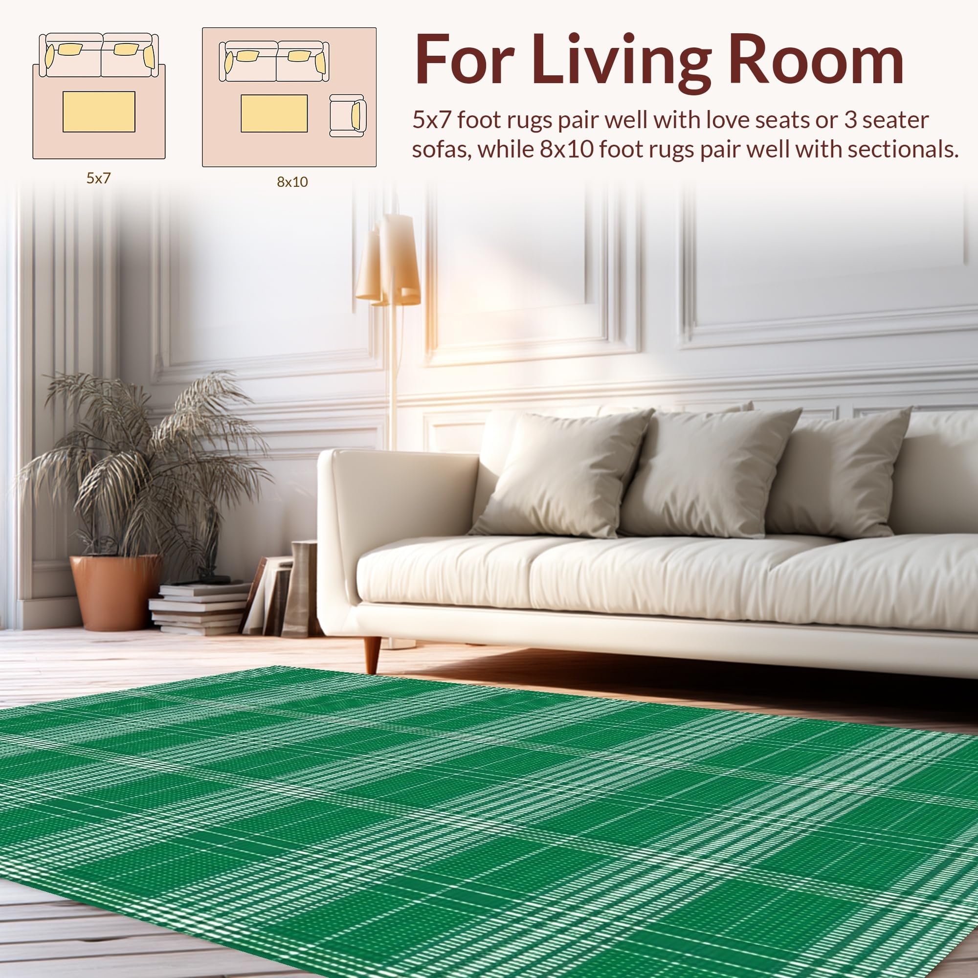 Ultra Soft Area Rug, Non Slip, Stain Resistant, Washable Area Rugs for Living Room, Bedroom, Cozy Reversible Geometric Charm(Green) Overview: