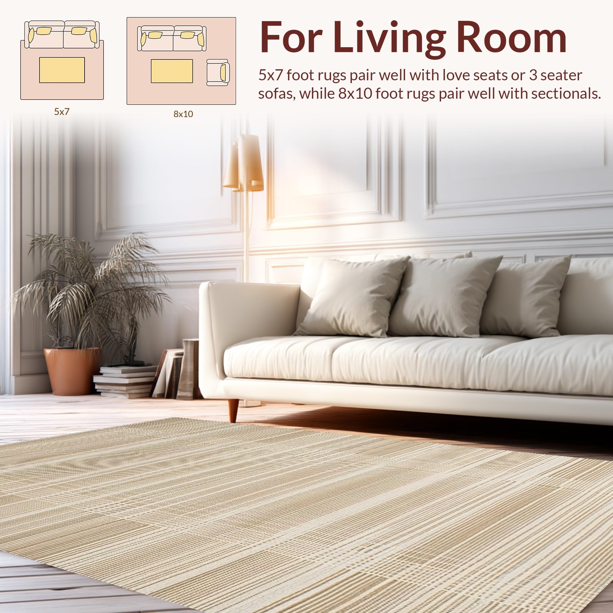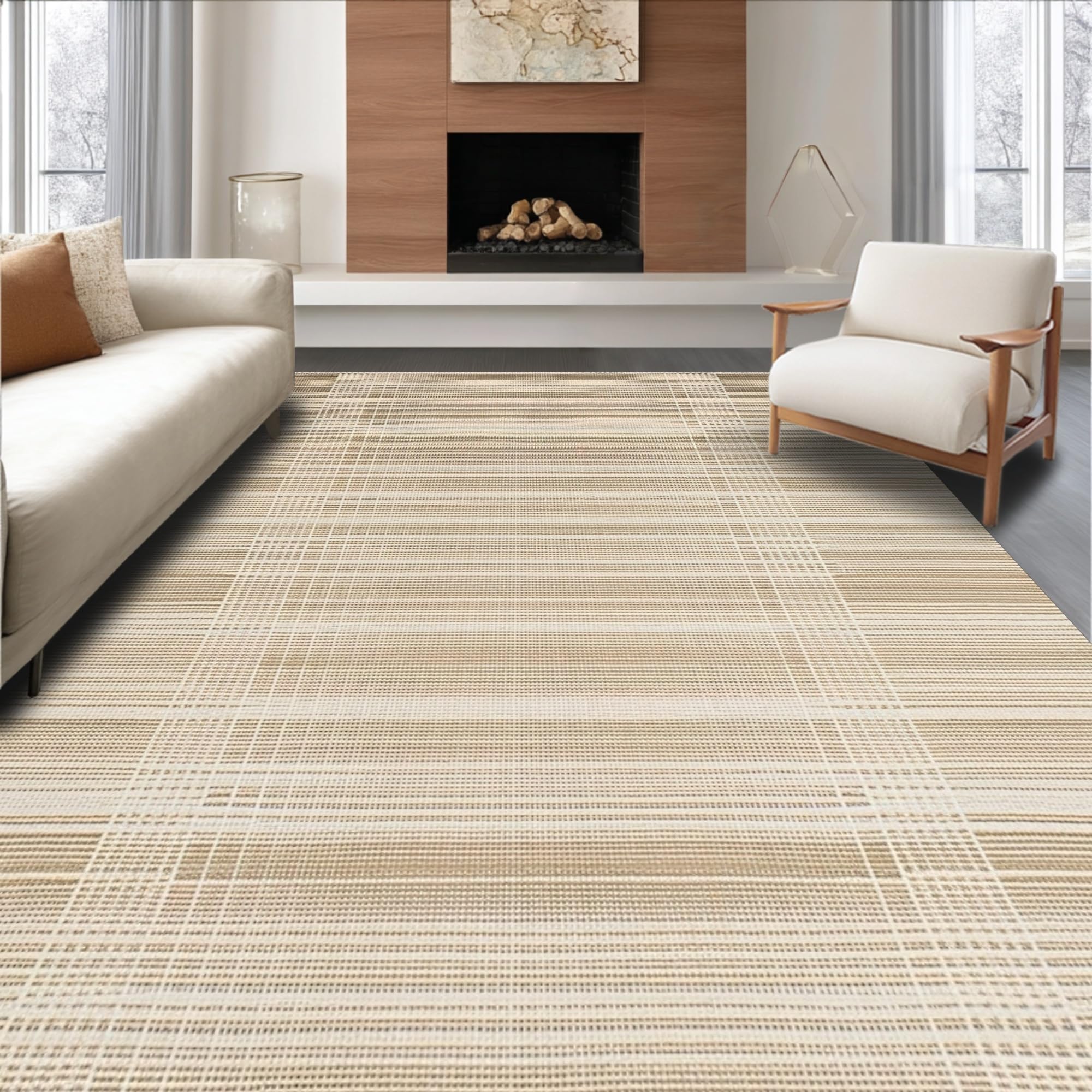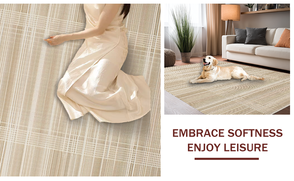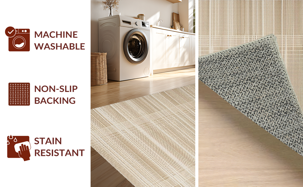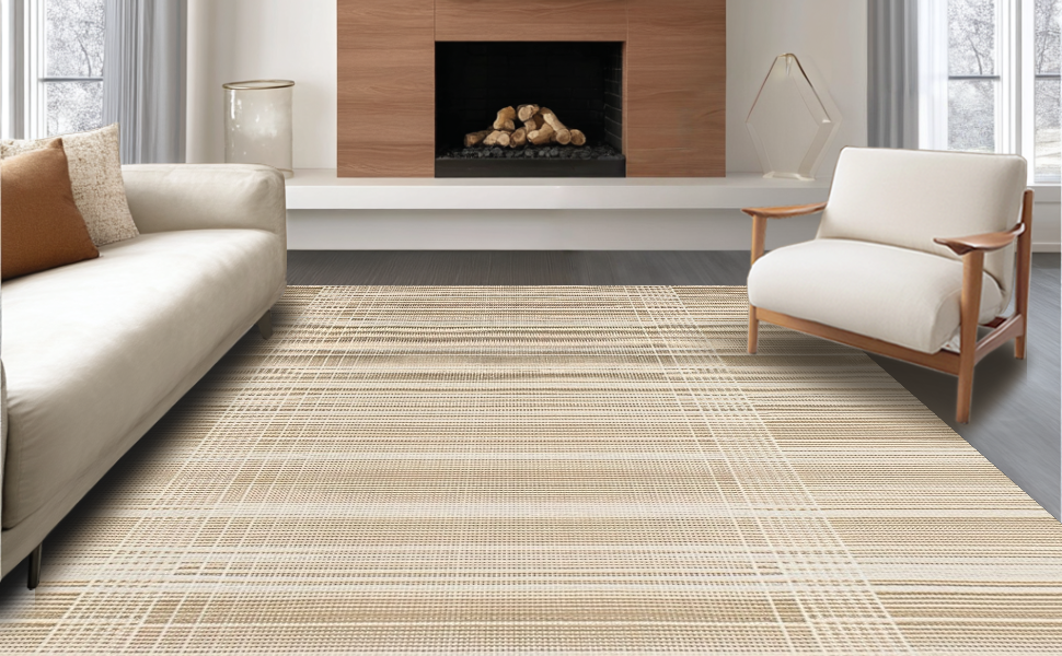 Ultra Soft Area Rug, Non Slip, Stain Resistant, Washable Area Rugs for Living Room, Bedroom, Cozy Reversible Natural Fibers(Beige) Overview: