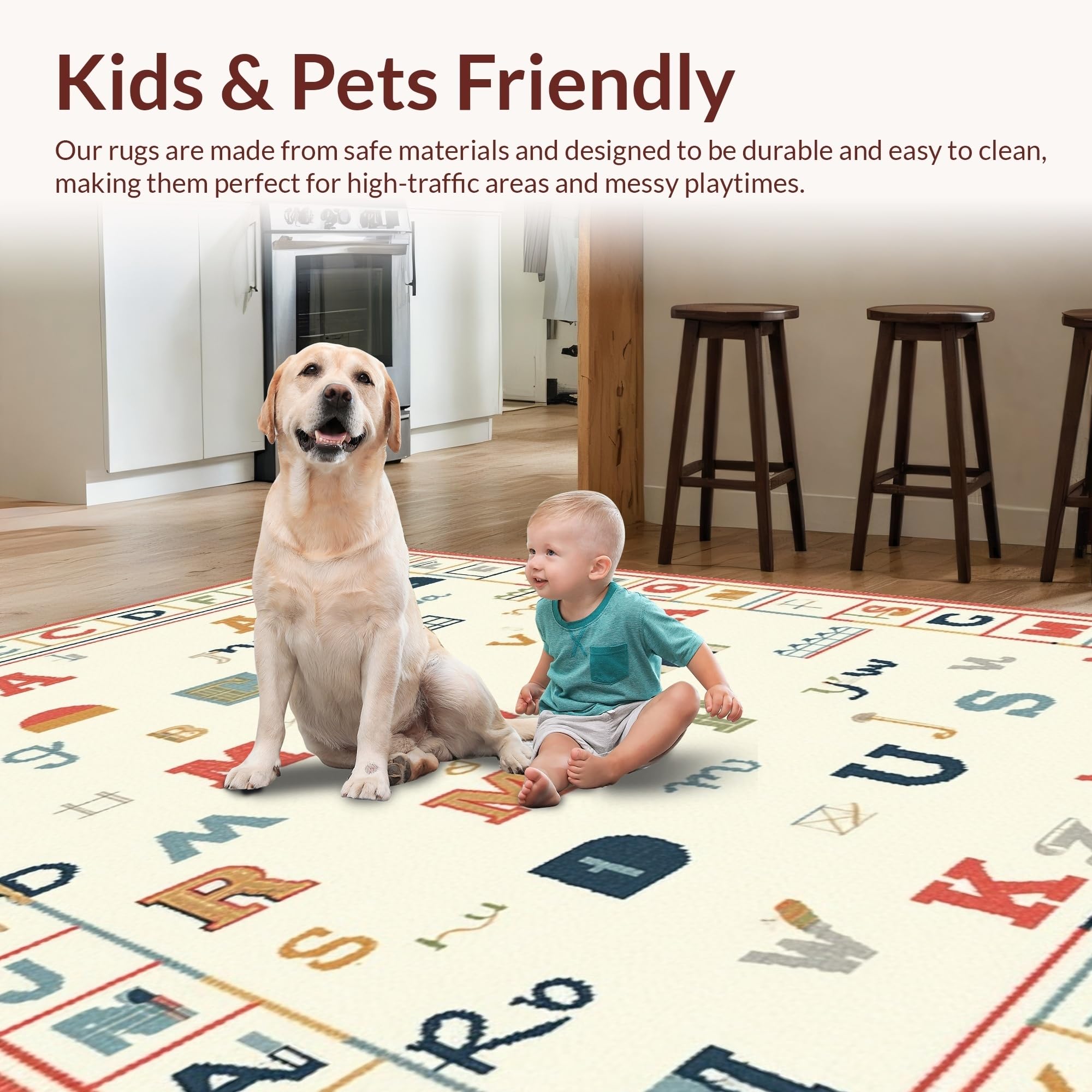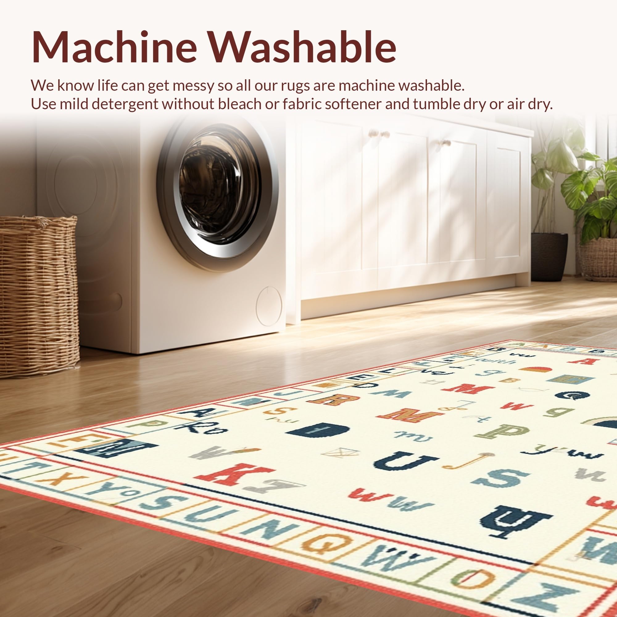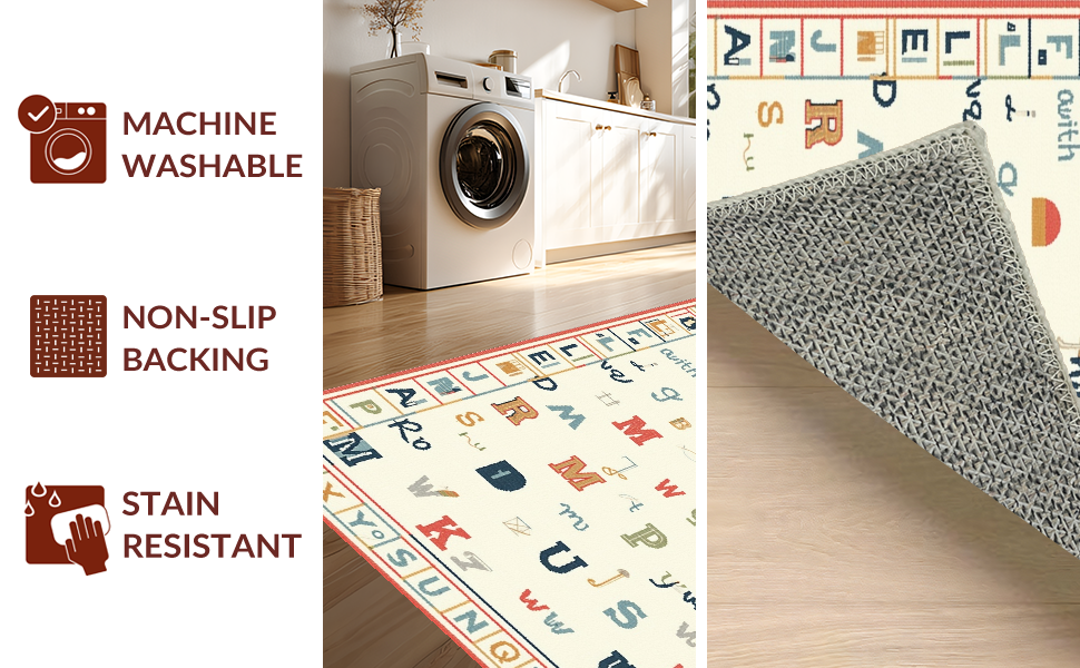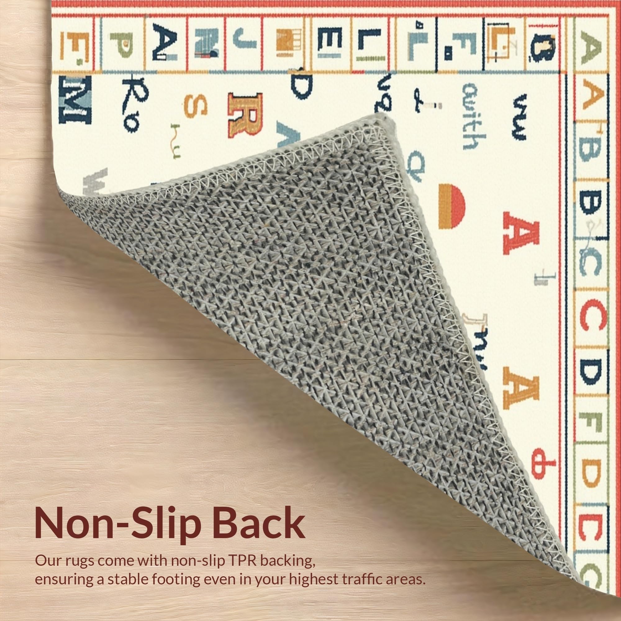 Ultra Soft Area Rug, Non Slip, Stain Resistant, Washable Area Rugs for Living Room, Bedroom, Cozy Round Learning Alphabet Decor(Beige) Overview: