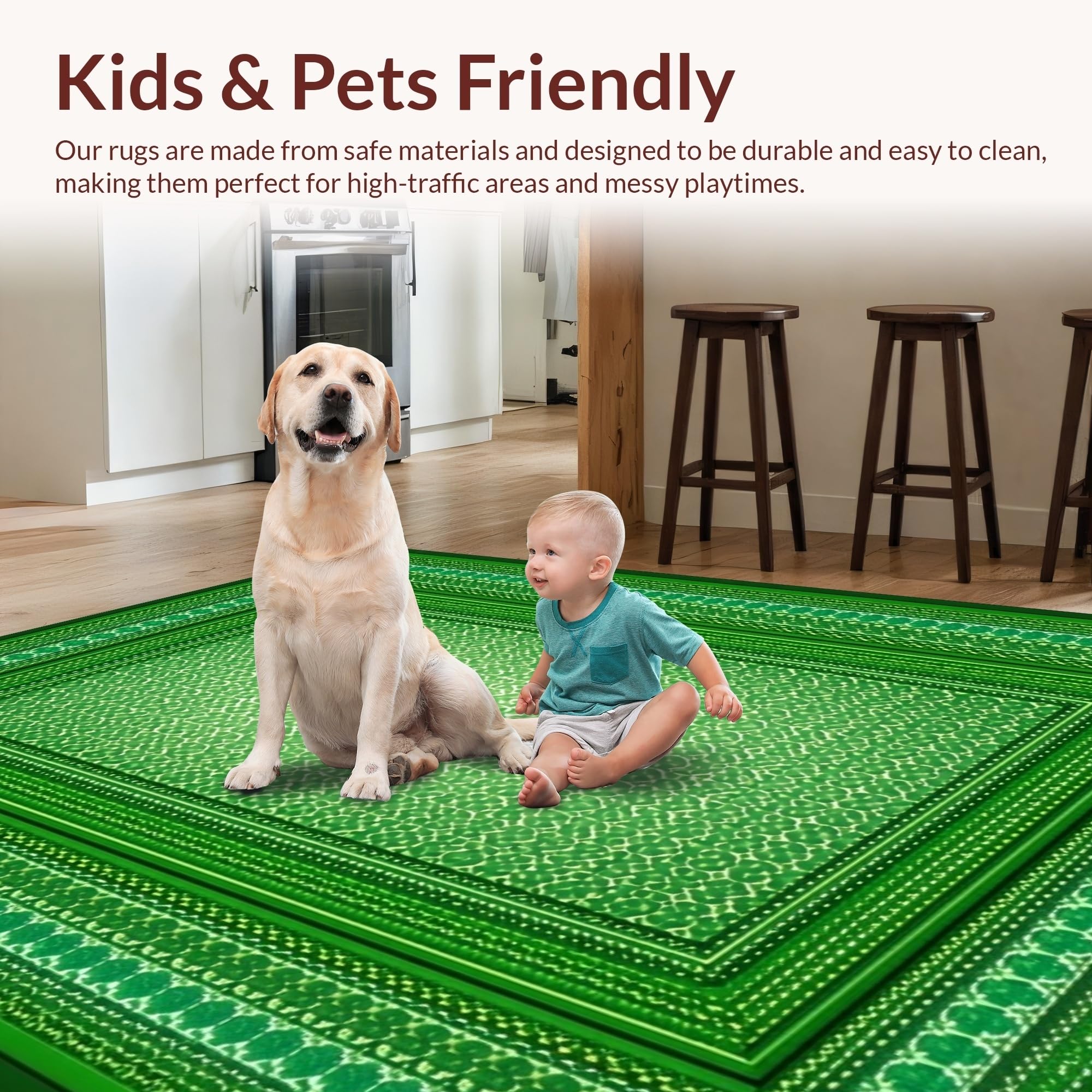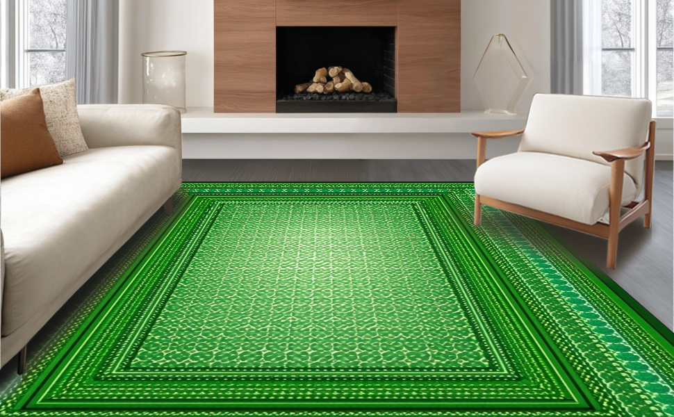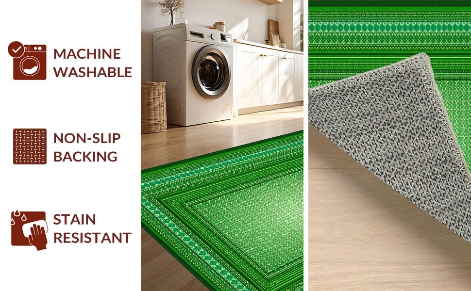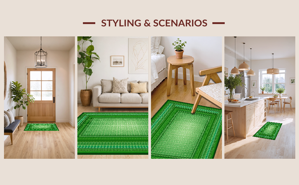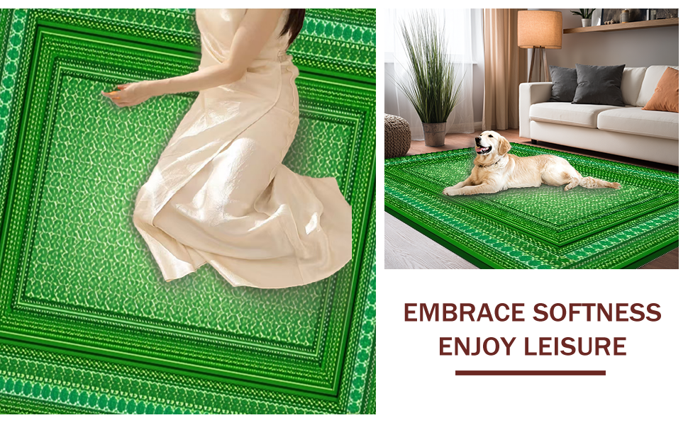 Ultra Soft Area Rug, Non Slip, Stain Resistant, Washable Area Rugs for Living Room, Bedroom, Cozy Rustic Clover Visual(Green) Overview: