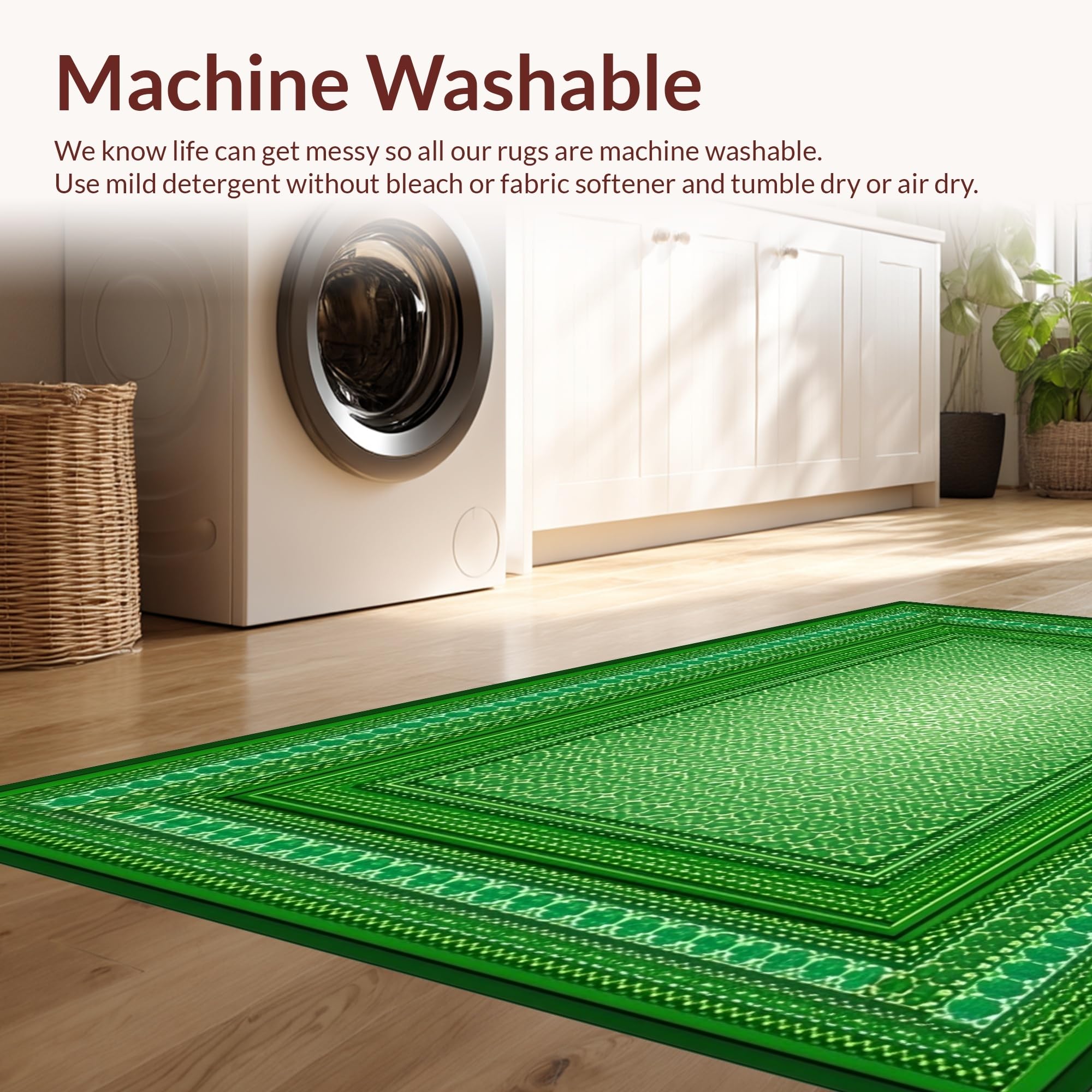 - Machine Washable: Our rugs can be easily thrown in the wash machine.