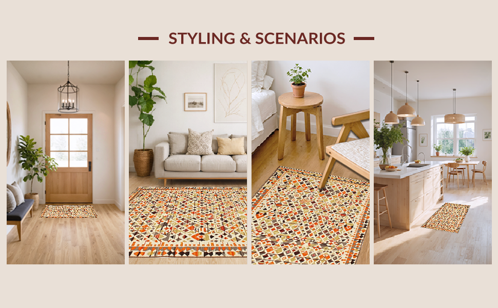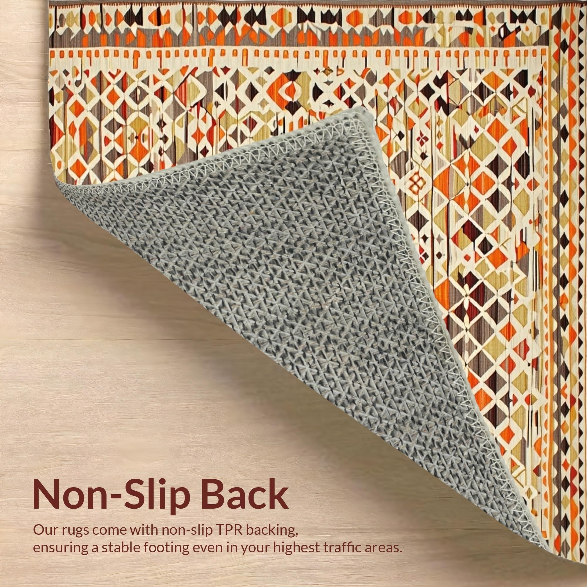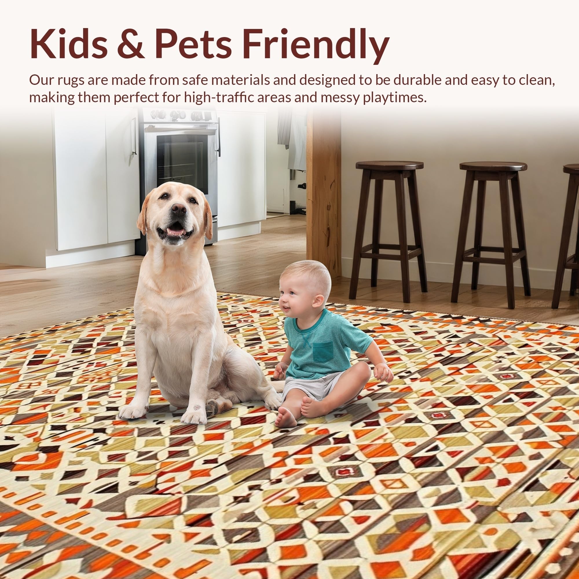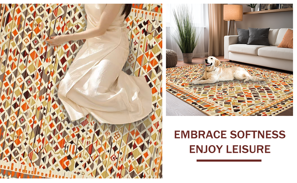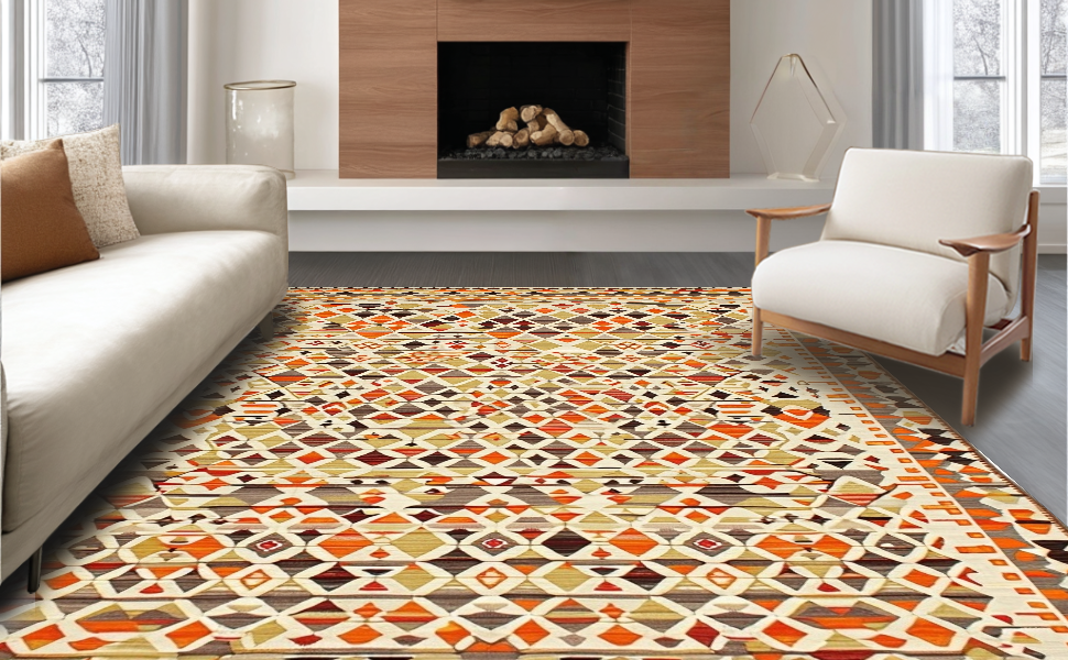 Ultra Soft Area Rug, Non Slip, Stain Resistant, Washable Area Rugs for Living Room, Bedroom, Cozy Rustic Diamond Motif(Beige) Overview: