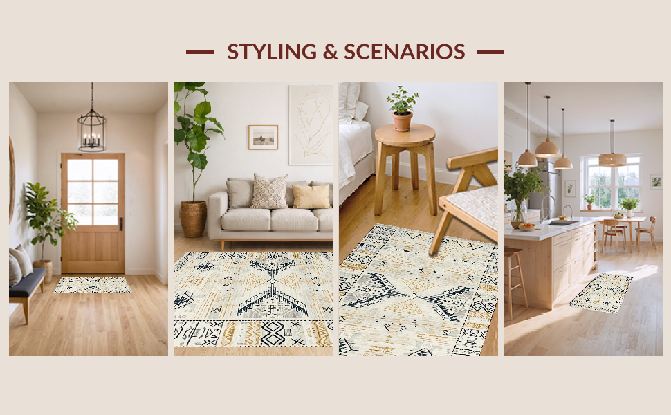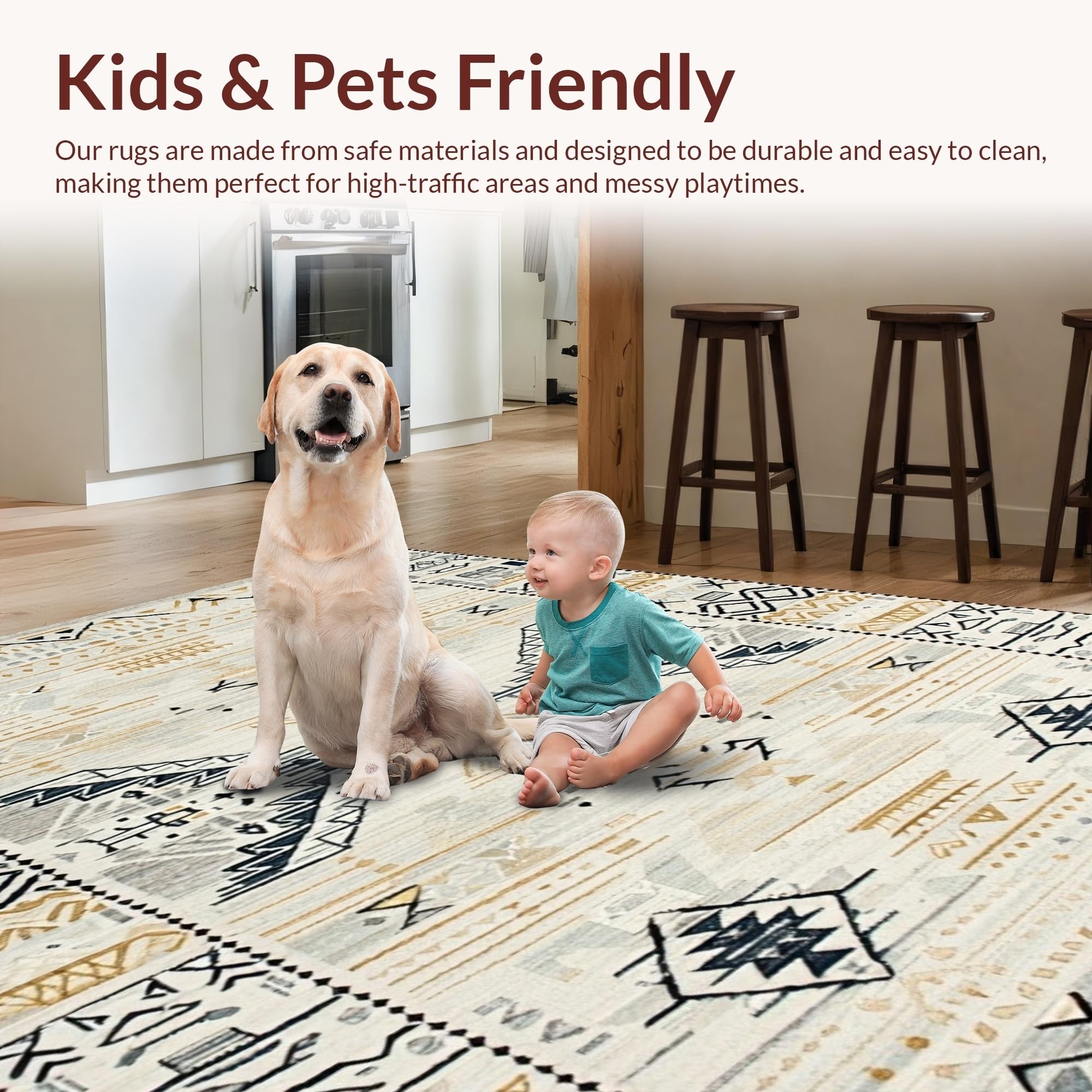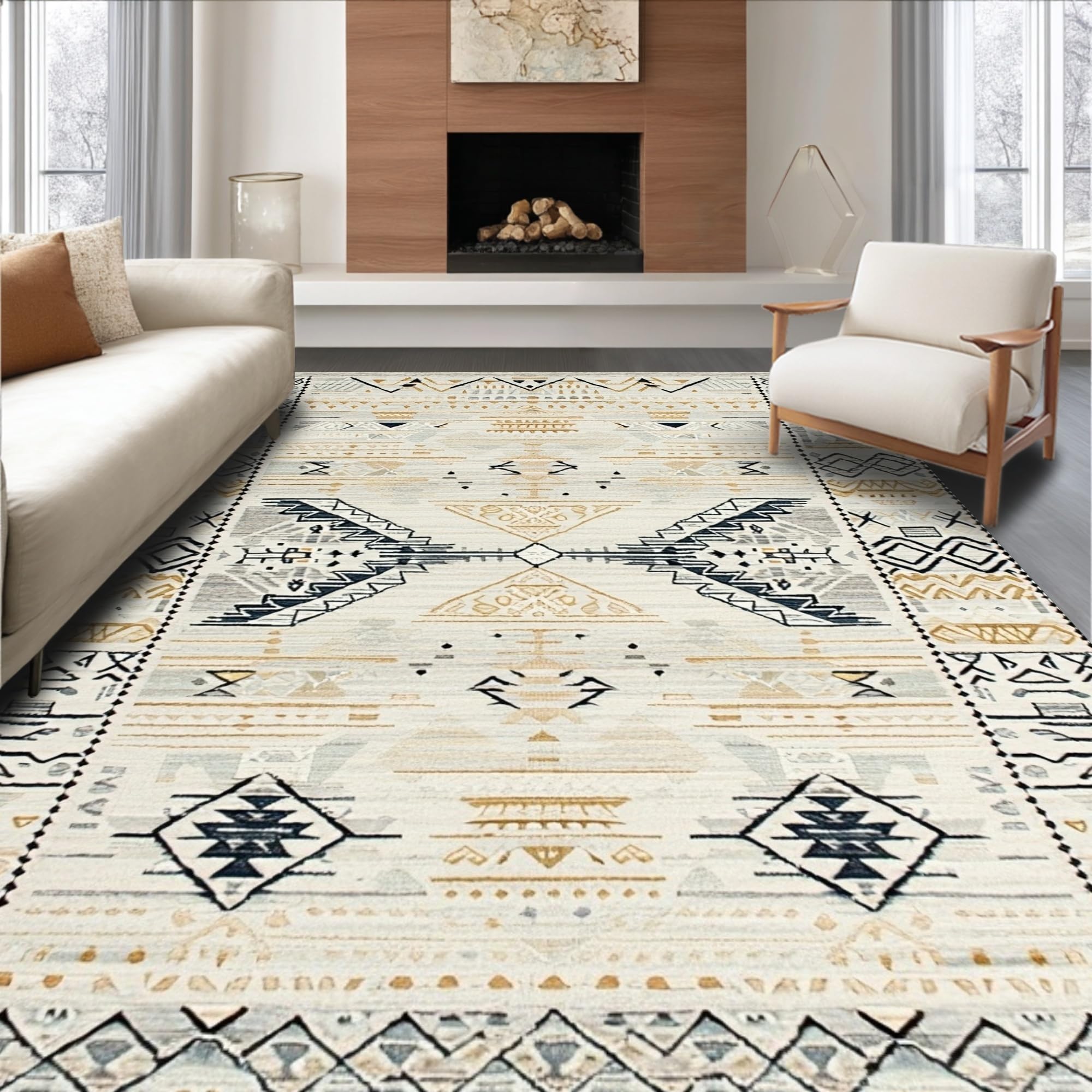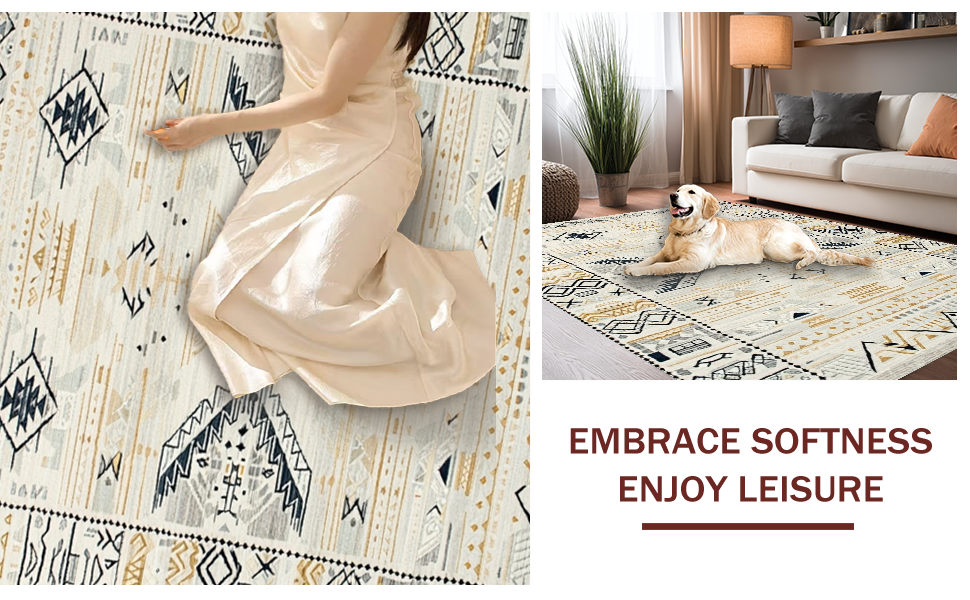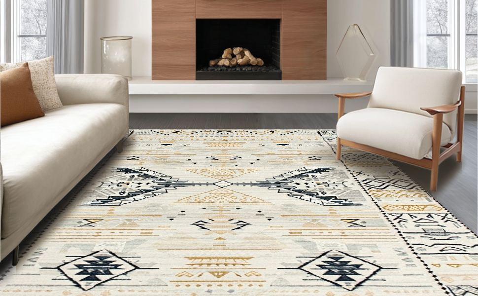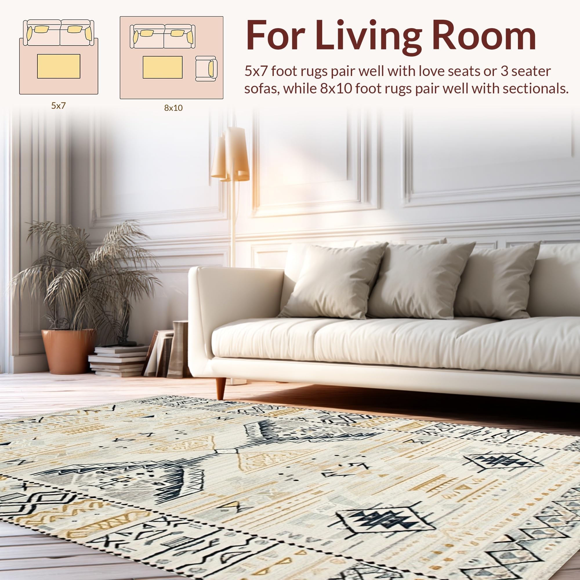 Ultra Soft Area Rug, Non Slip, Stain Resistant, Washable Area Rugs for Living Room, Bedroom, Cozy Rustic Fringe Detail(Beige) Overview: