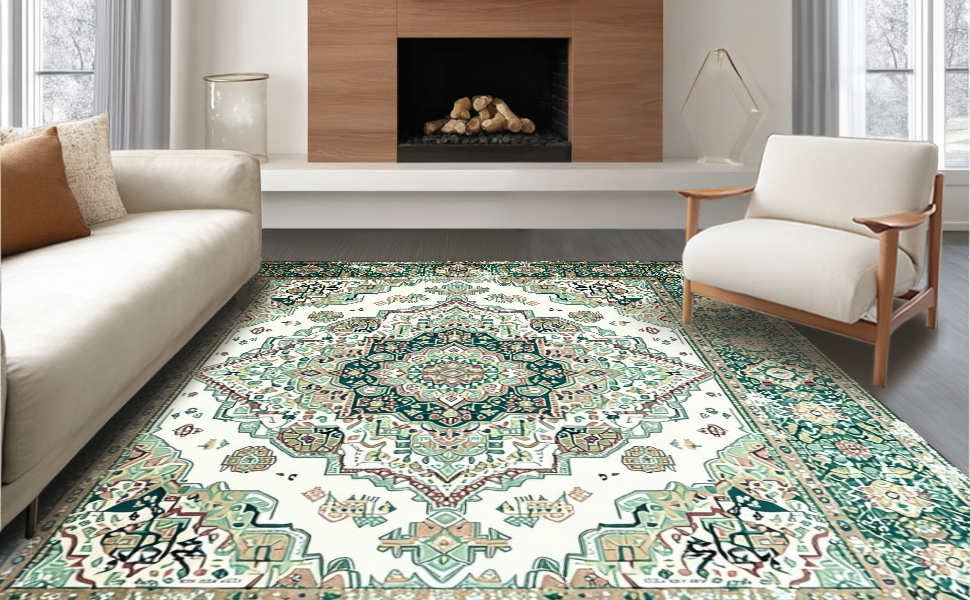 Ultra Soft Area Rug, Non Slip, Stain Resistant, Washable Area Rugs for Living Room, Bedroom, Cozy Rustic Geometric Textures(Ivory) Overview: