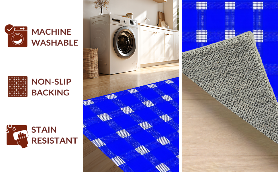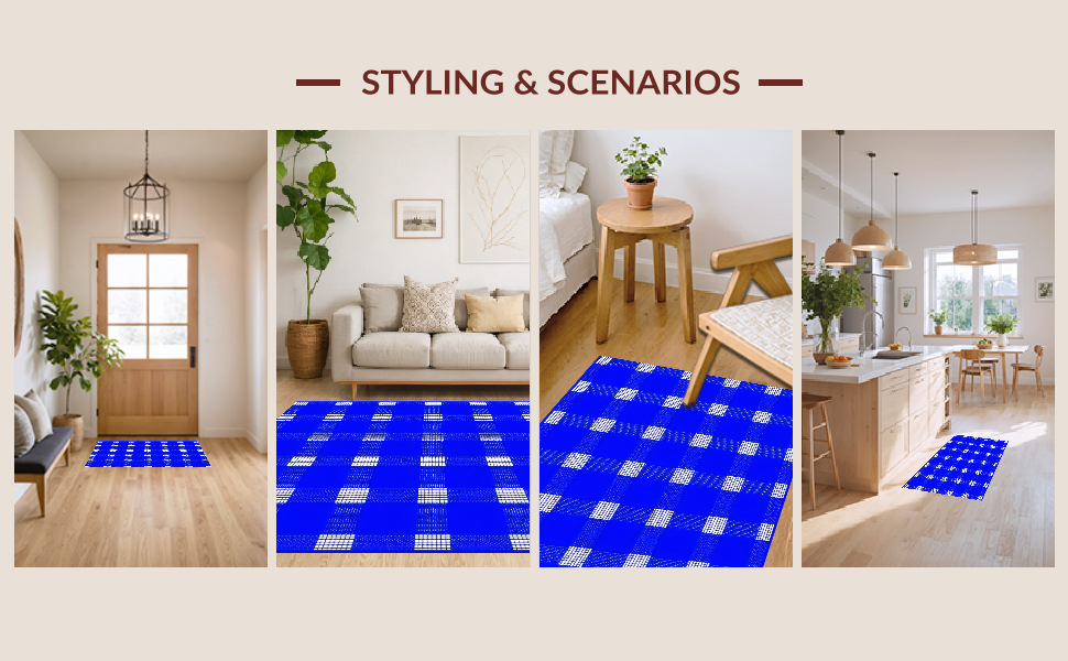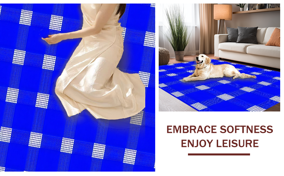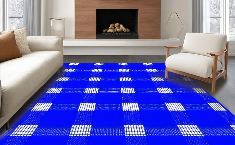 Ultra Soft Area Rug, Non Slip, Stain Resistant, Washable Area Rugs for Living Room, Bedroom, Cozy Rustic Plaid Visual Appeal(Blue) Overview: