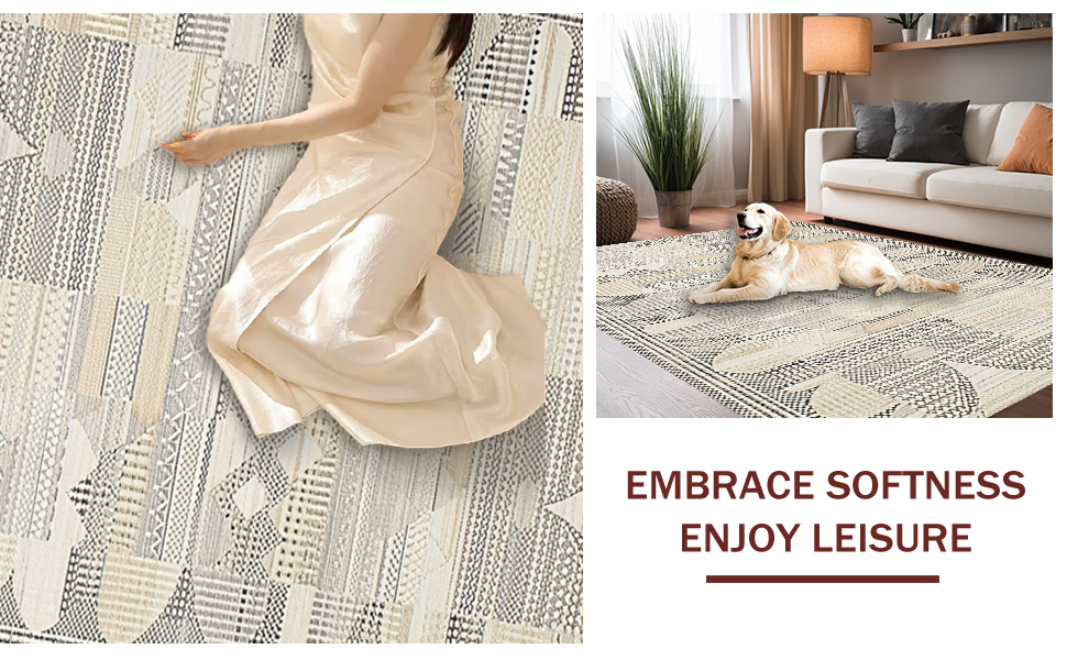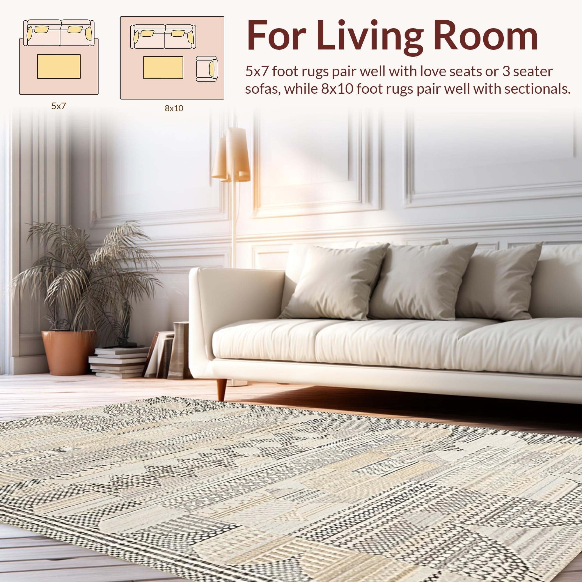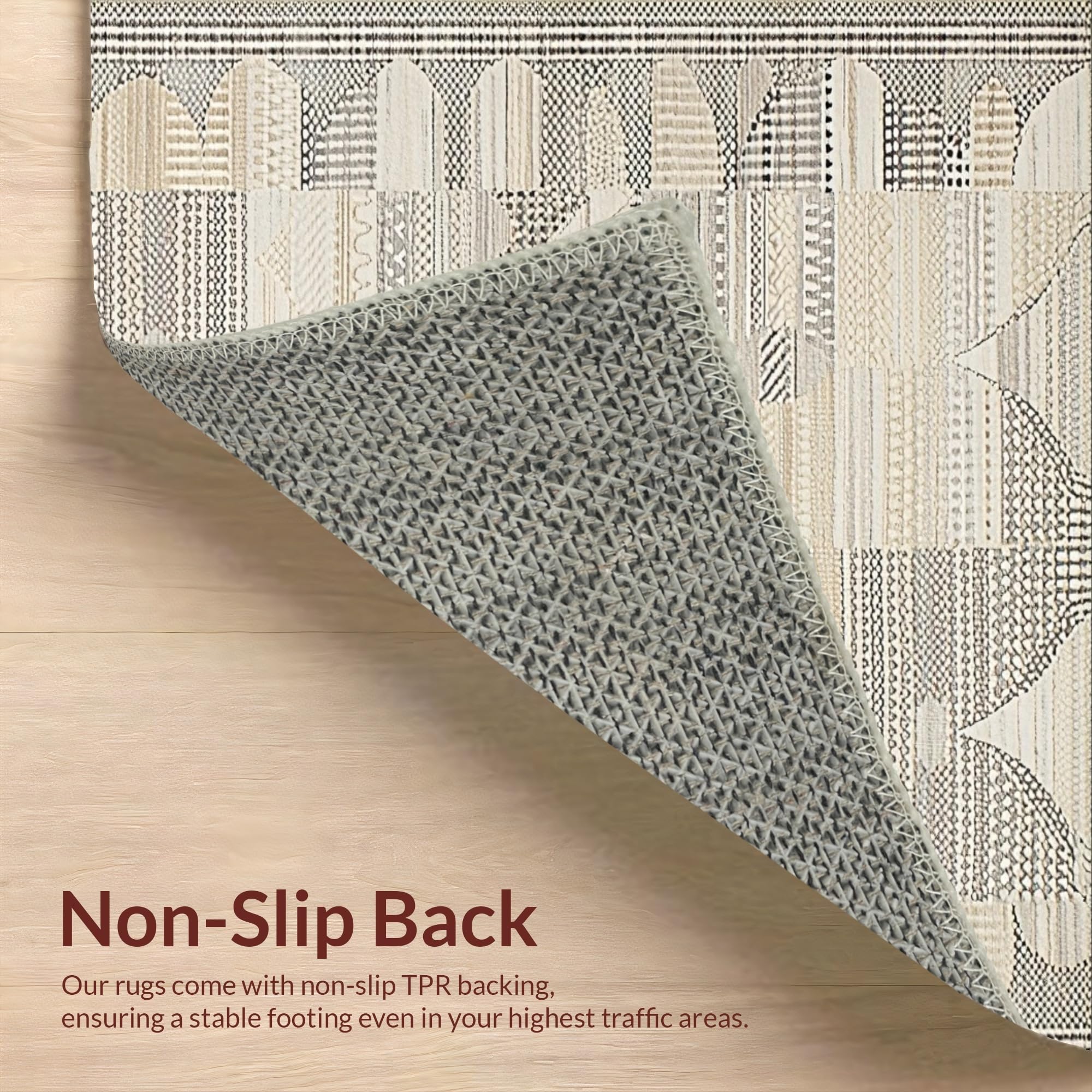 Ultra Soft Area Rug, Non Slip, Stain Resistant, Washable Area Rugs for Living Room, Bedroom, Cozy Rustic Scalloped Design(Beige) Overview: