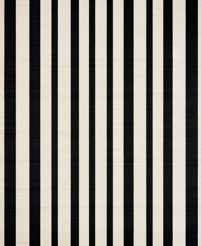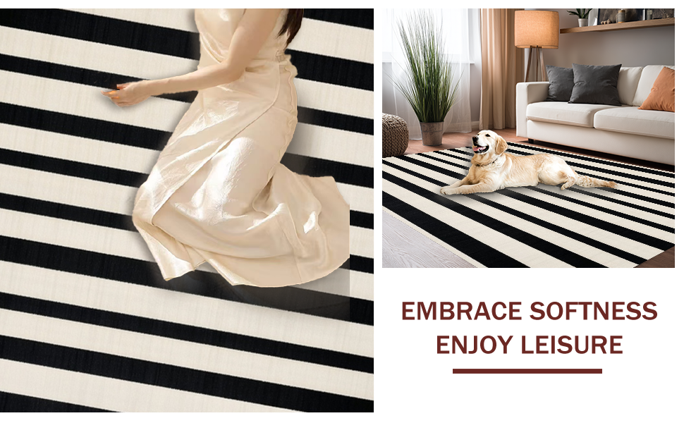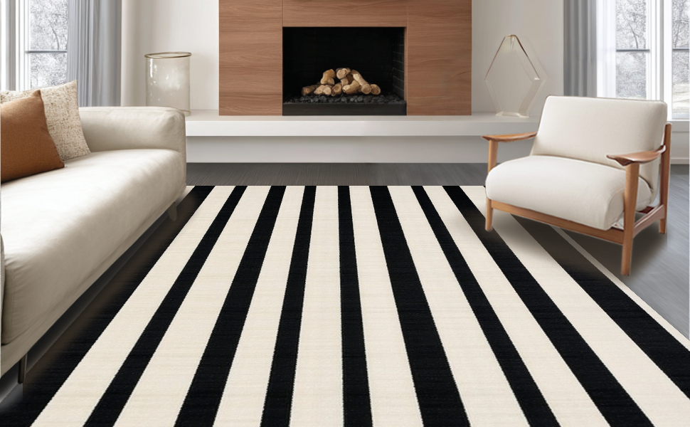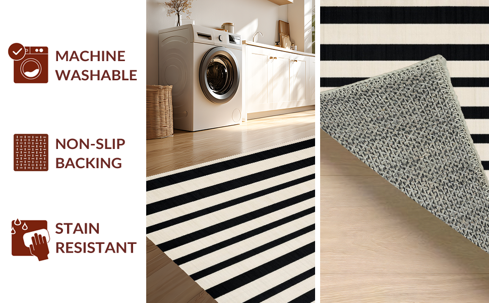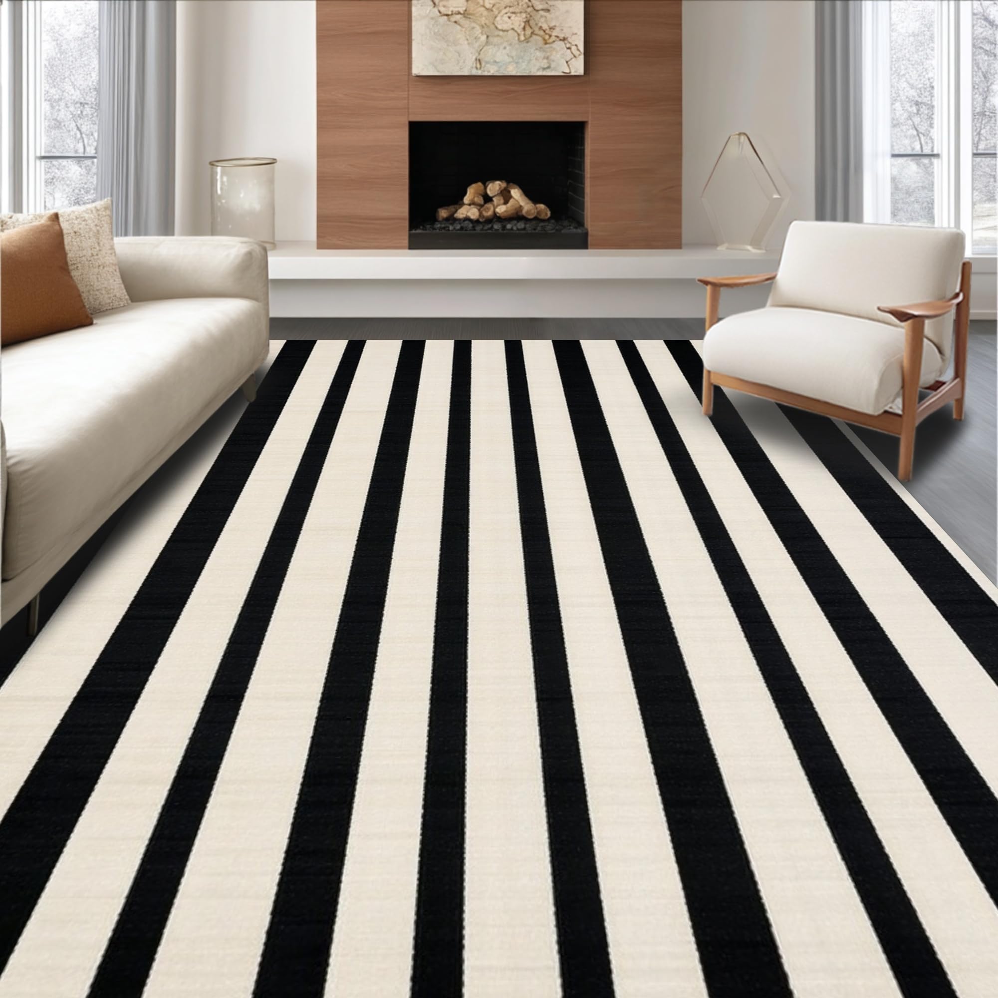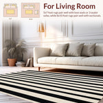Ultra Soft Area Rug, Non Slip, Stain Resistant, Washable Area Rugs for Living Room, Bedroom, Cozy Rustic Striped Visual Appeal(Black) Overview: