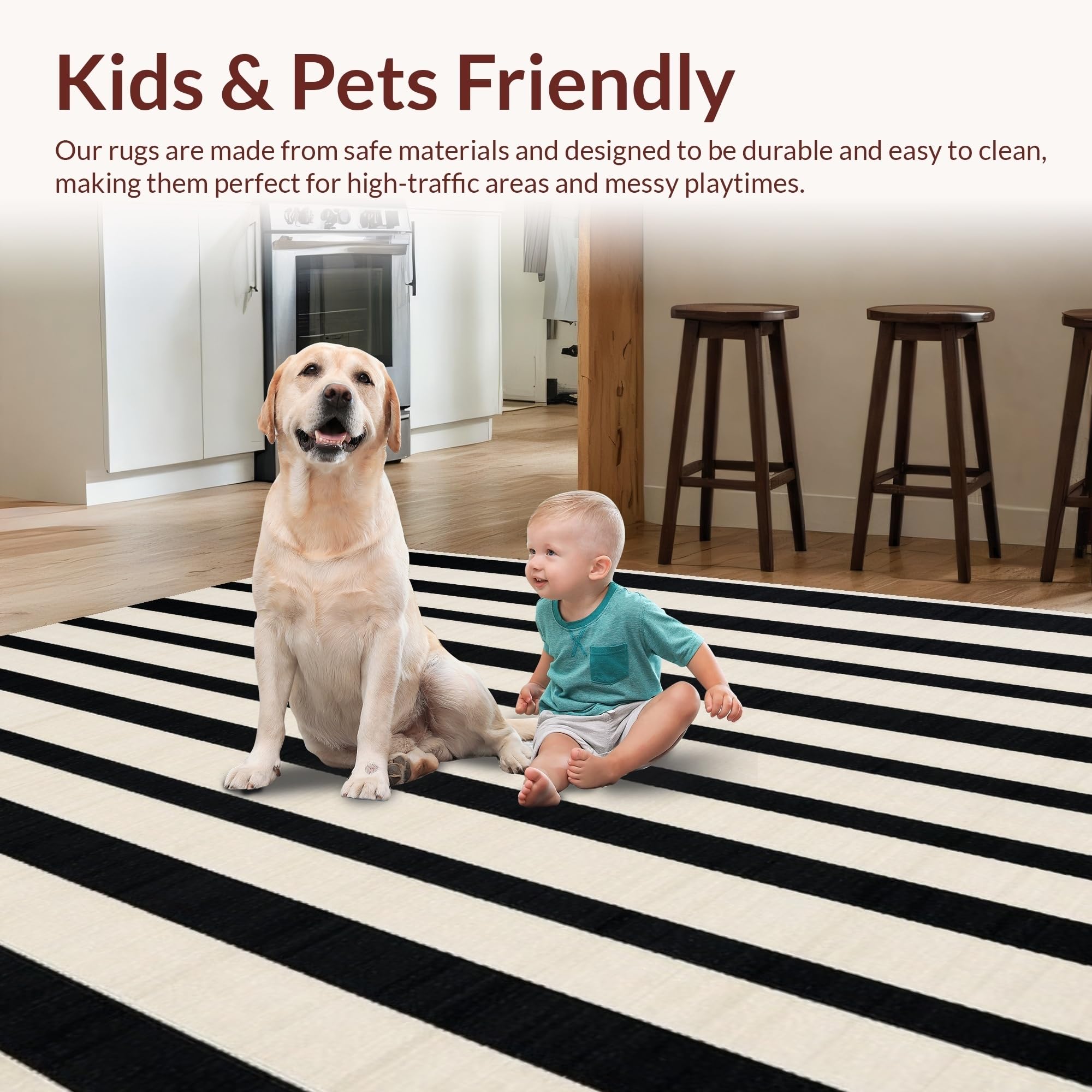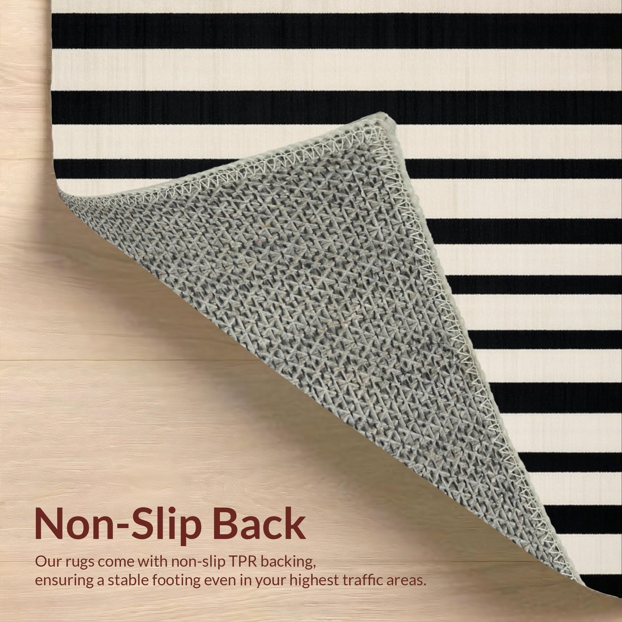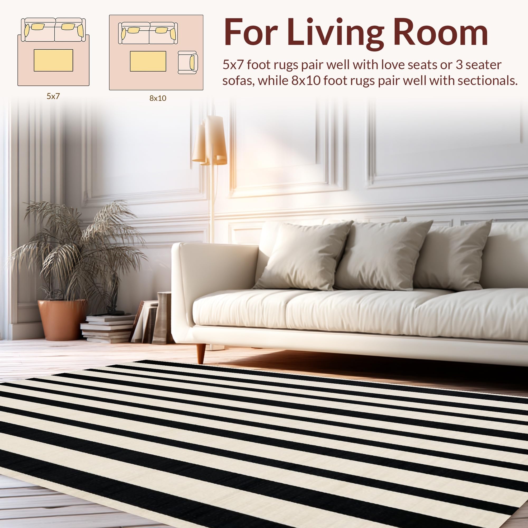 Ultra Soft Area Rug, Non Slip, Stain Resistant, Washable Area Rugs for Living Room, Bedroom, Cozy Rustic Striped Visual Appeal(Black) Overview: