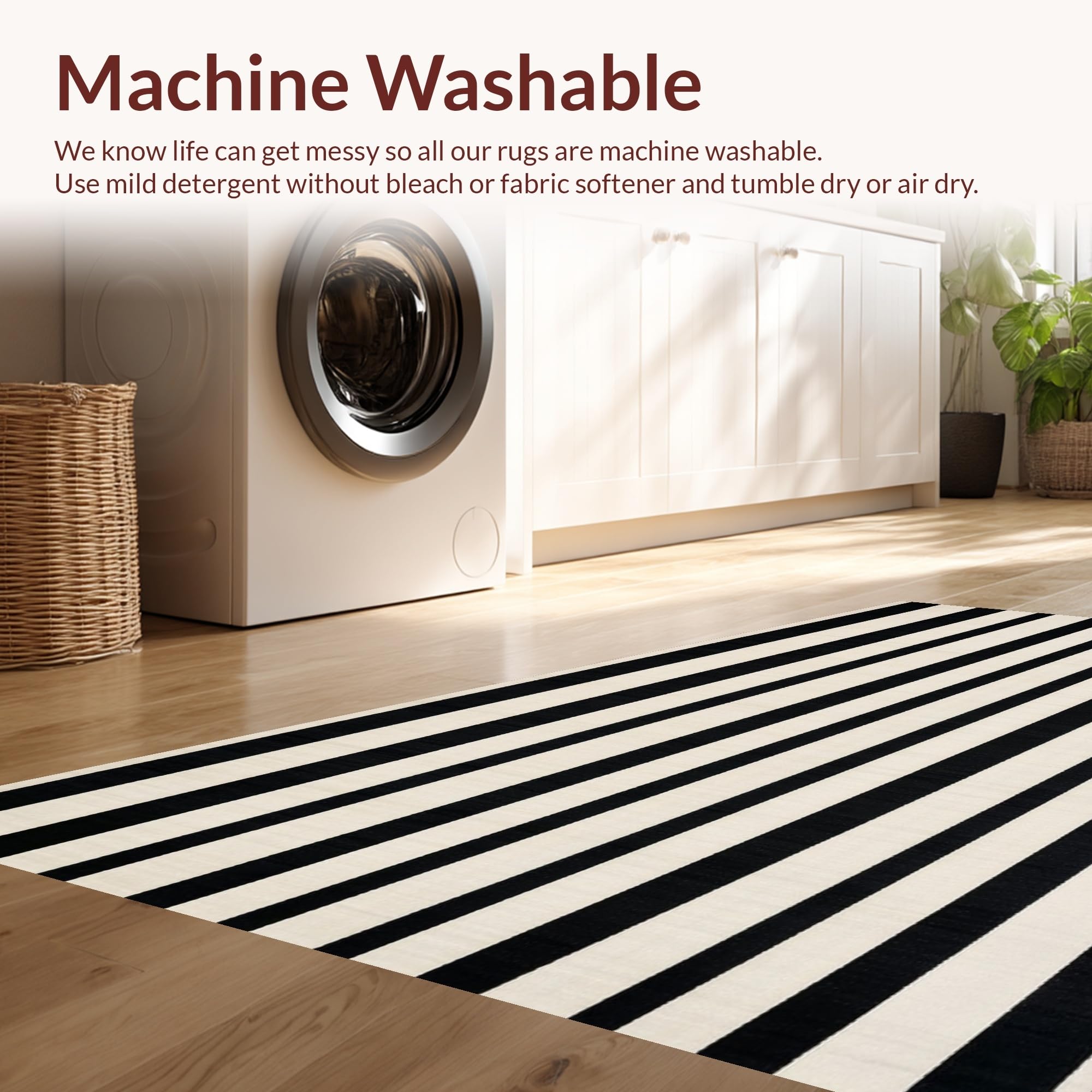 - Machine Washable: Our rugs can be easily thrown in the wash machine.