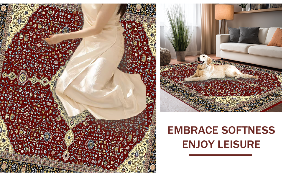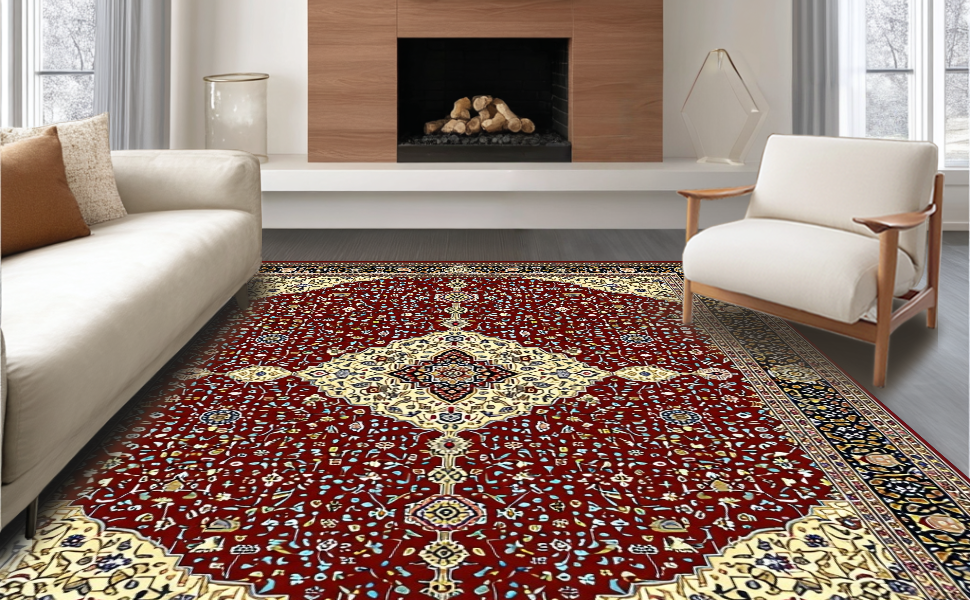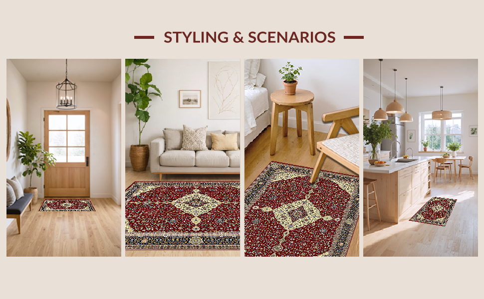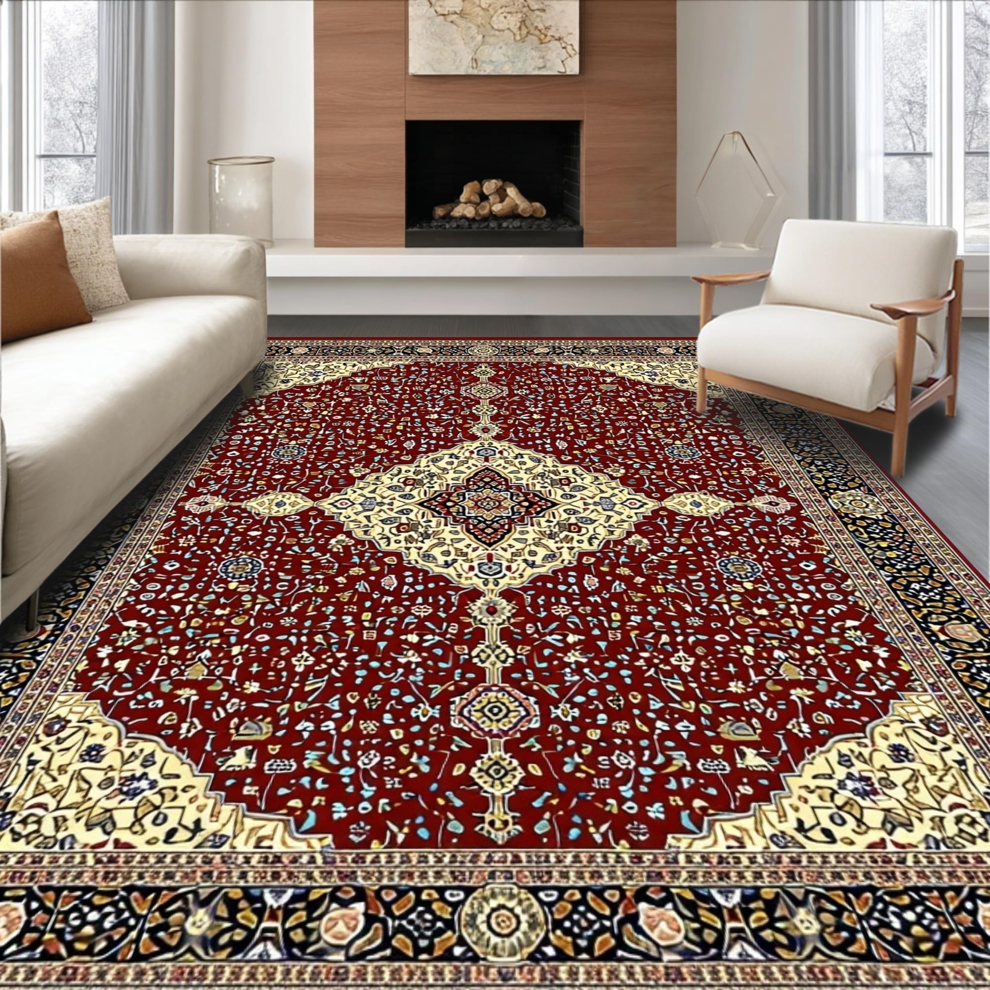 Ultra Soft Area Rug, Non Slip, Stain Resistant, Washable Area Rugs for Living Room, Bedroom, Cozy Rustic Tiled Aesthetic(Red) Overview: